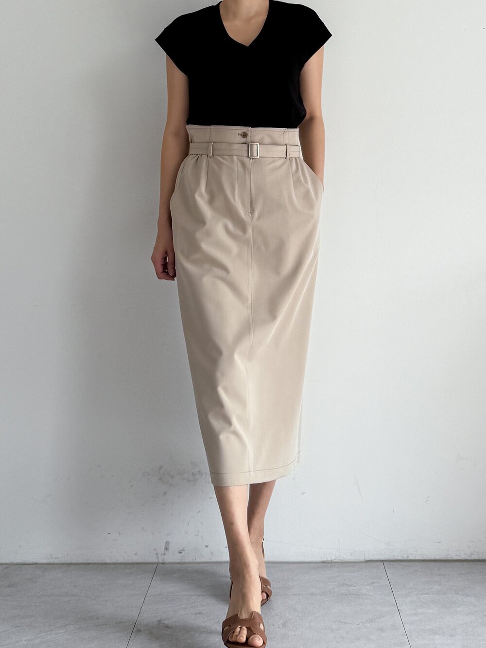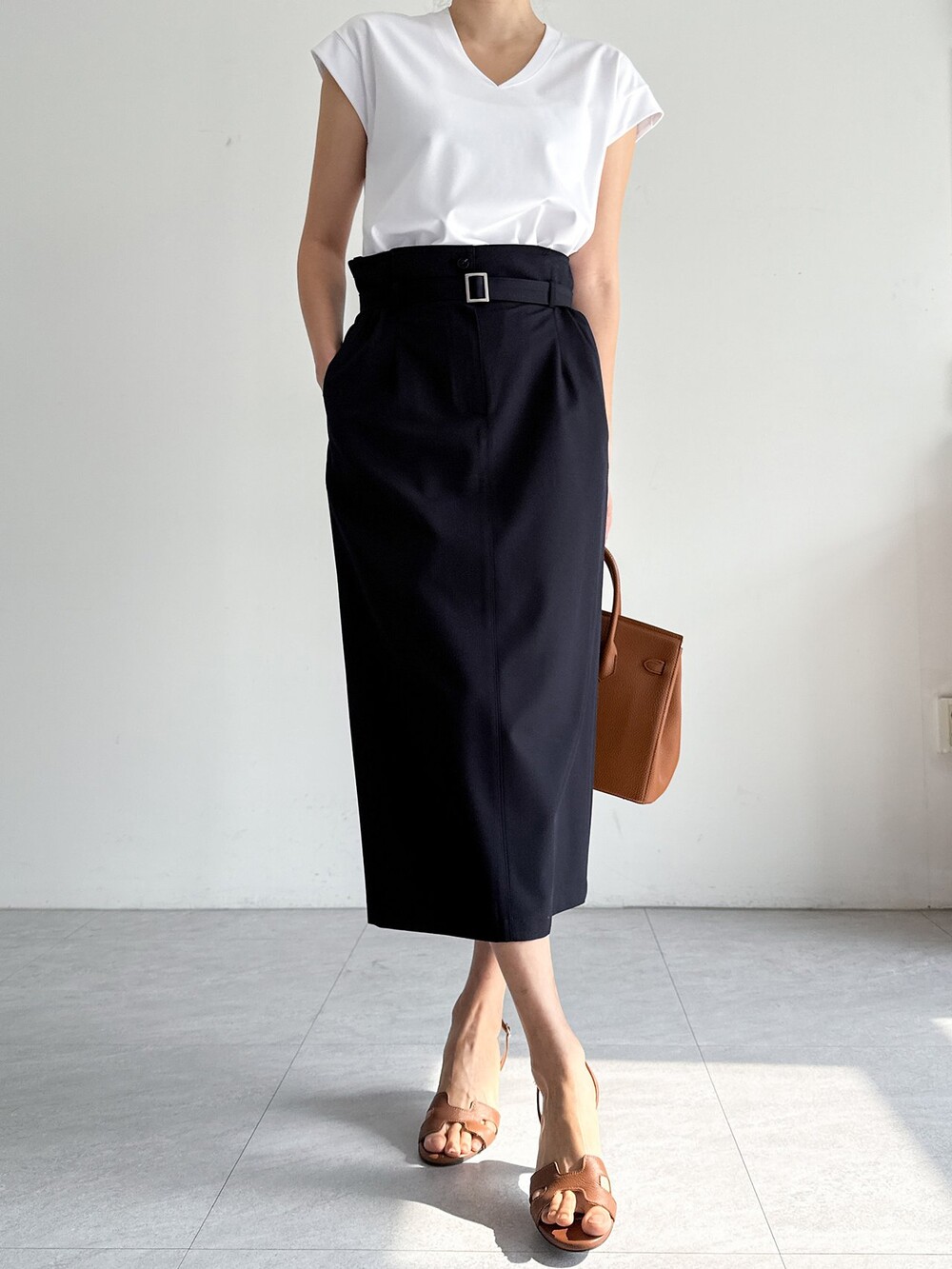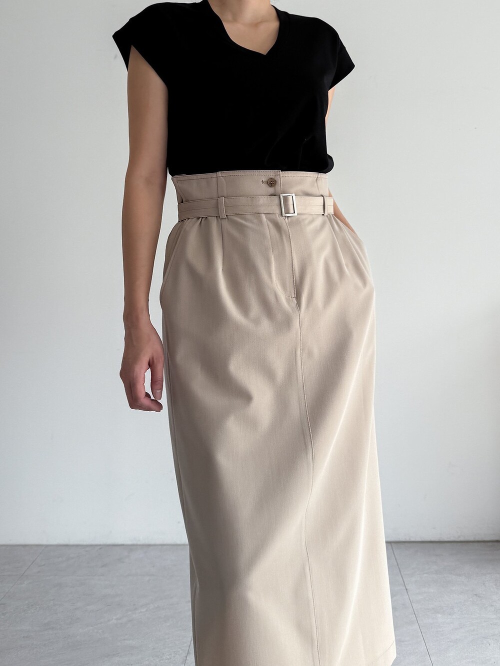 벨티드 하이웨이스트 스커트