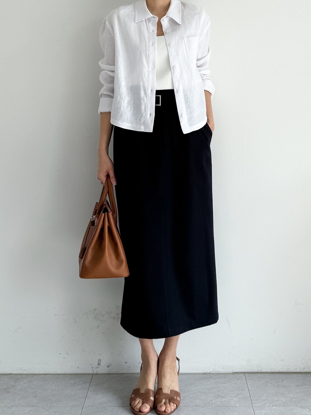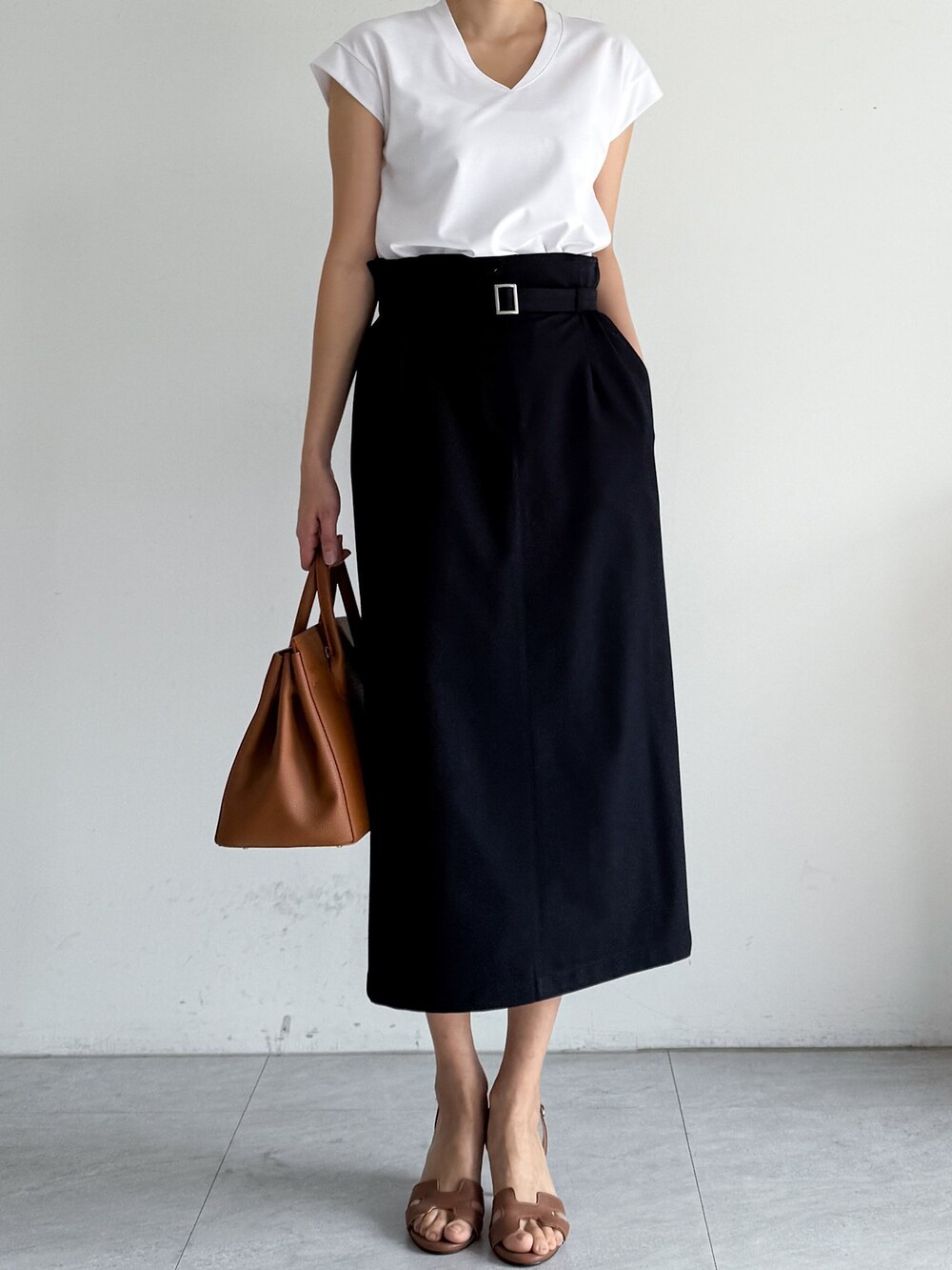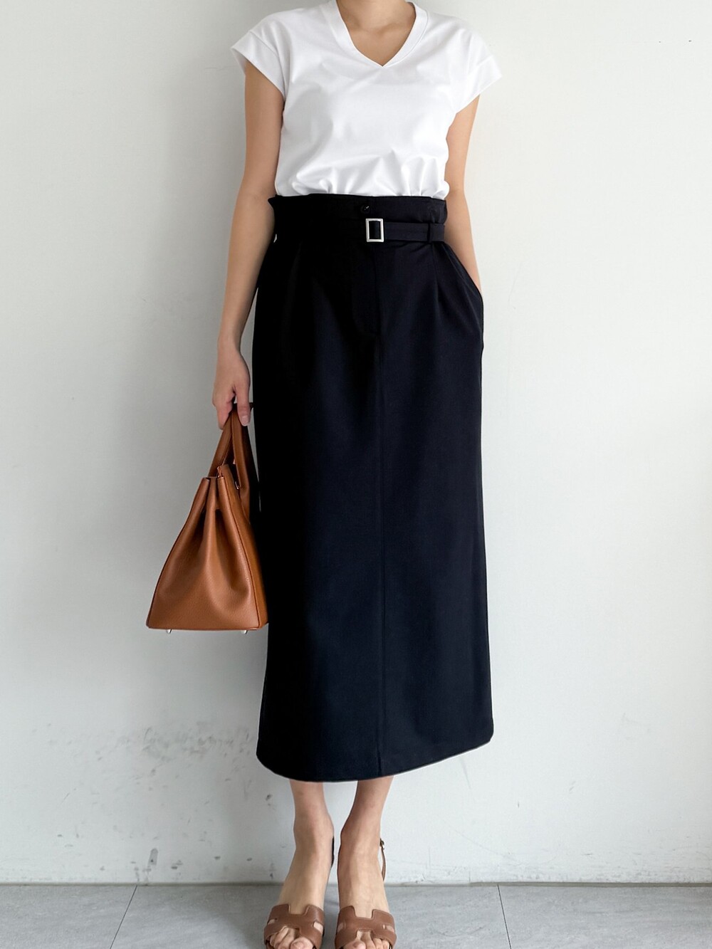 벨티드 하이웨이스트 스커트