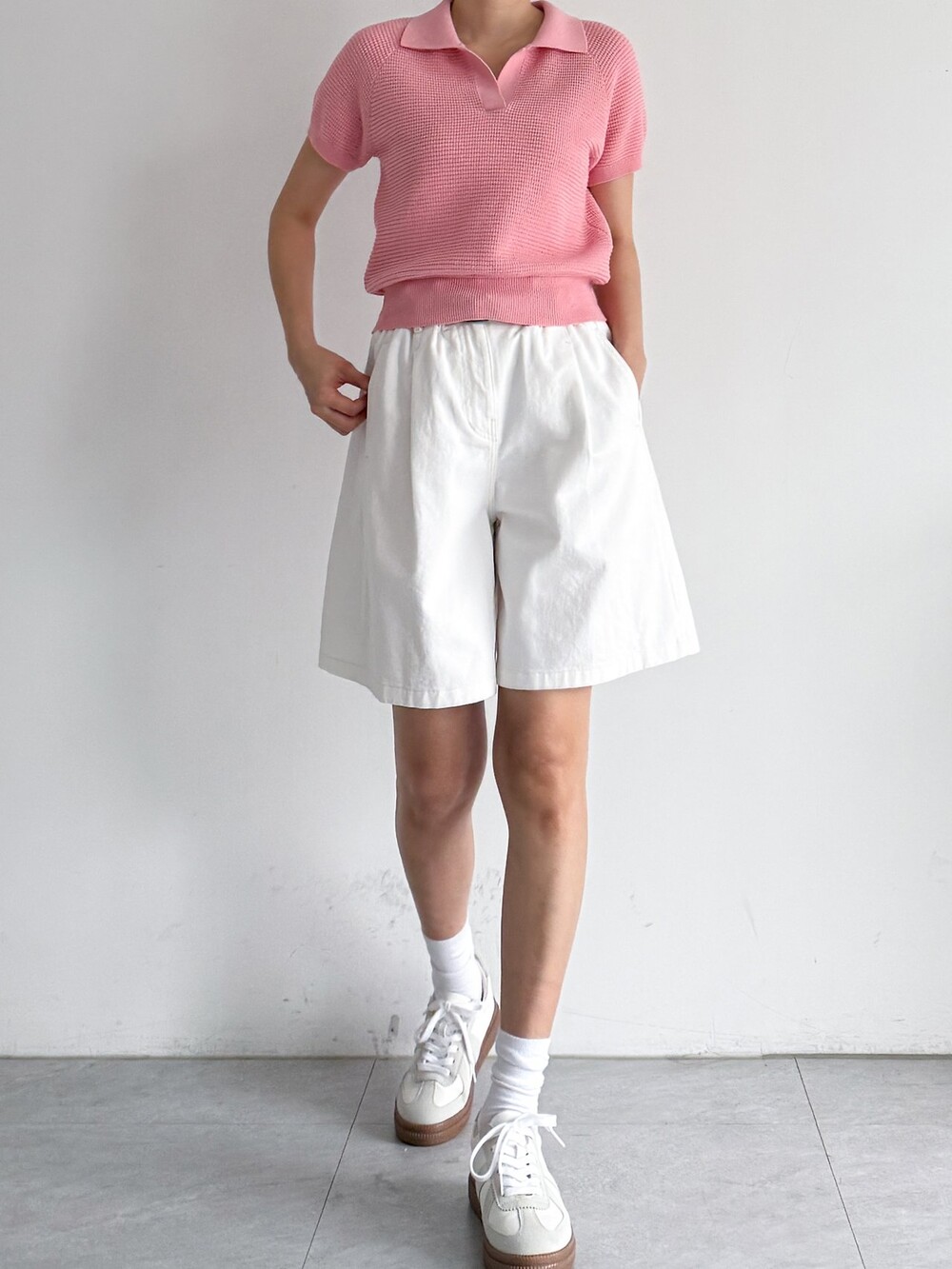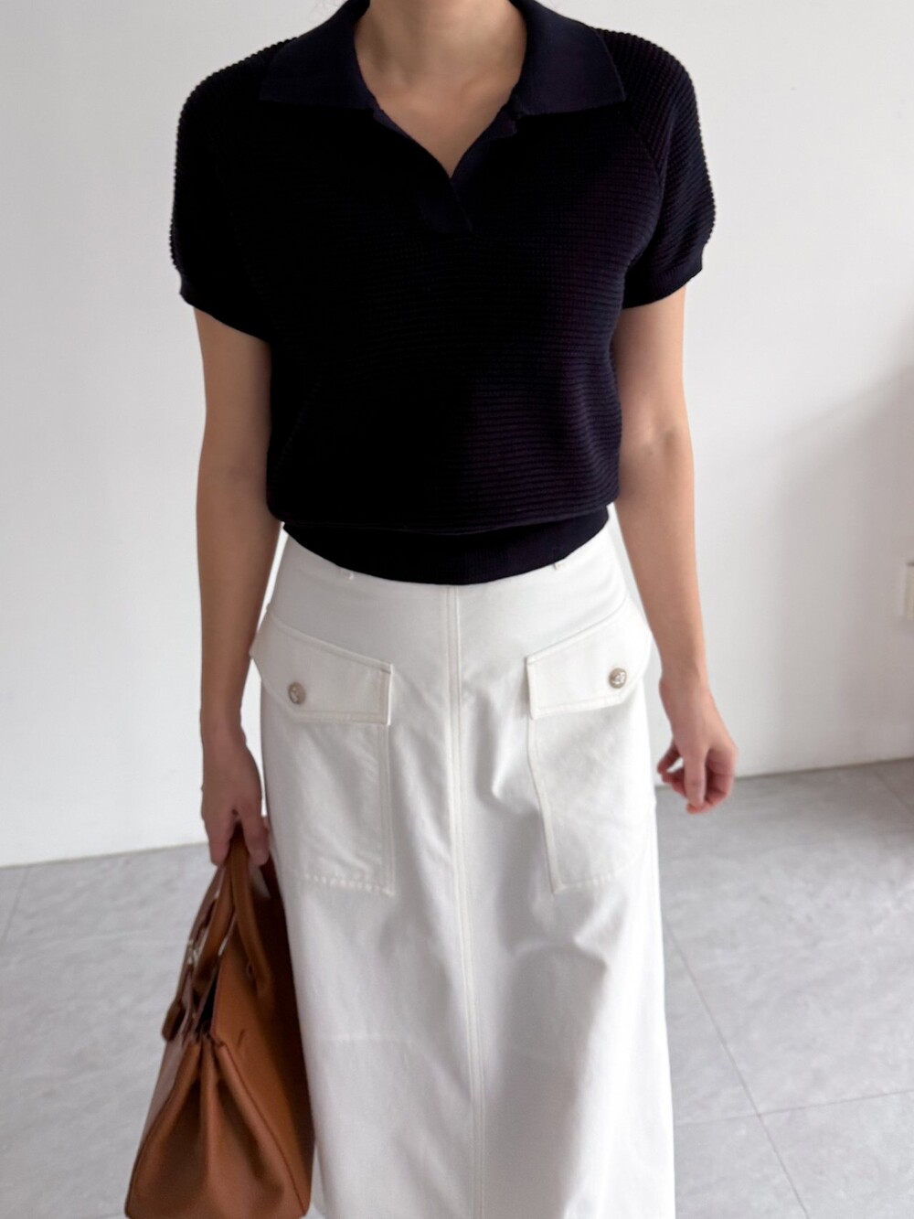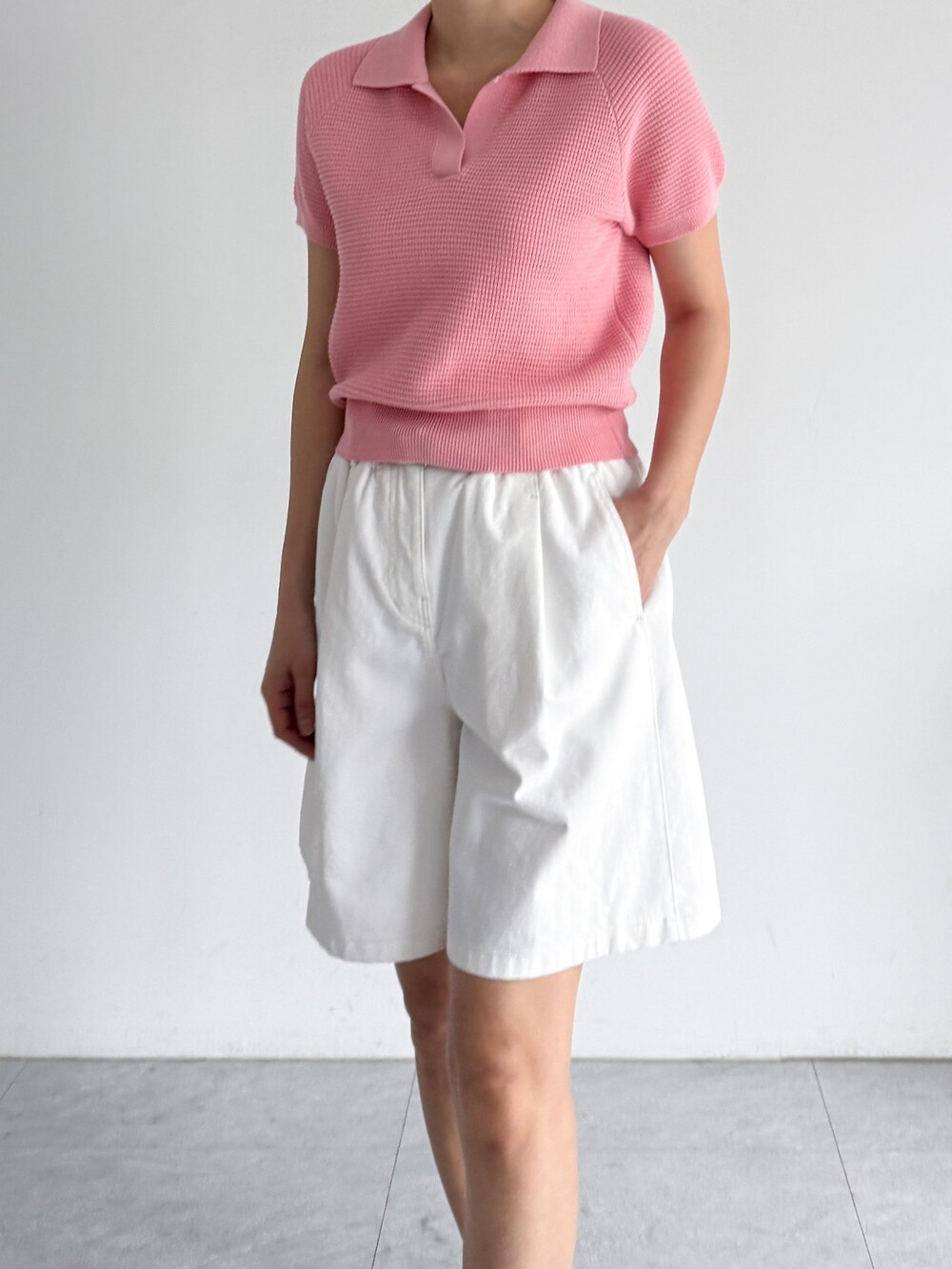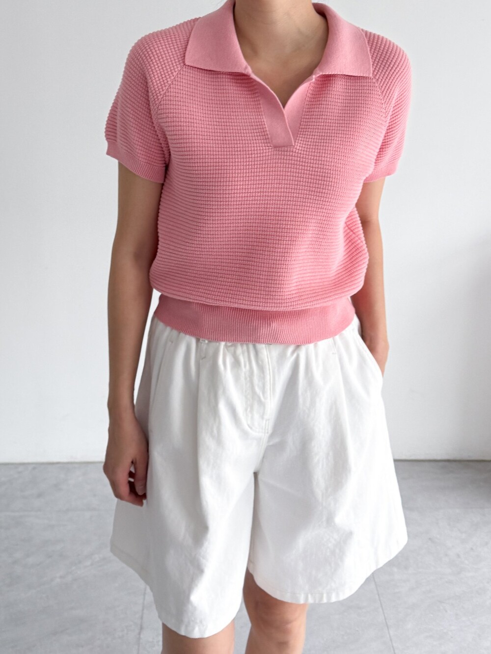 하프 슬리브 니트 탑입니다.