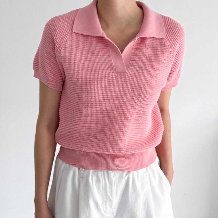 노치넥 칼라 니트 탑