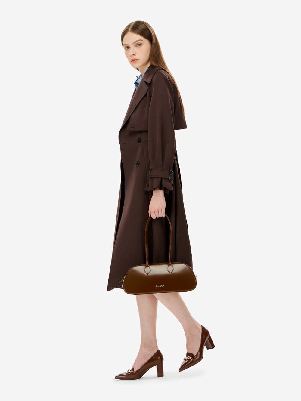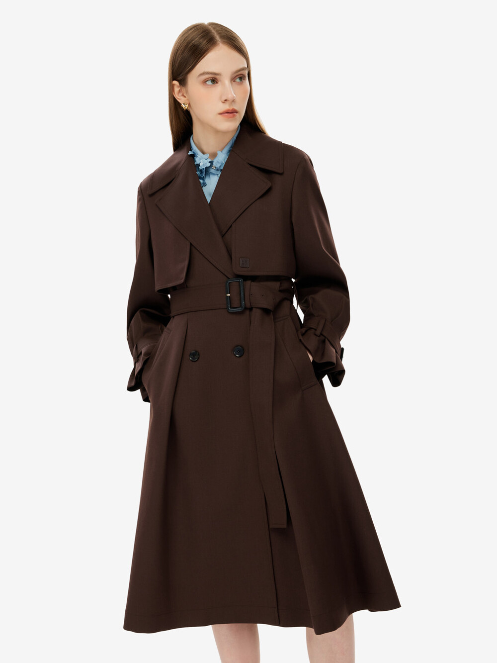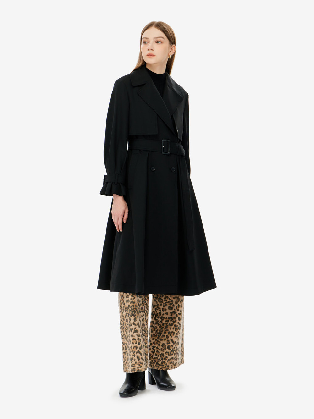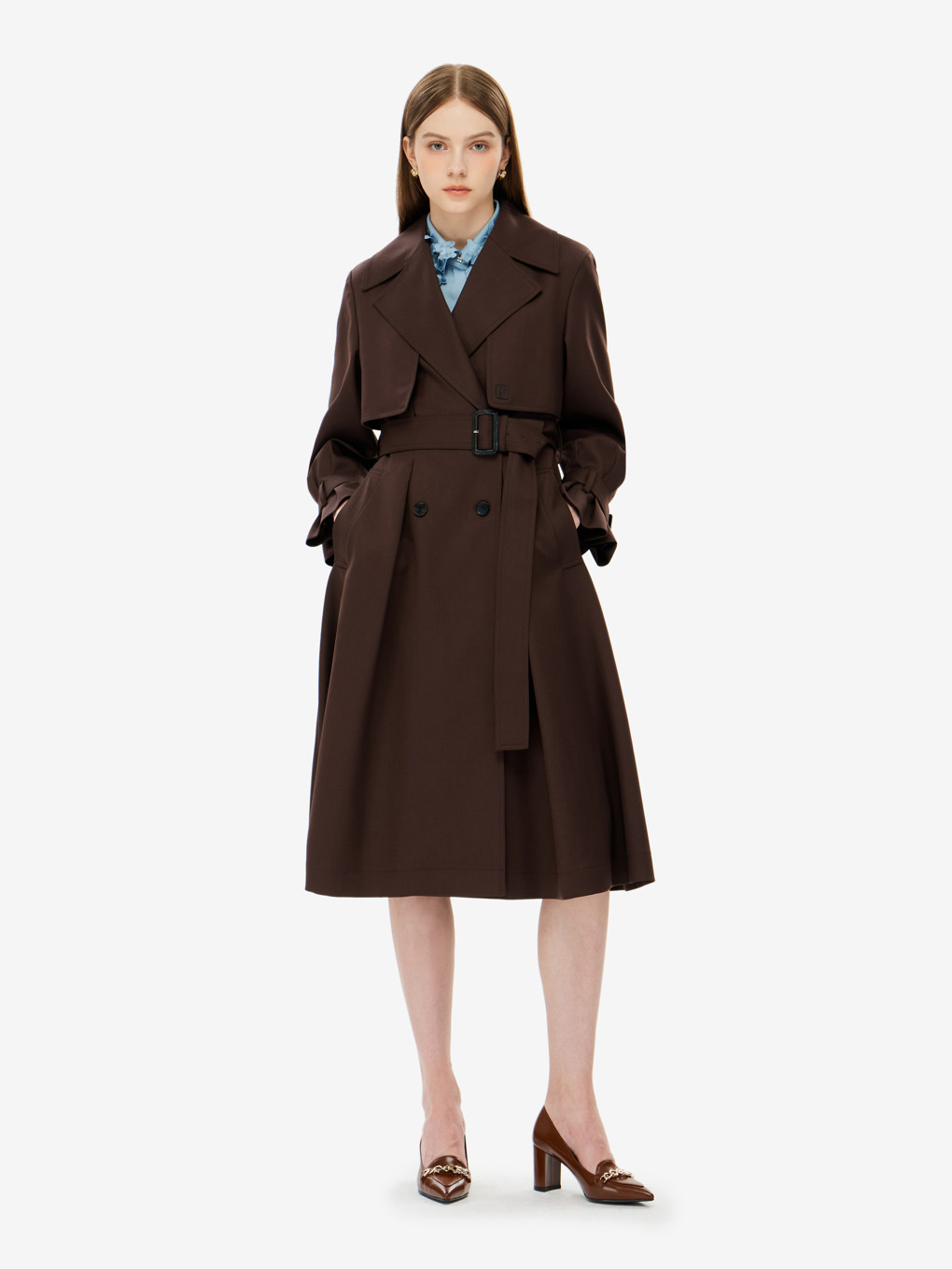벨티드 트렌치 코트입니다.