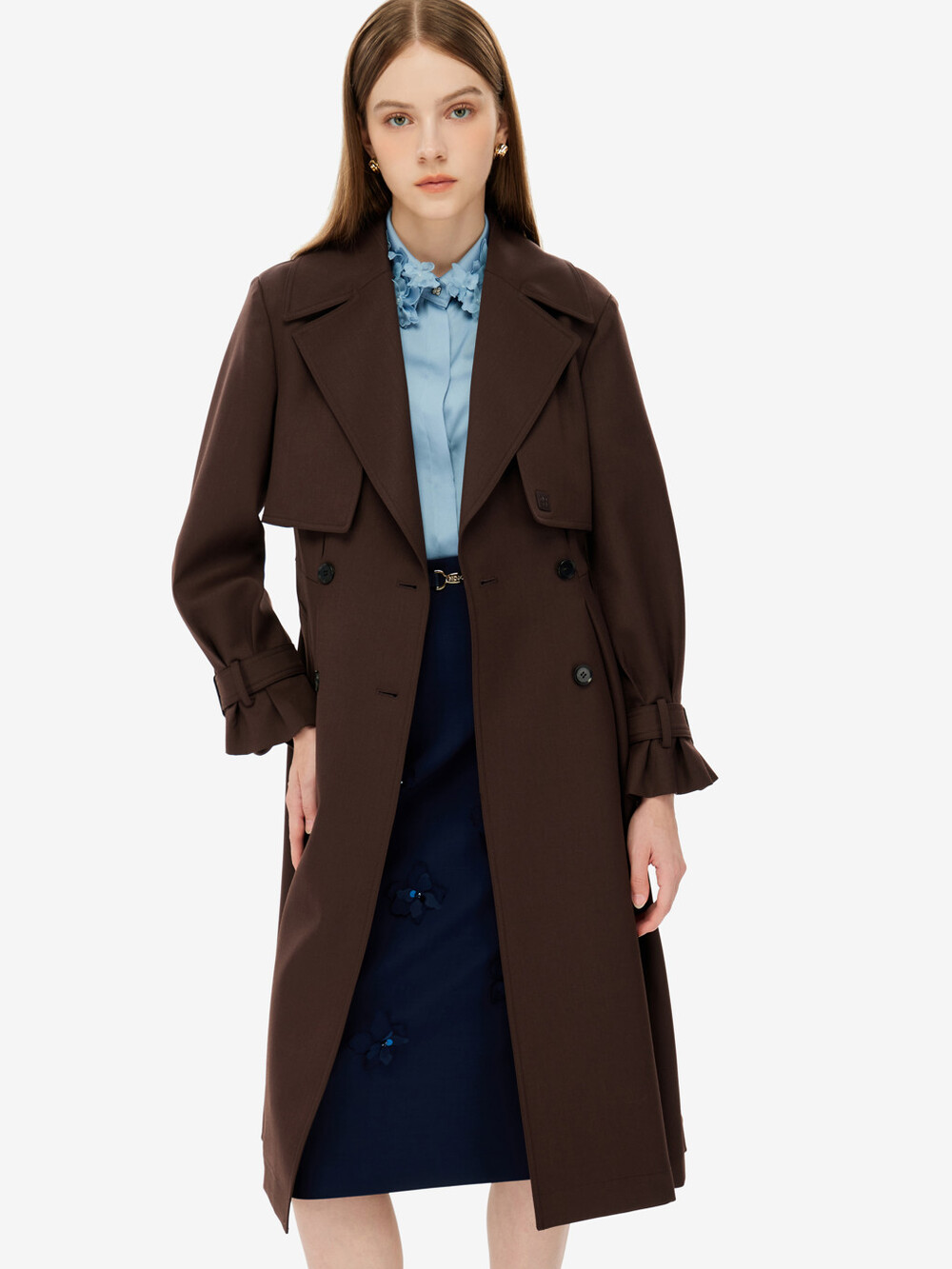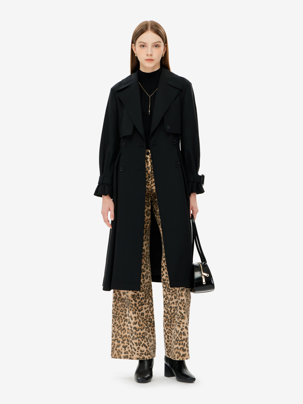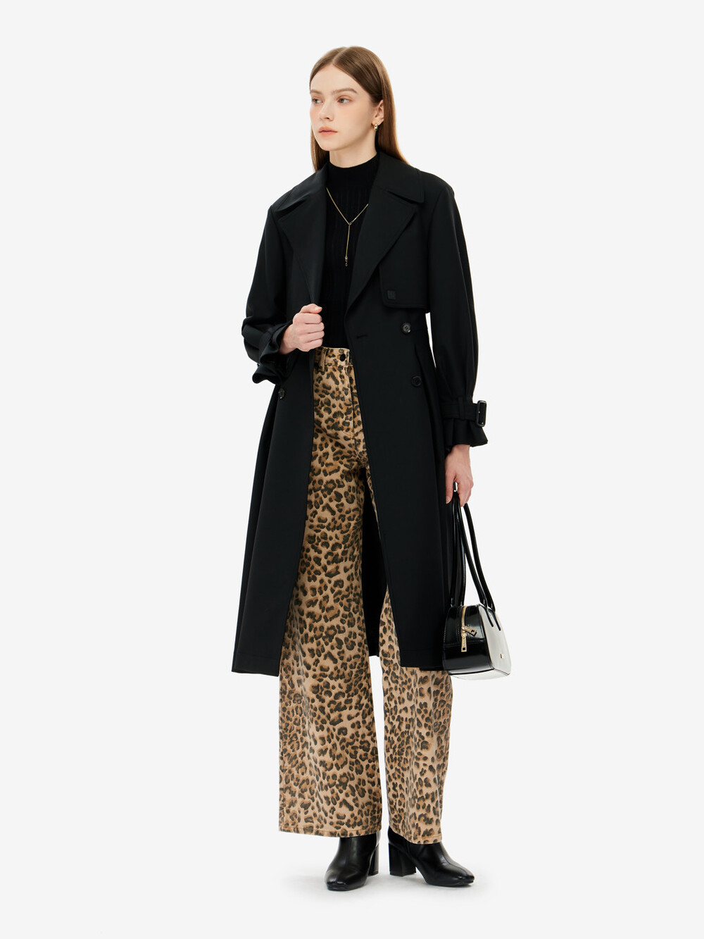 벨티드 트렌치 코트입니다.