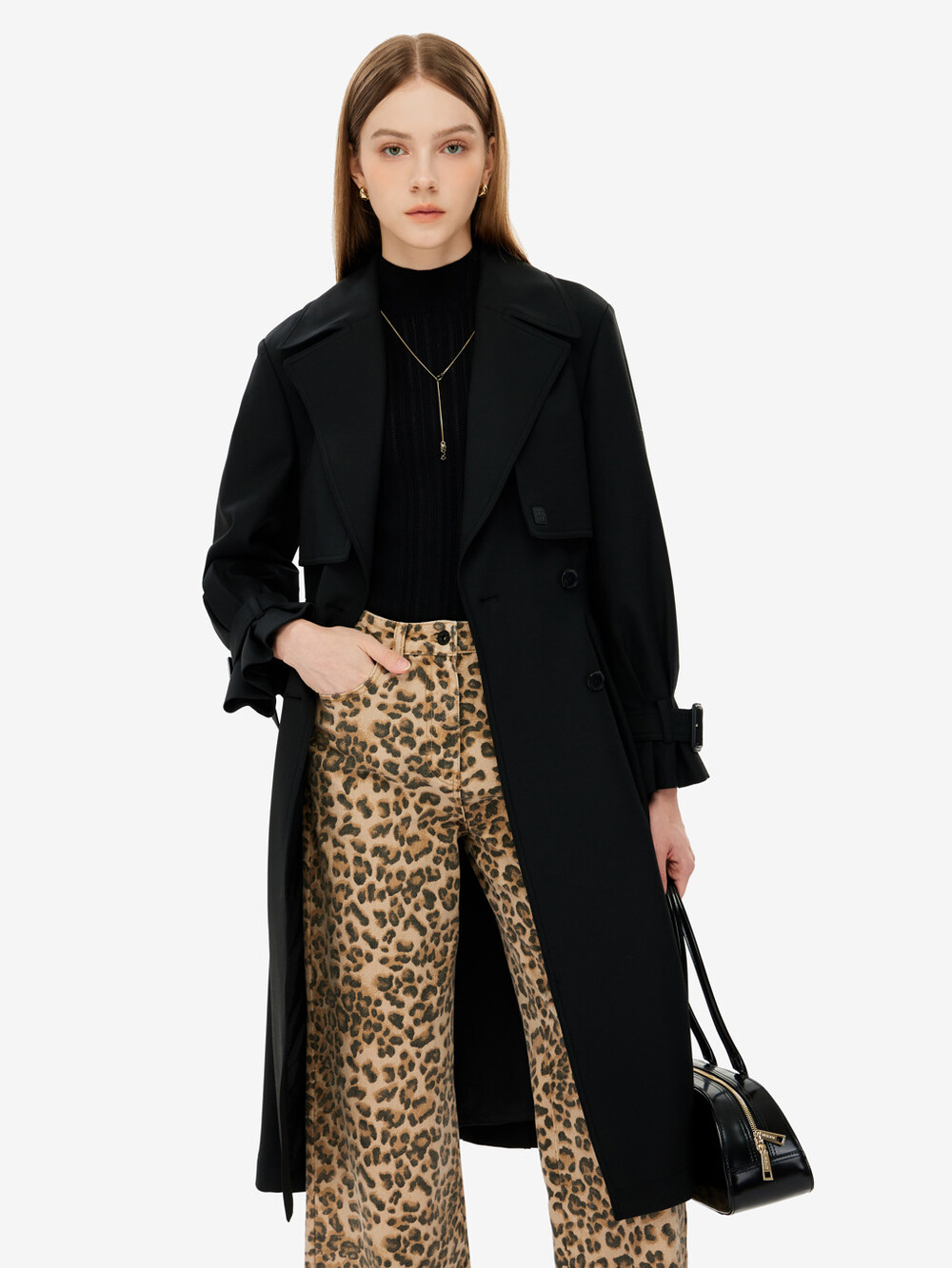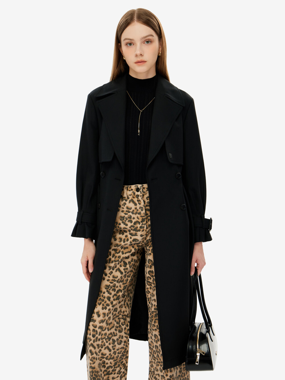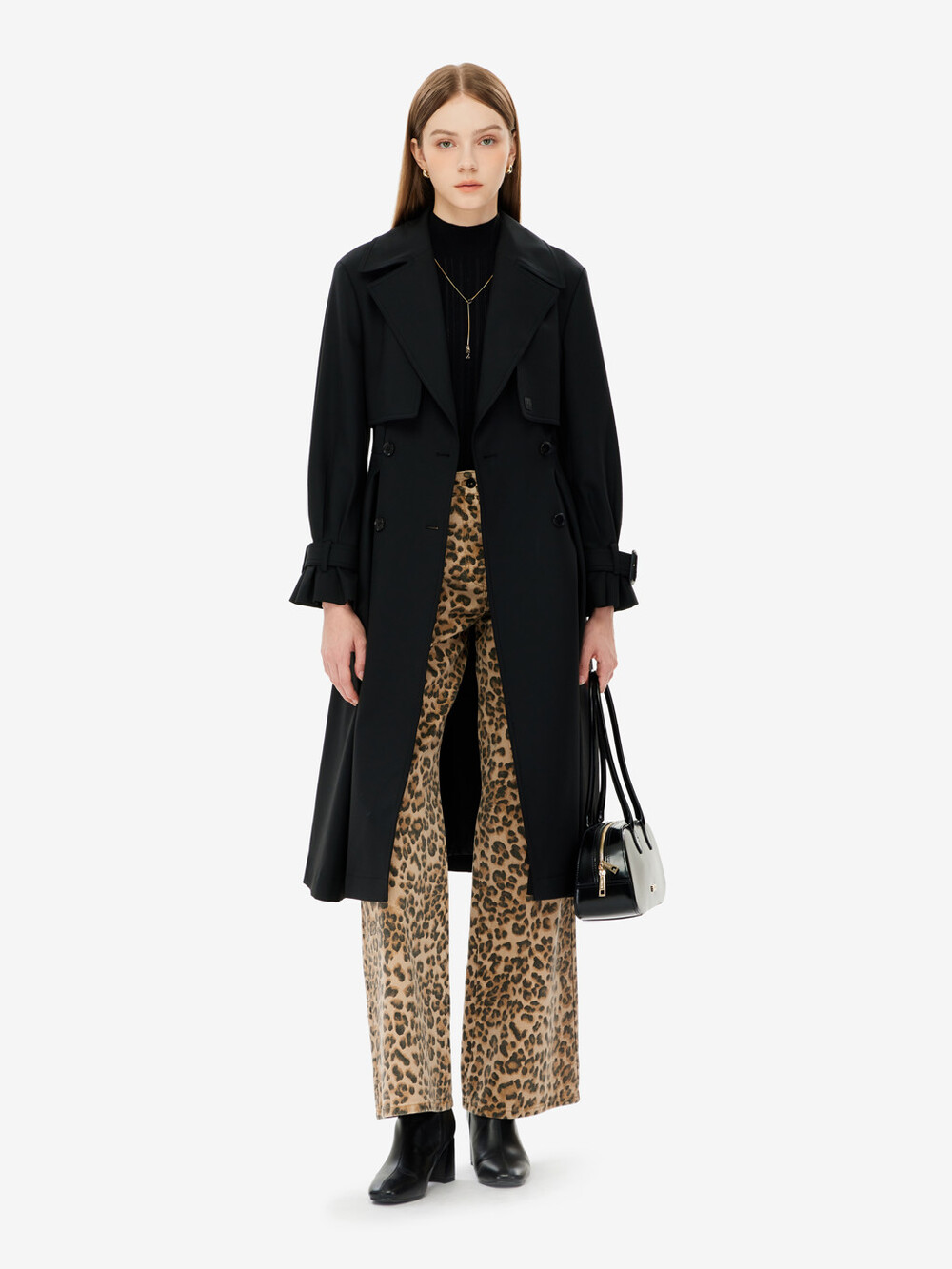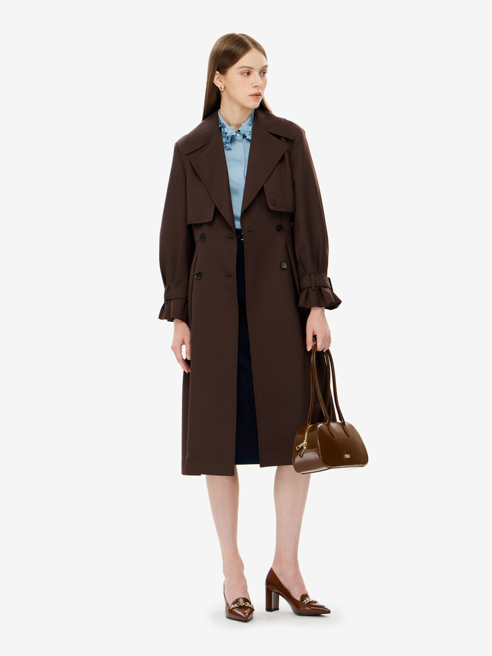 벨티드 트렌치 코트입니다.