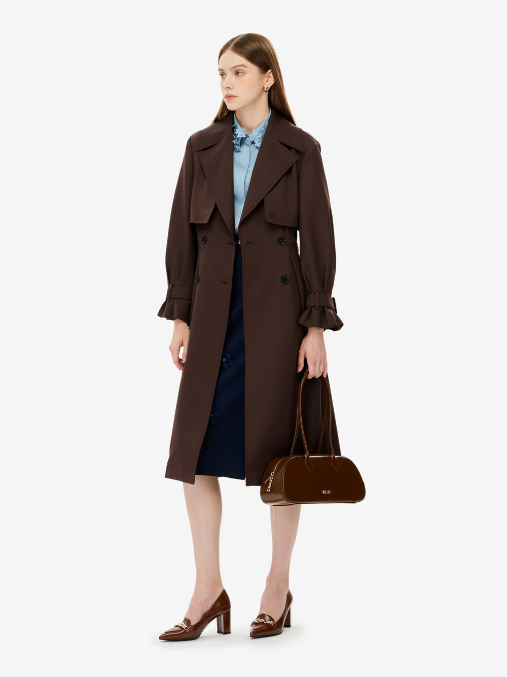 모조 와이드 카라 플레어핏 트렌치 코트