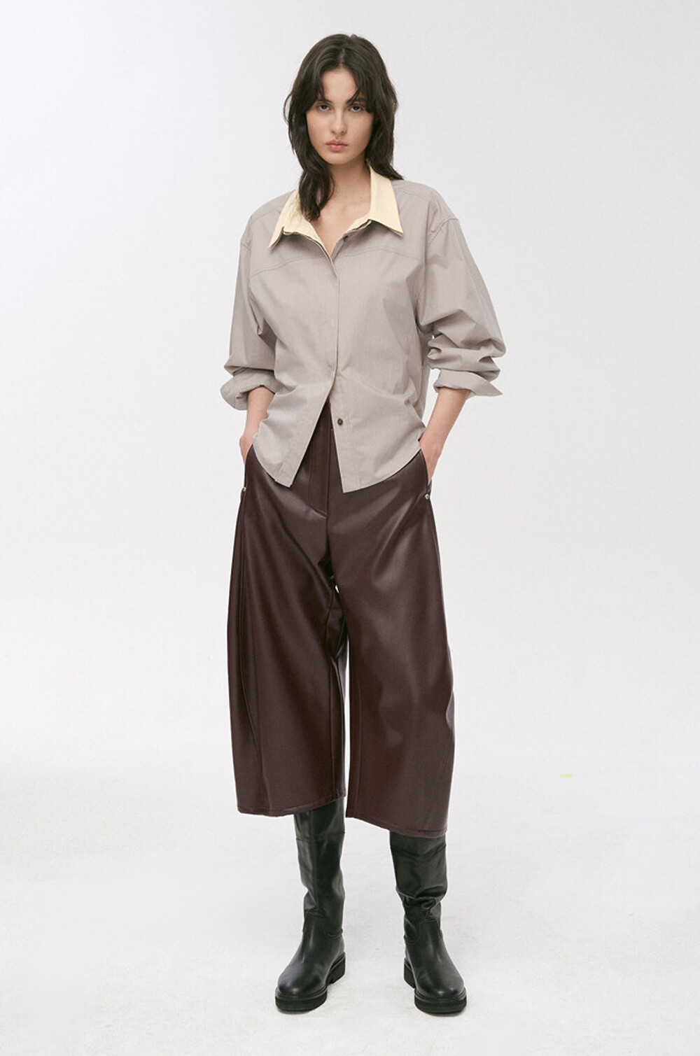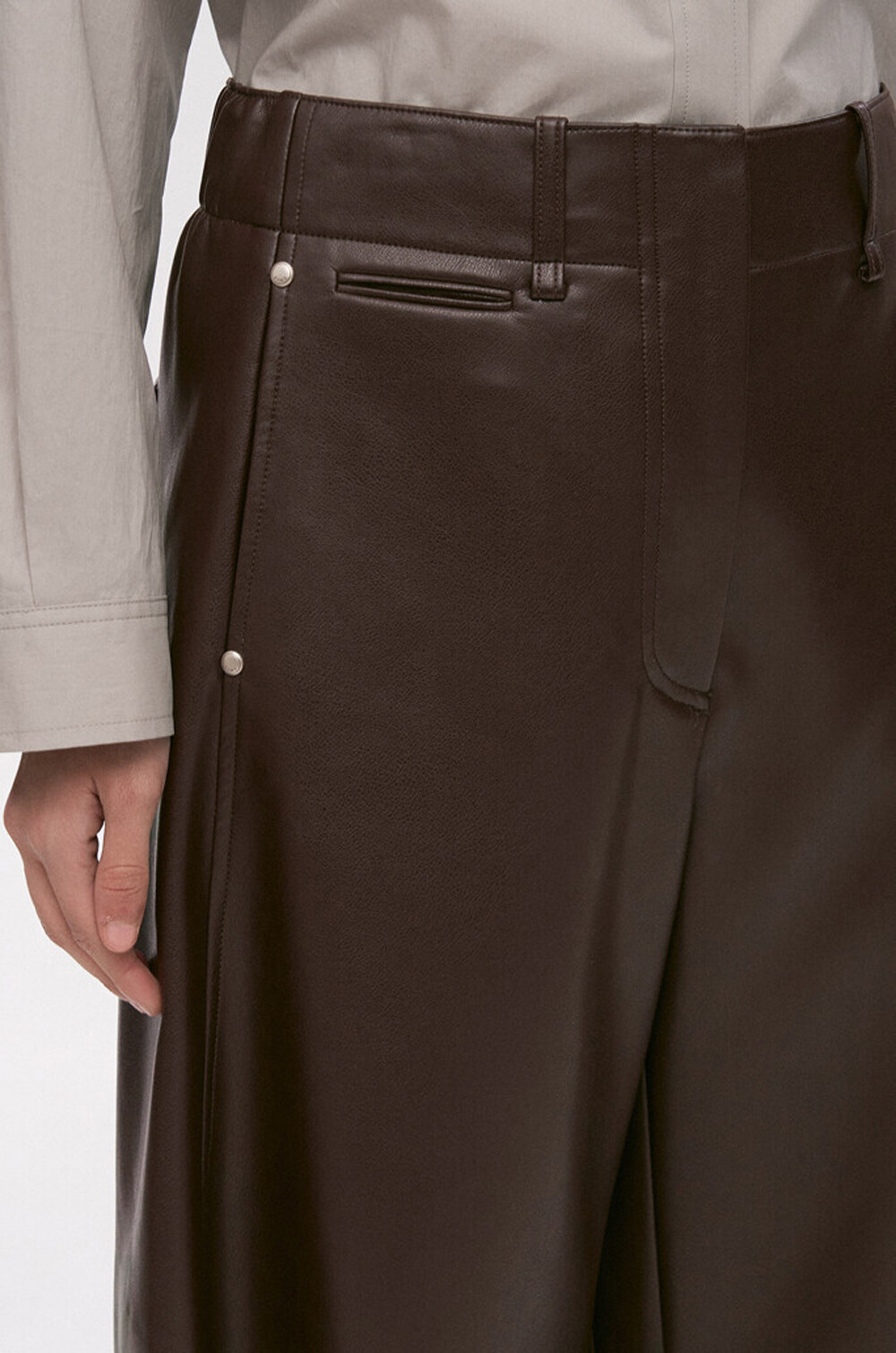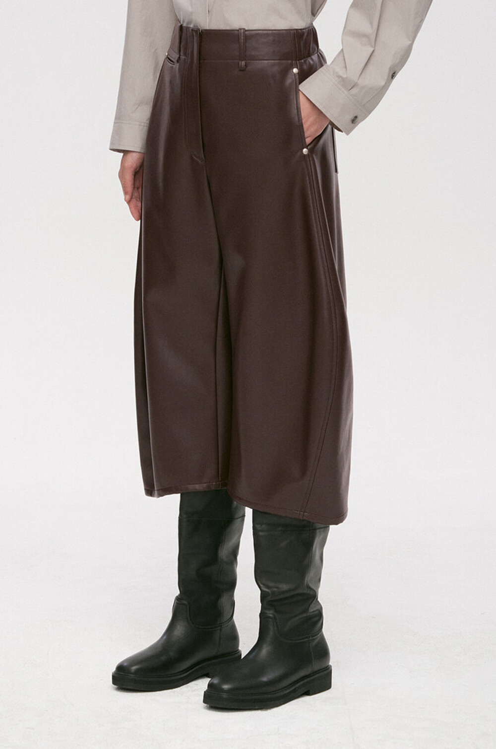 페이크 레더 팬츠예요.
