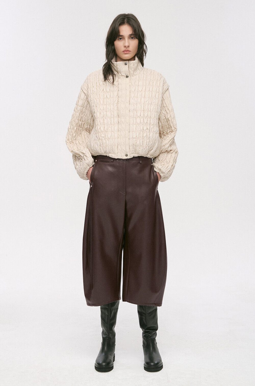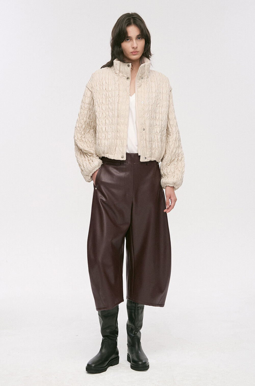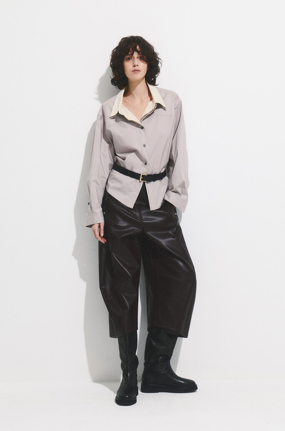 페이크 레더 팬츠예요.
