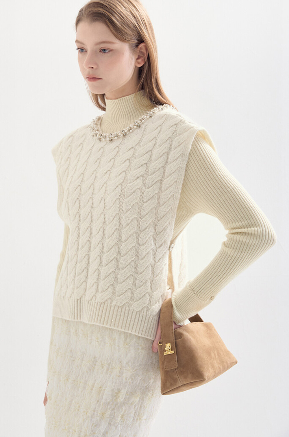 겉감 : 천연모피(소) 100%, 배색 : 천연가죽(소) 100%, 안감 : 합성가죽 100%(BR)
