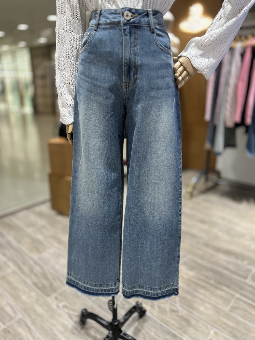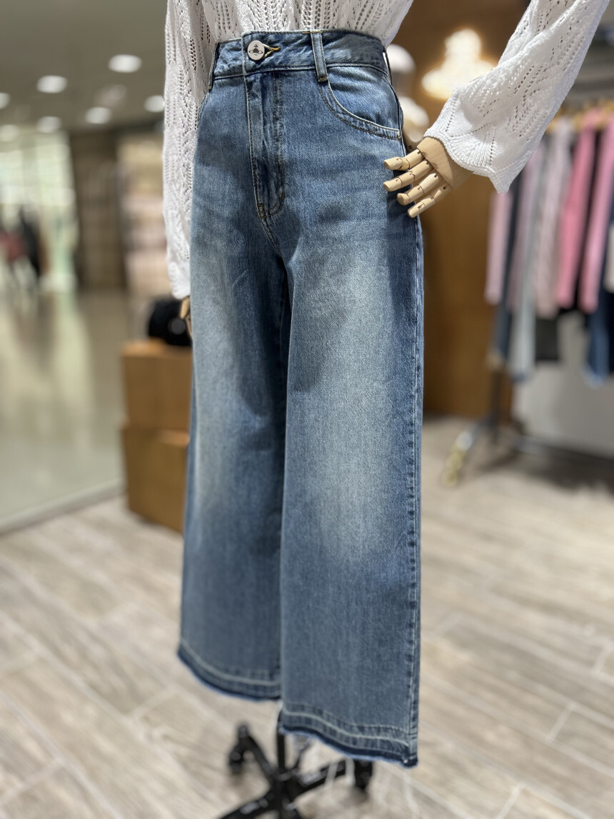 고급 순면 스트레이트 와이드 데님 팬츠로,