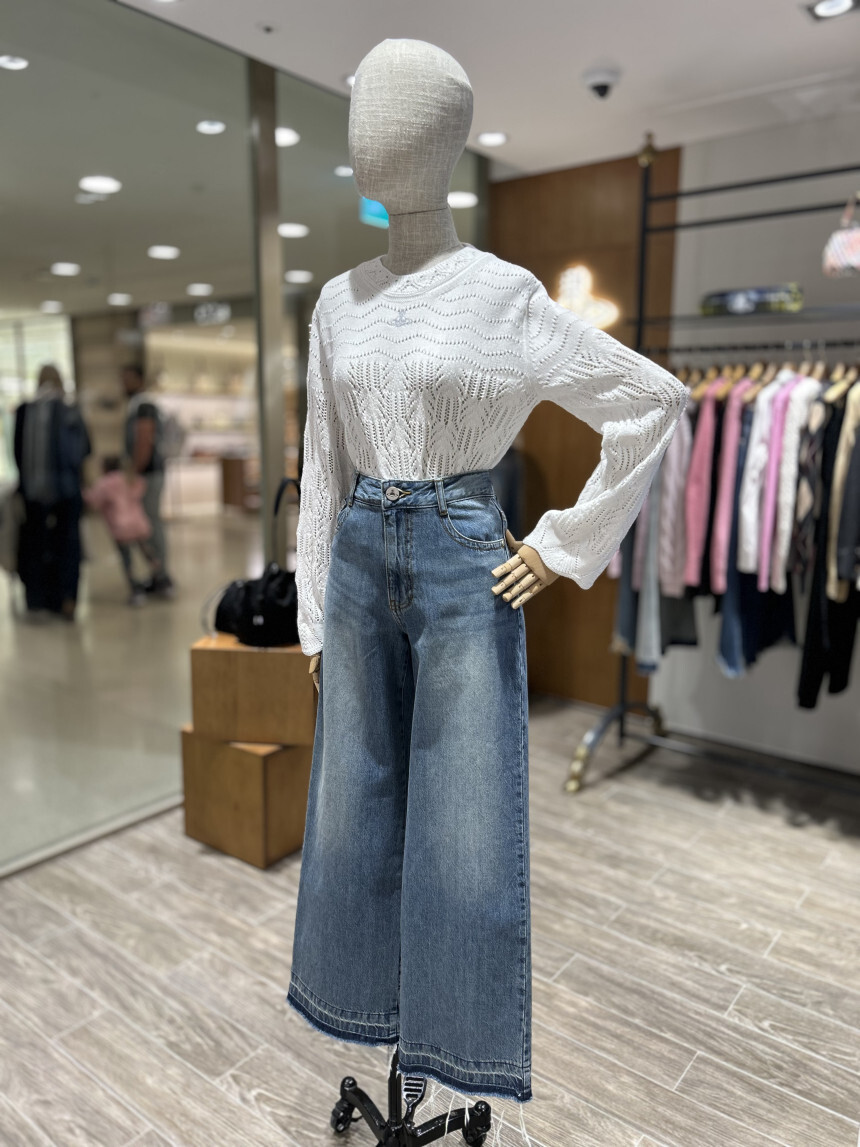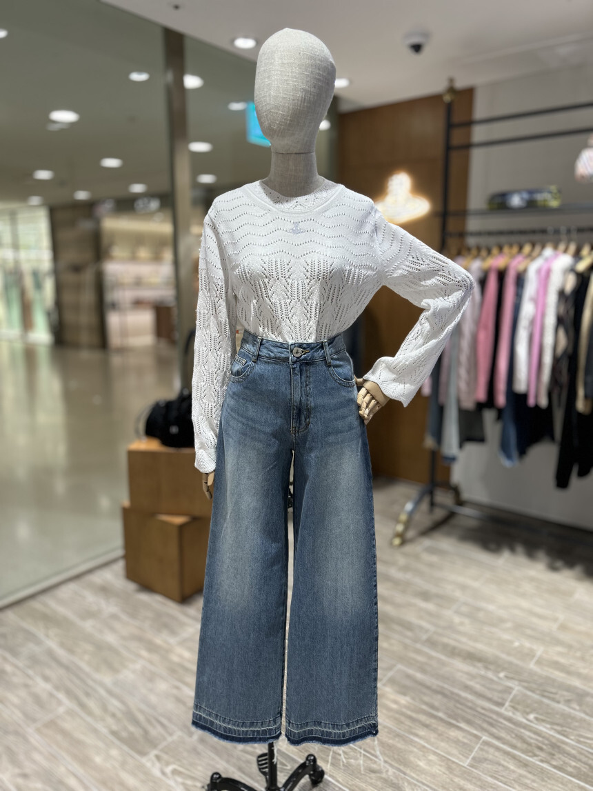 - 고급 순면으로 제작된 스트레이트 와이드 데님 팬츠.