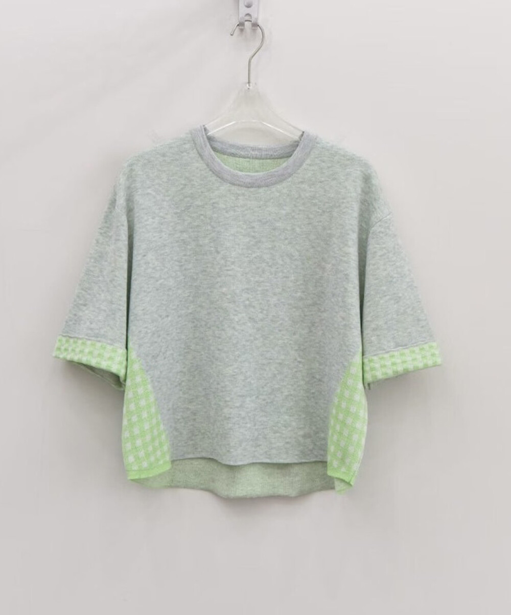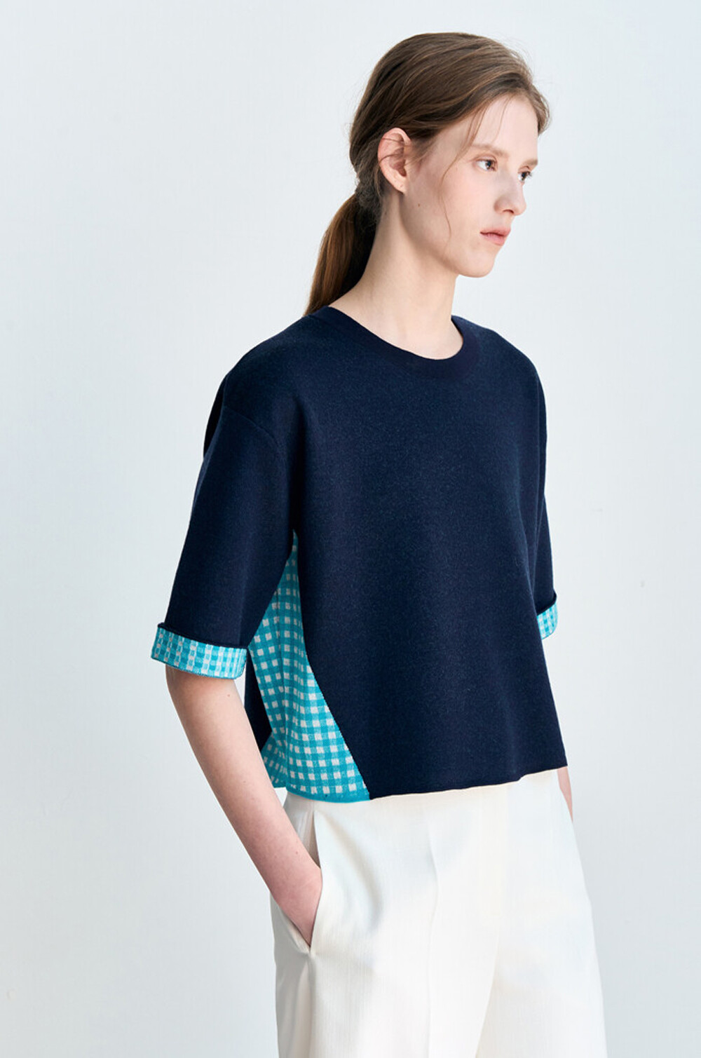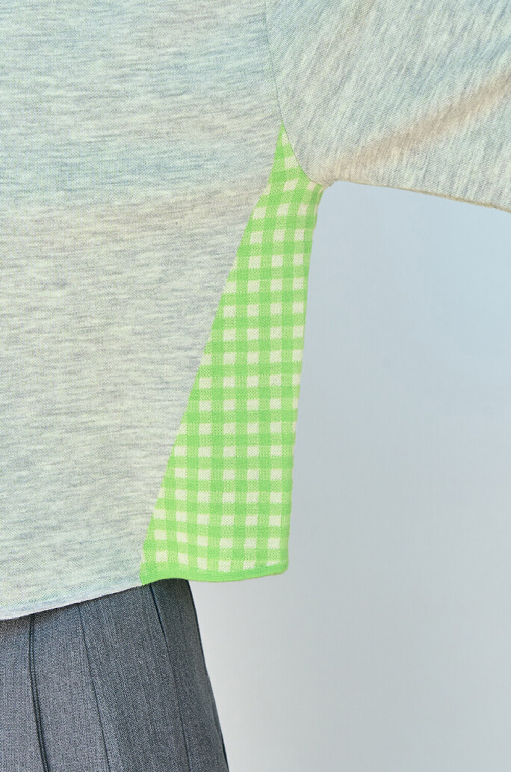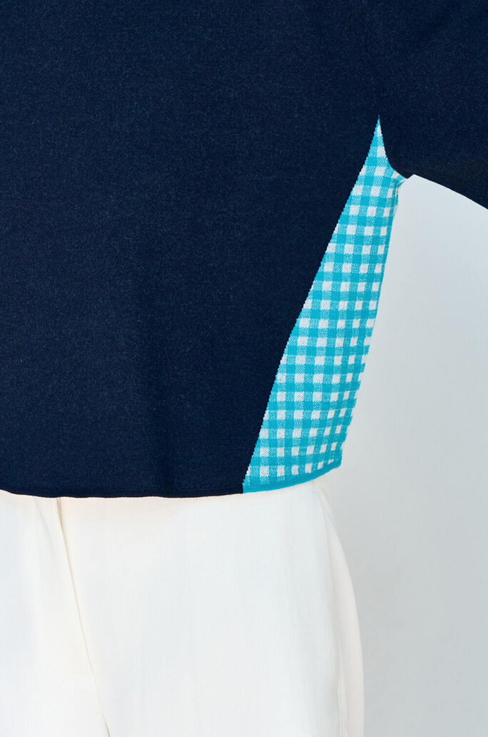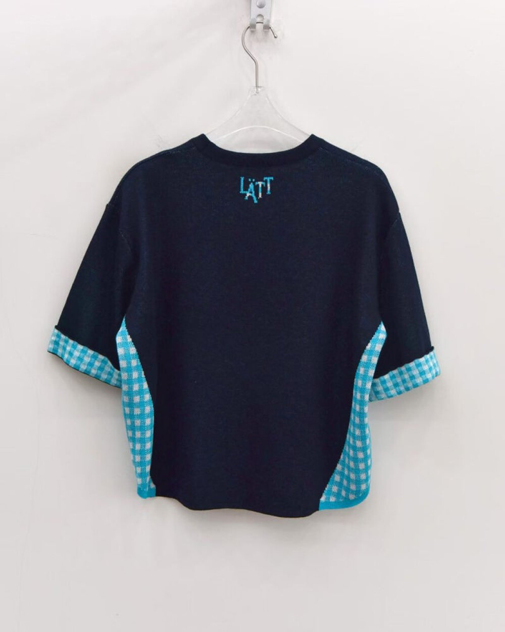 LATT. Wool Gingham Check Jacquard Half Knit Top