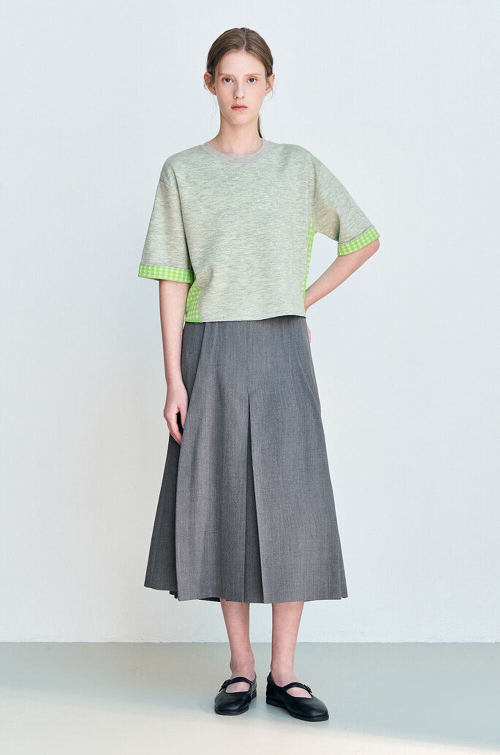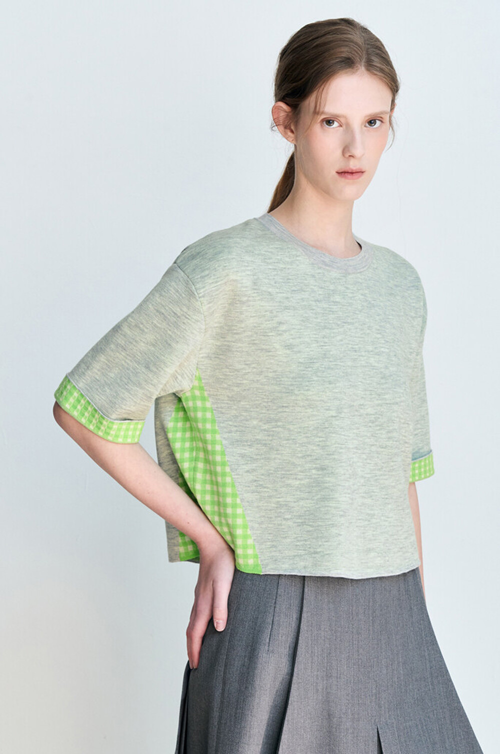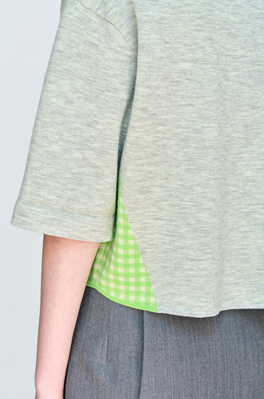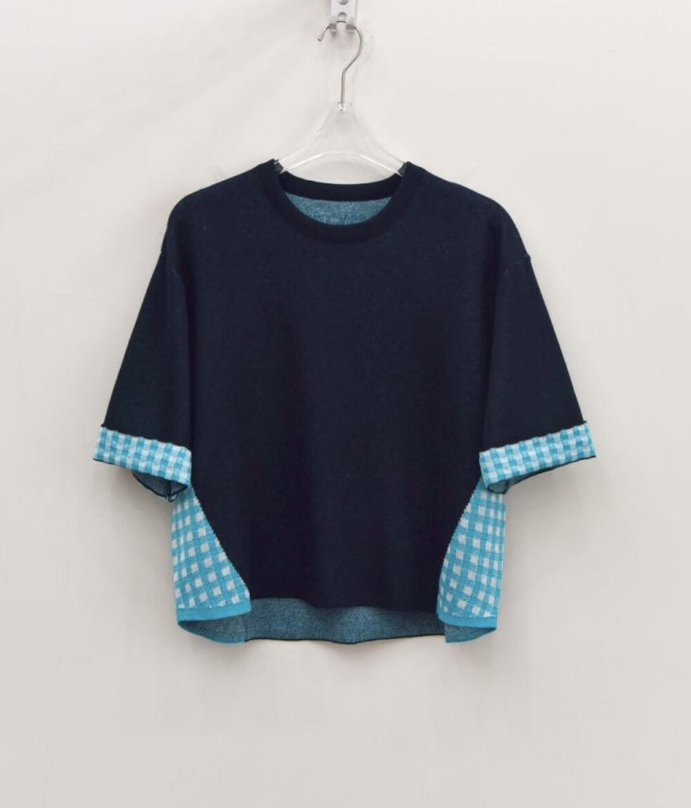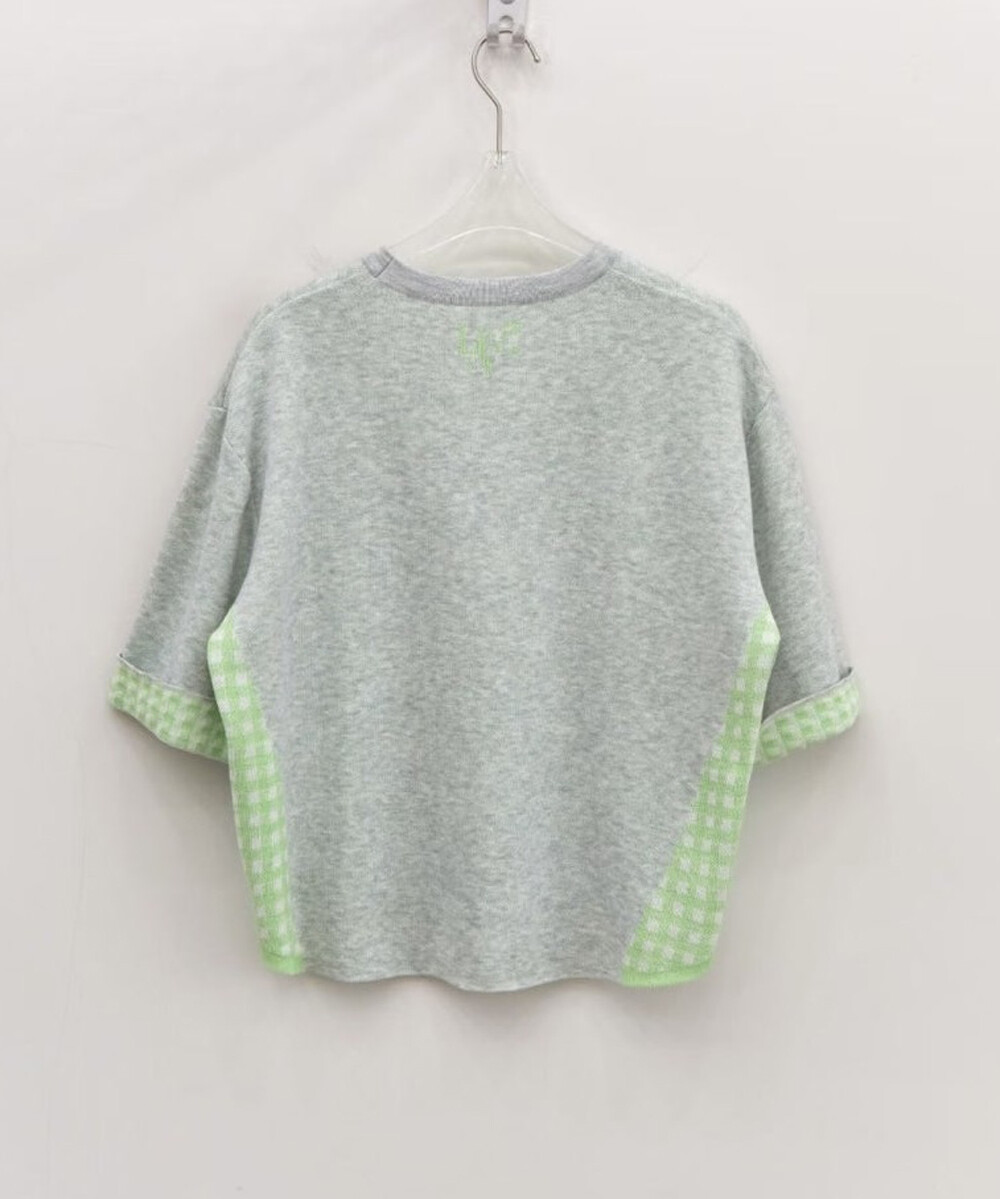 LATT. Wool Gingham Check Jacquard Half Knit Top