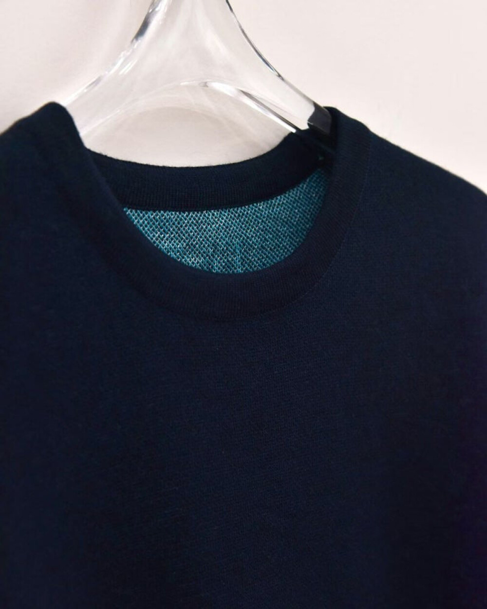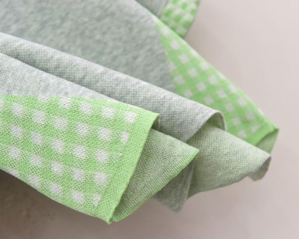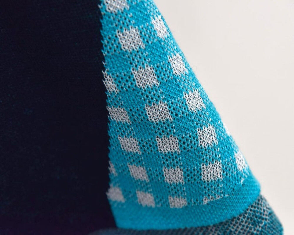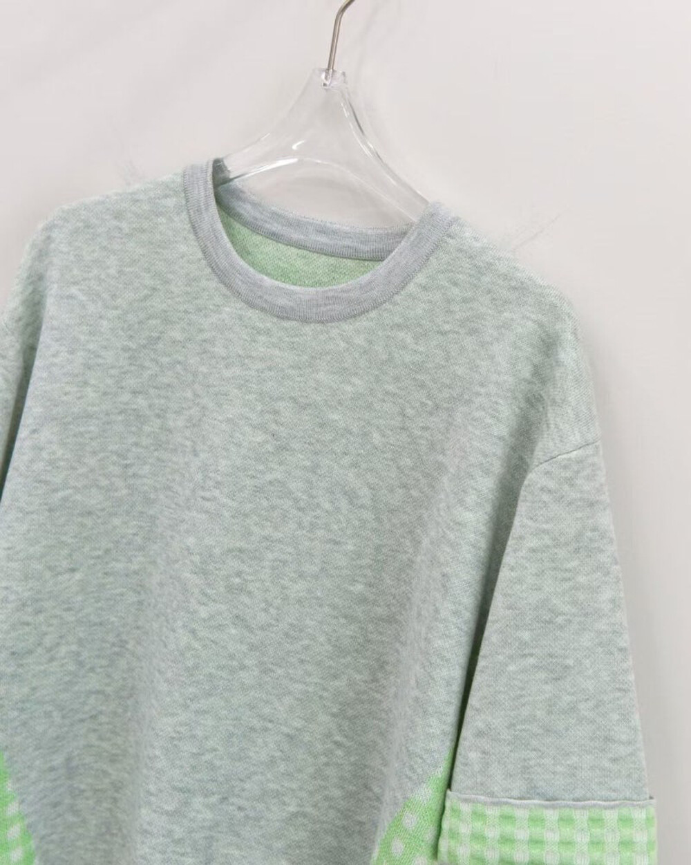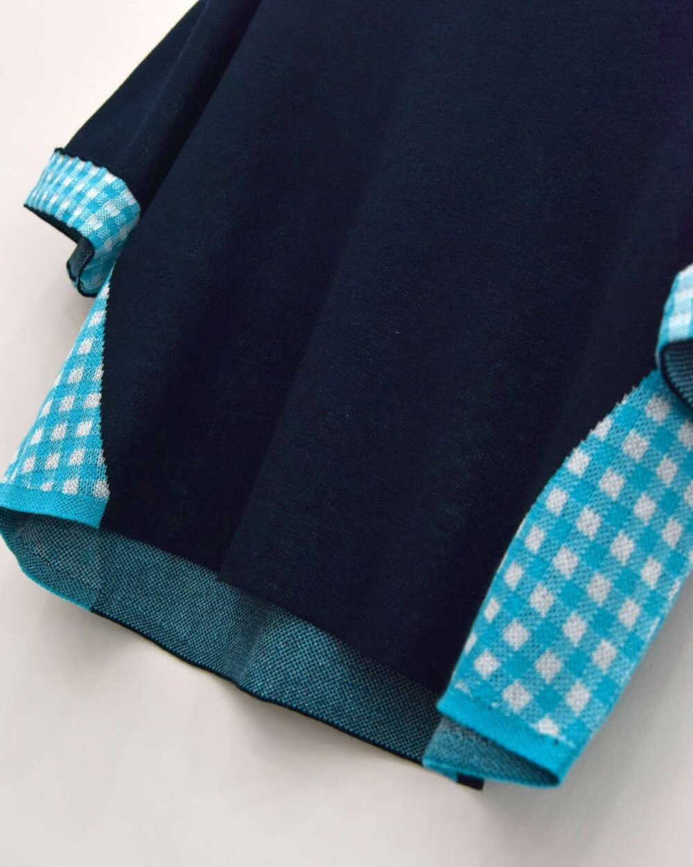 - 허리 양옆과 소맷단 내부에 깅엄 체크 니트 패턴