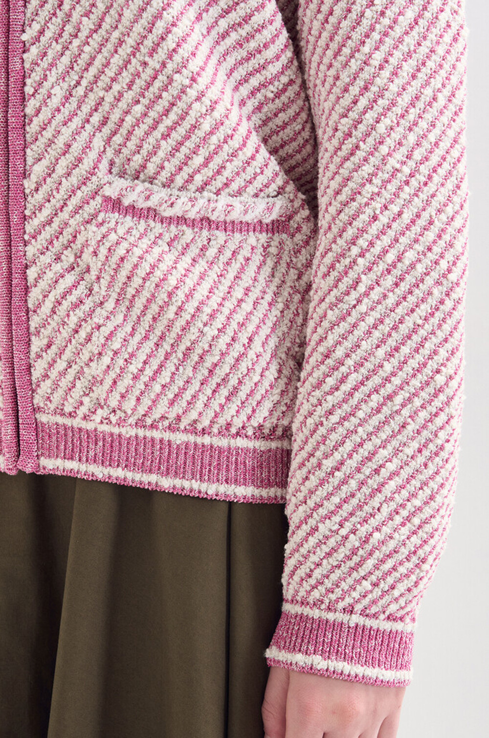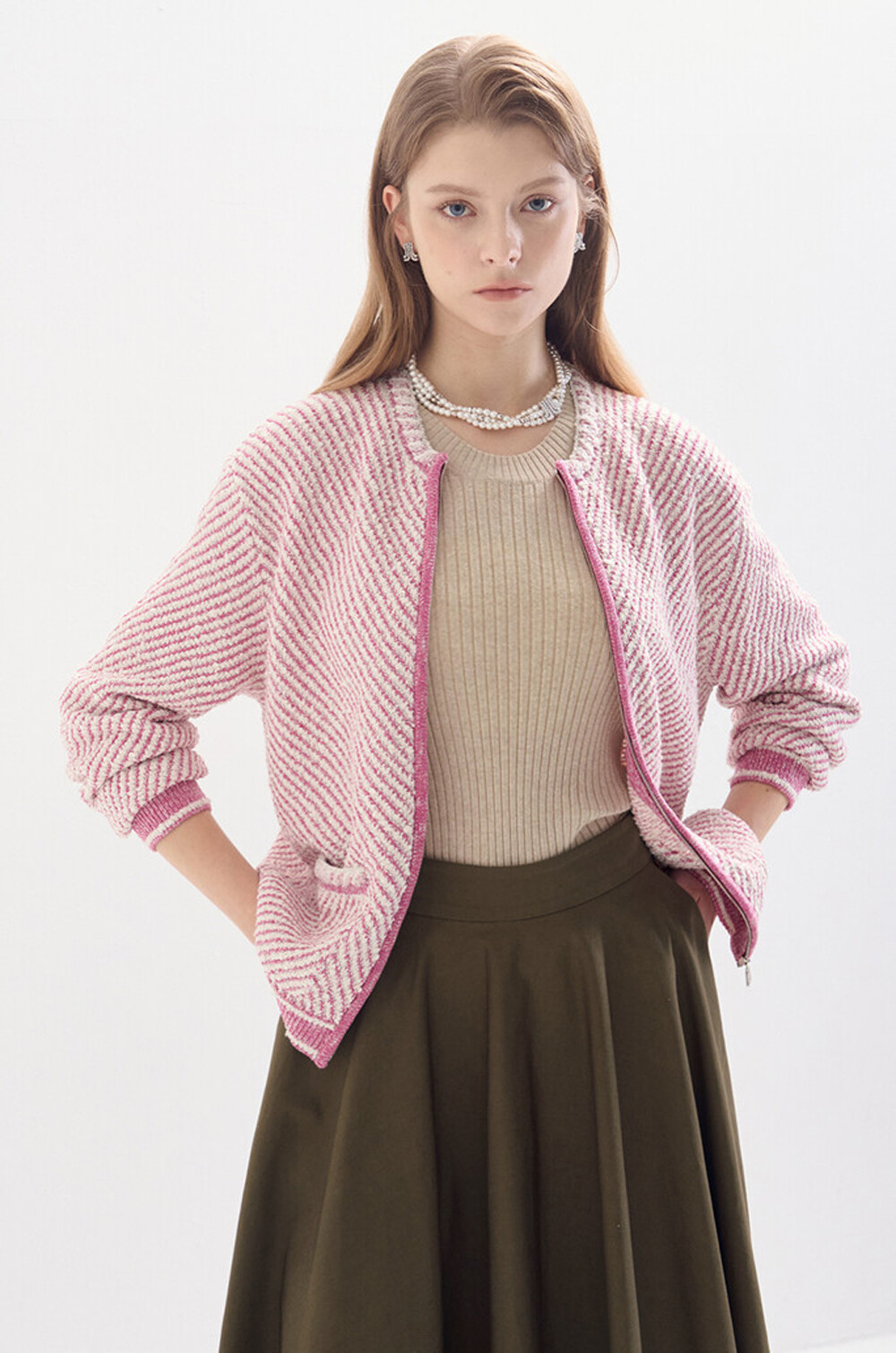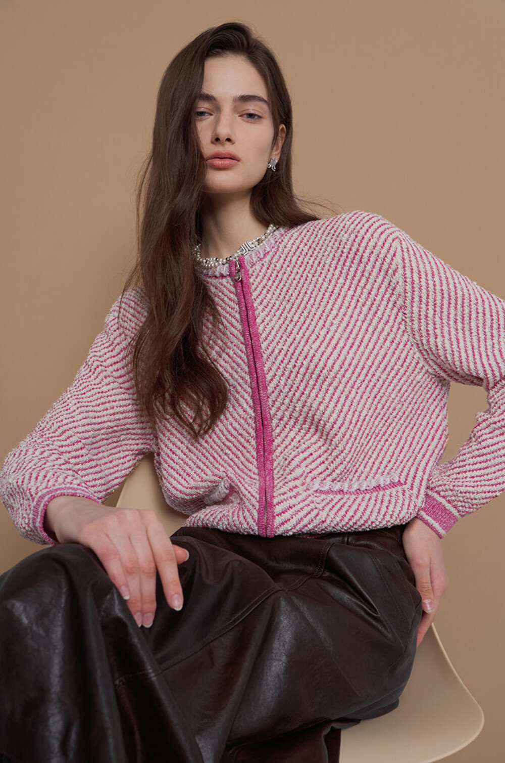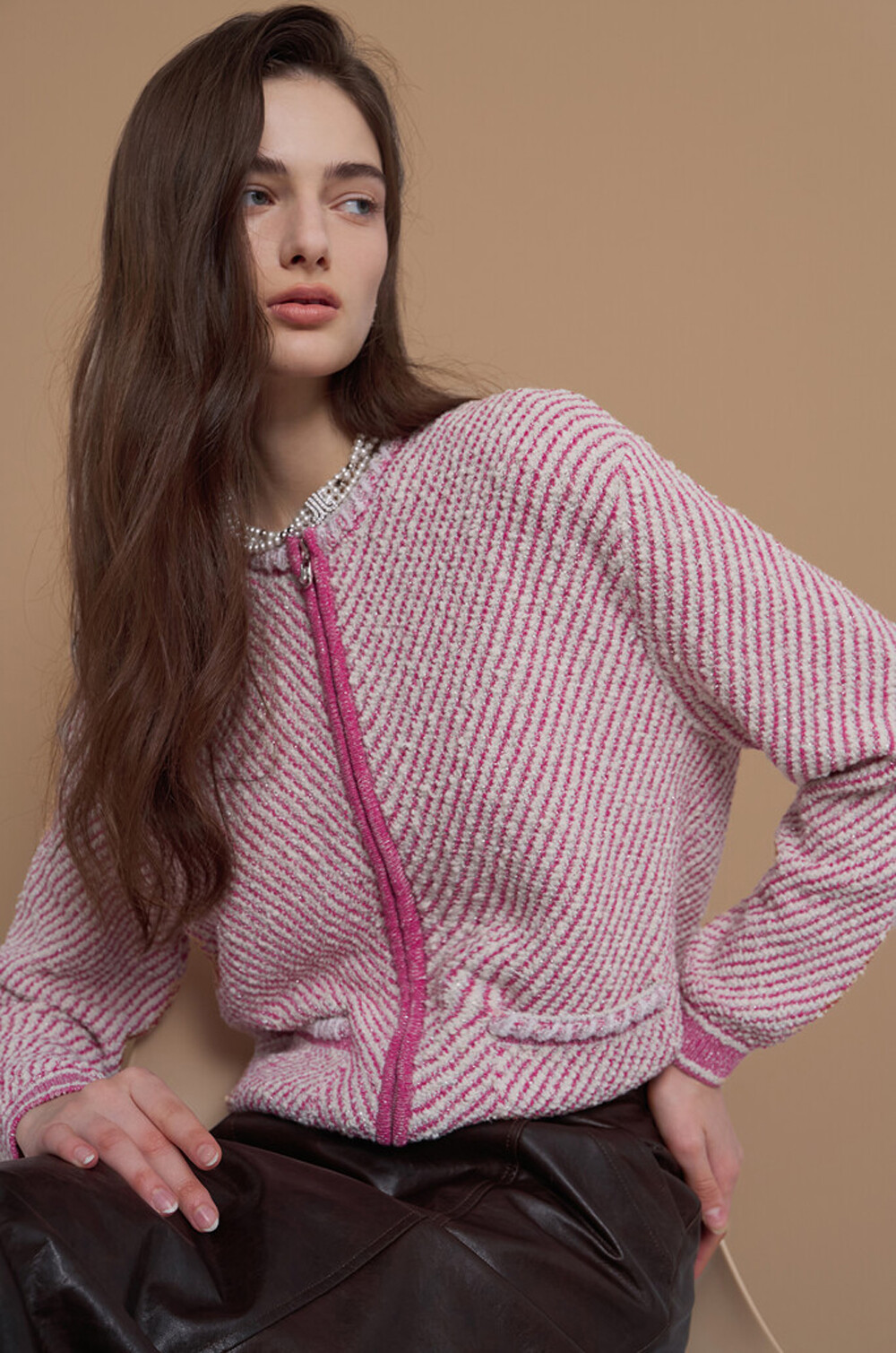 랑방컬렉션 부클 배색 집업 니트 가디건