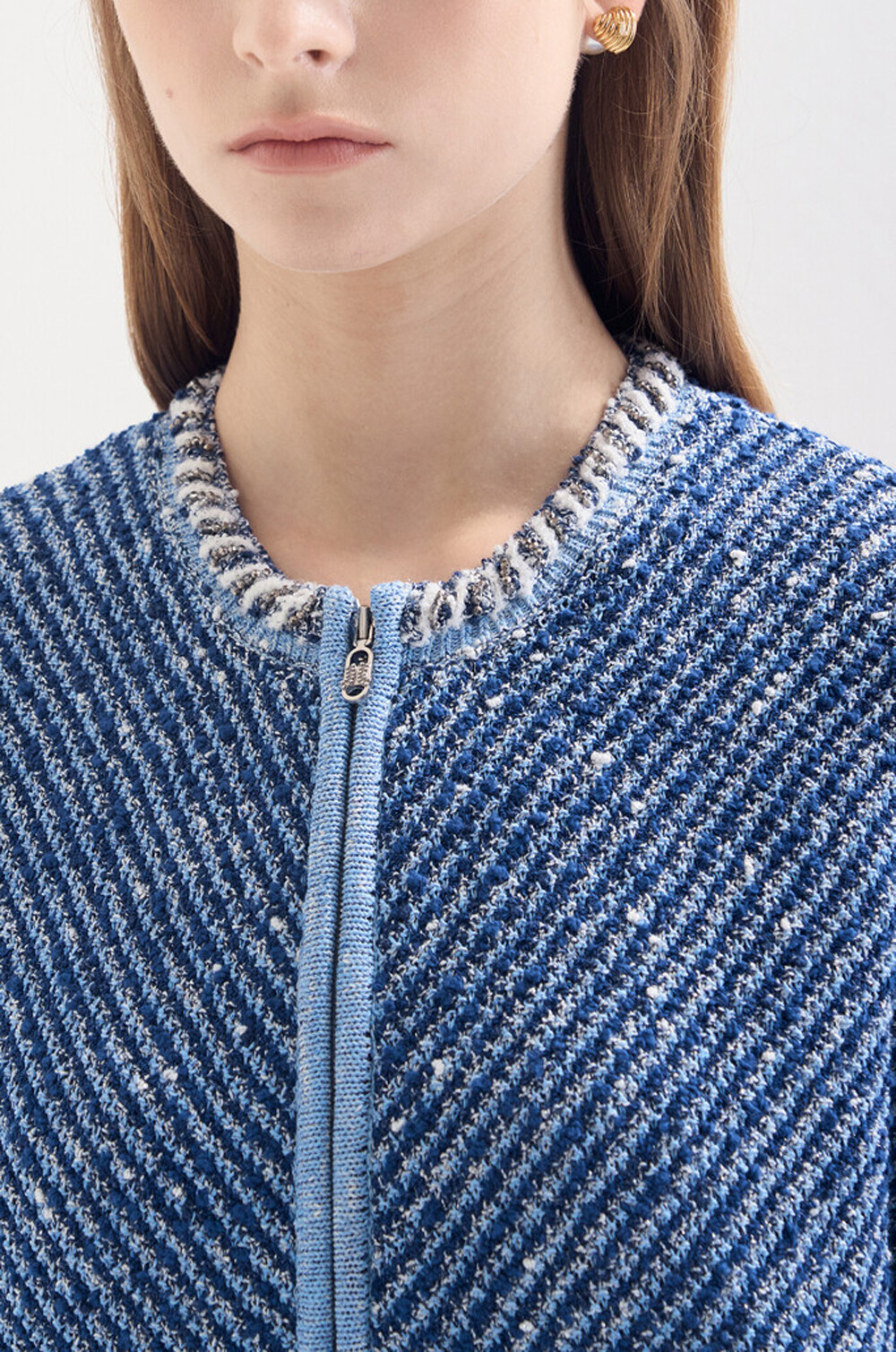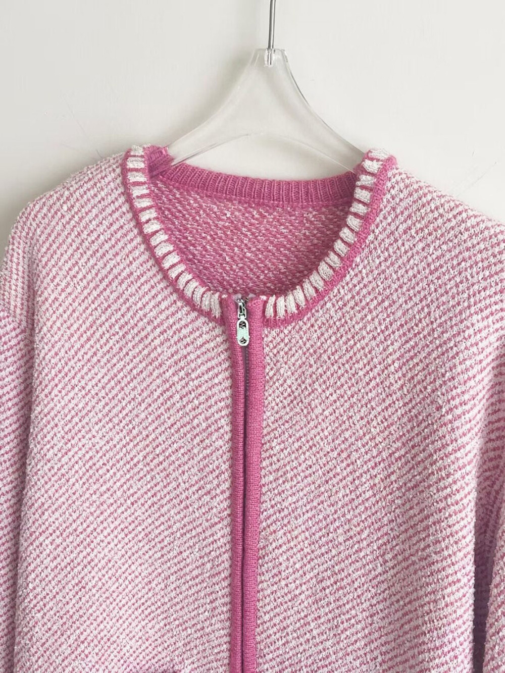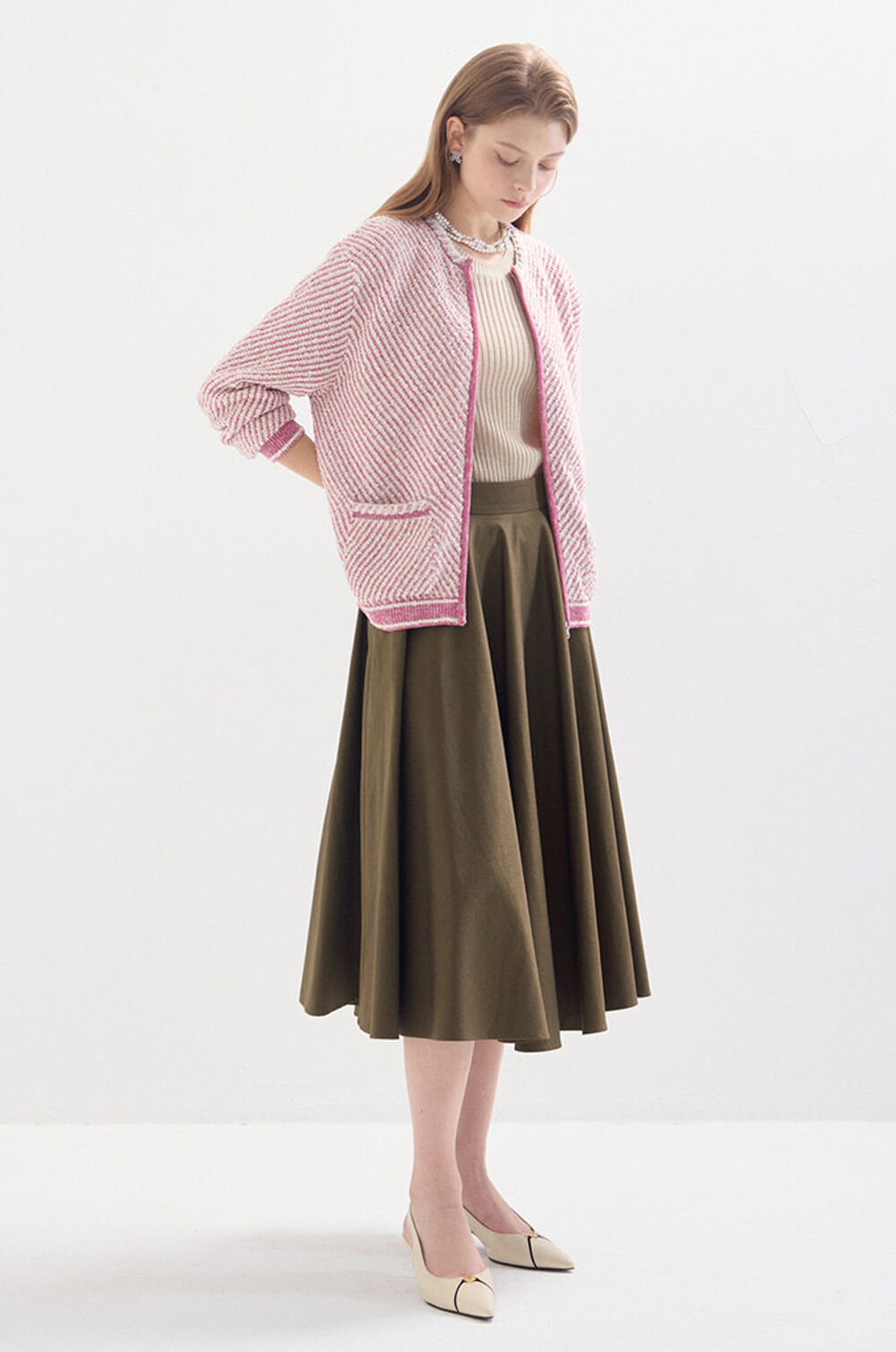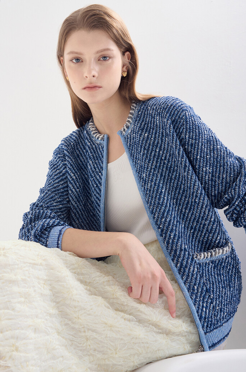 랑방컬렉션 부클 배색 집업 니트 가디건