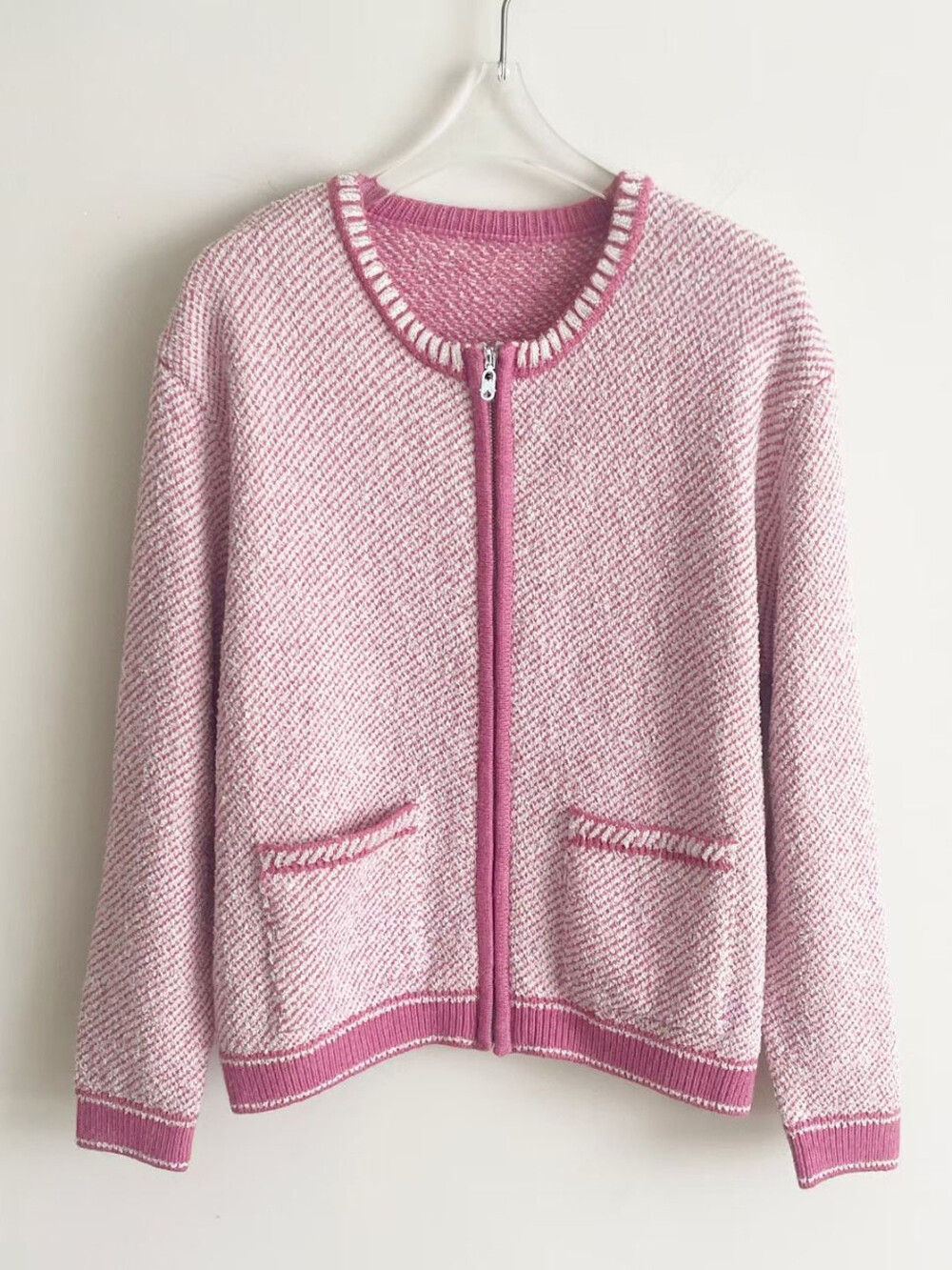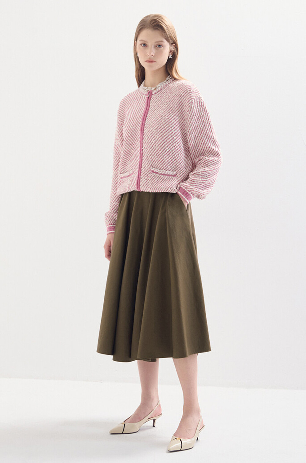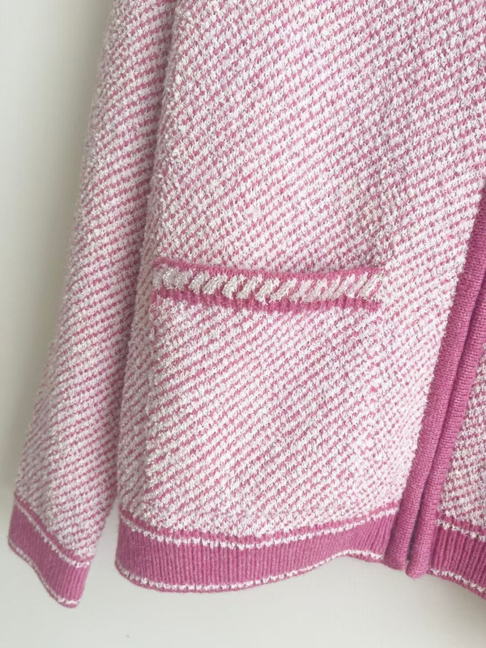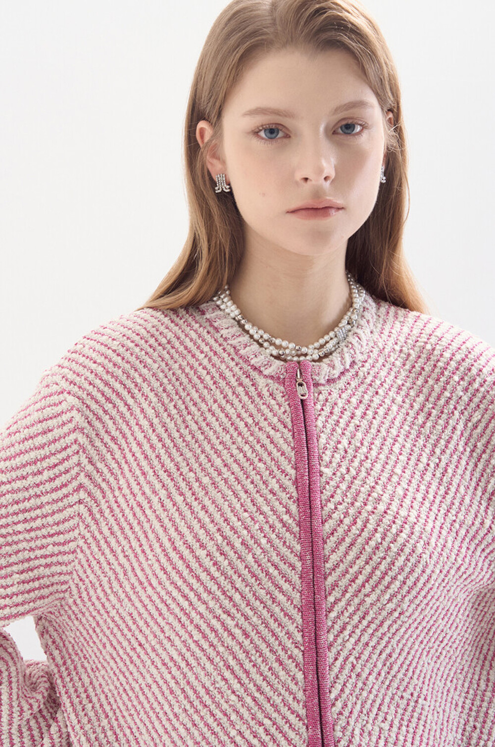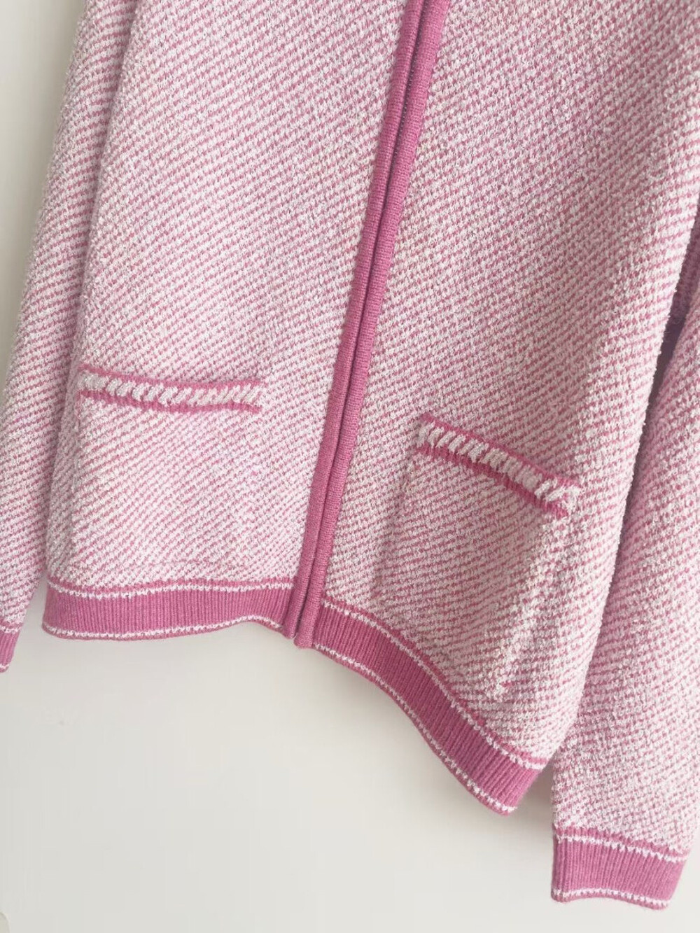 랑방컬렉션 부클 배색 집업 니트 가디건