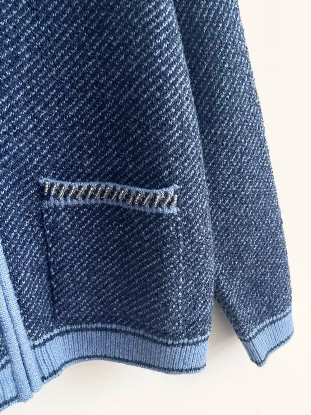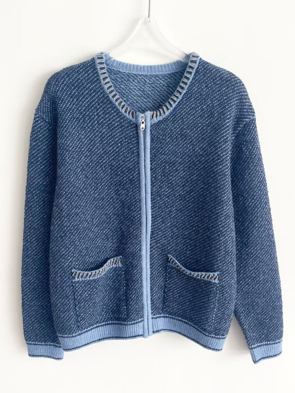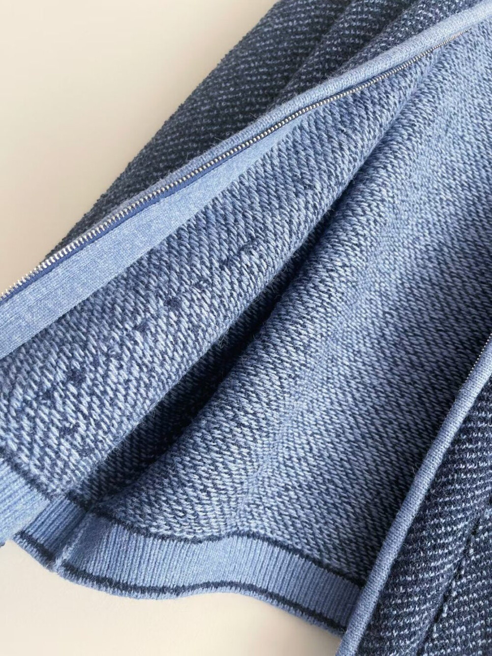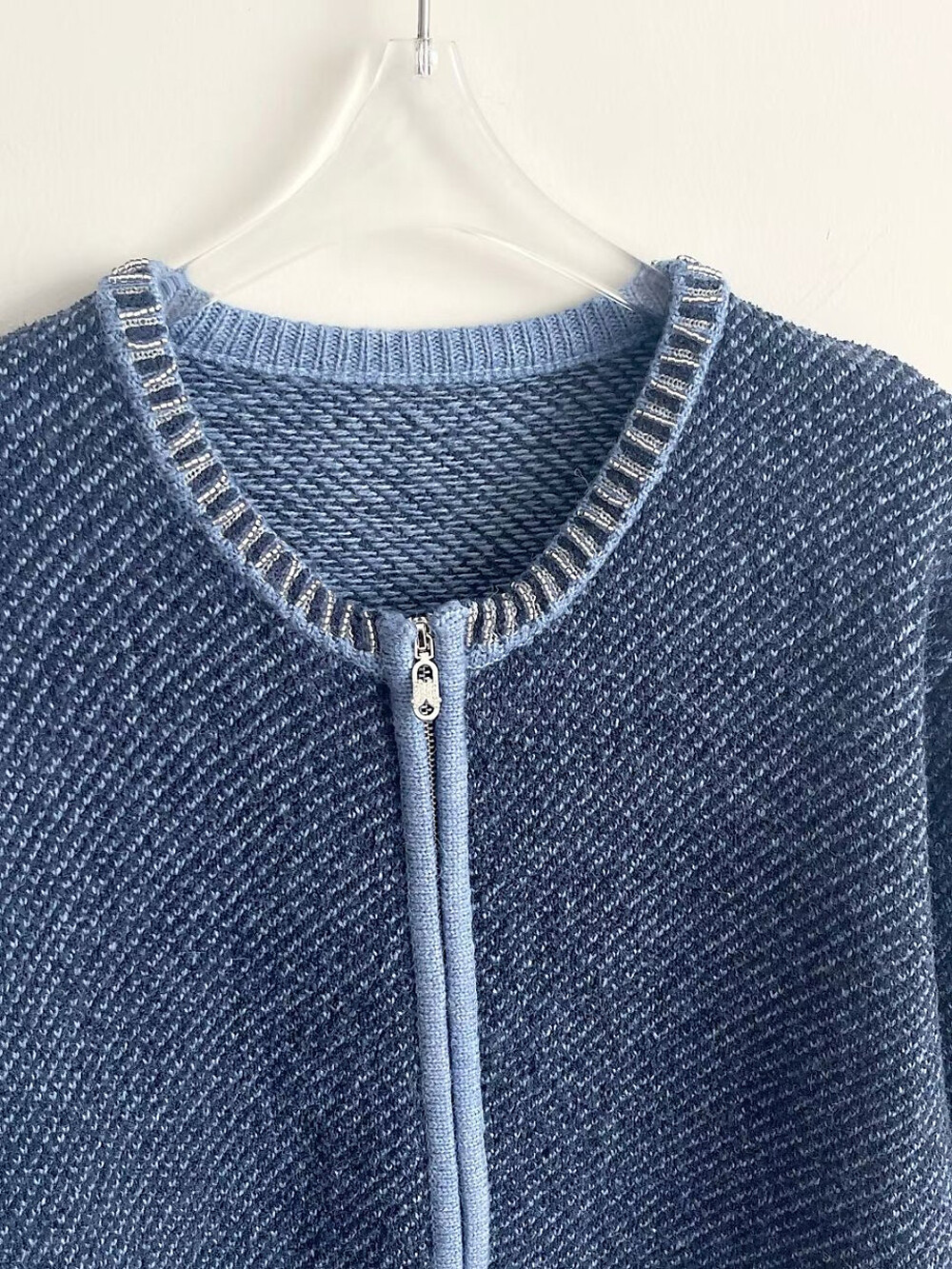 랑방컬렉션 부클 배색 집업 니트 가디건