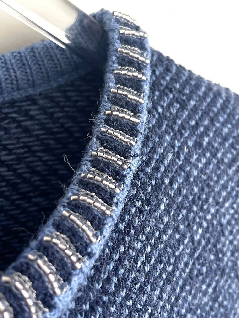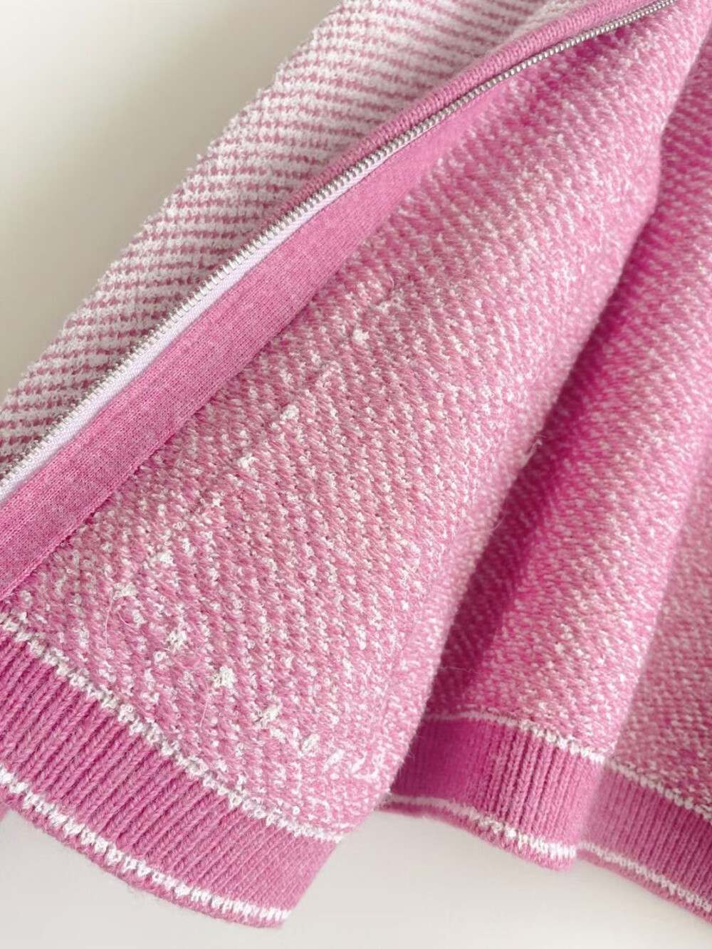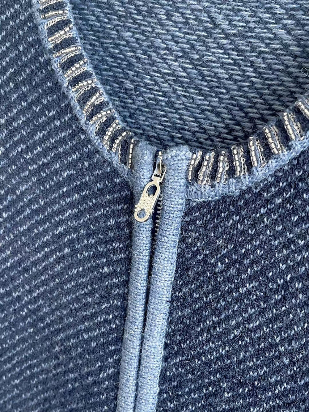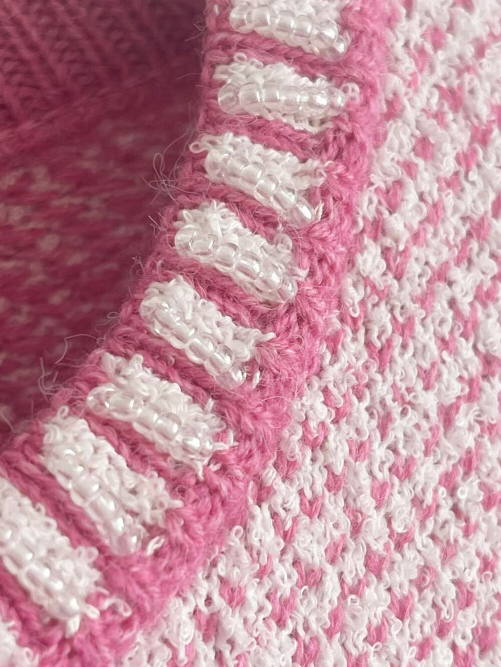 랑방컬렉션 부클 배색 집업 니트 가디건