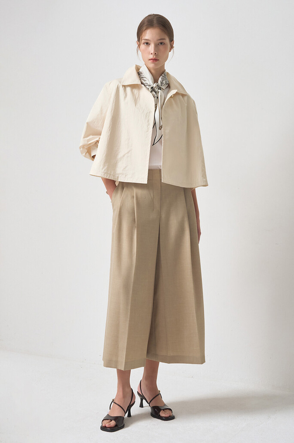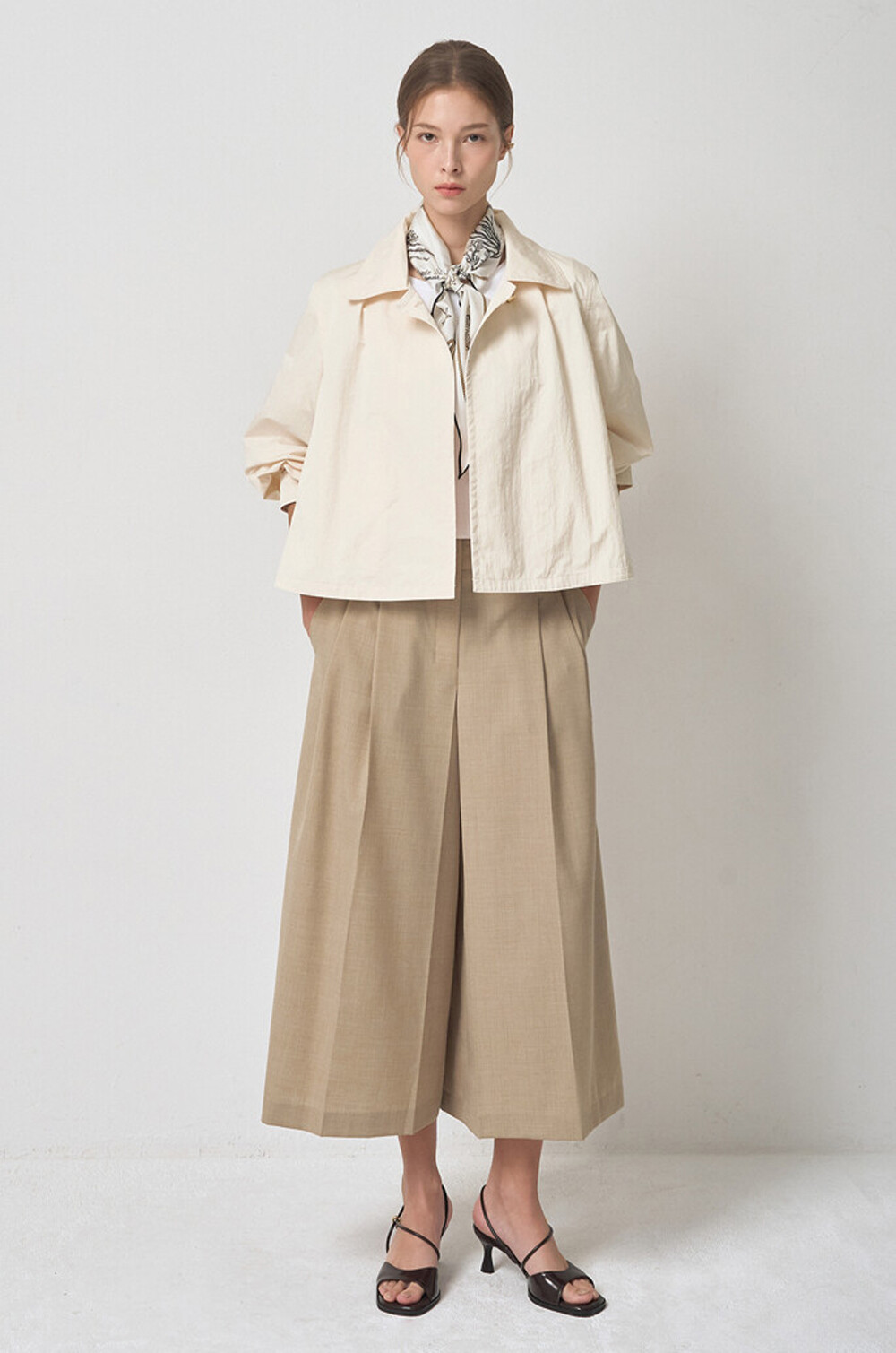 더블 핀턱과 와이드 크롭 실루엣이