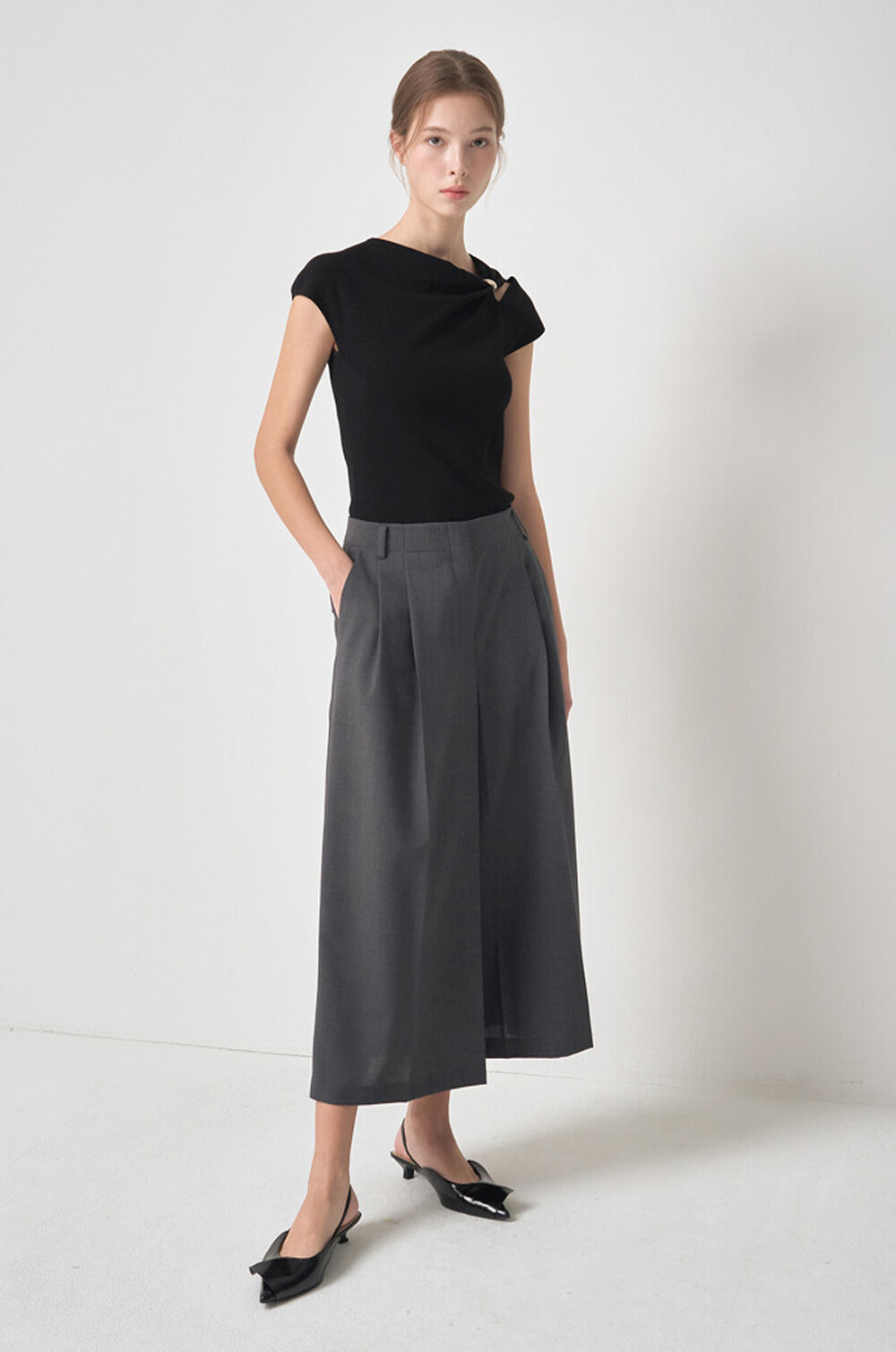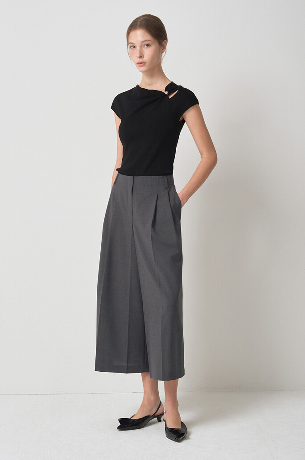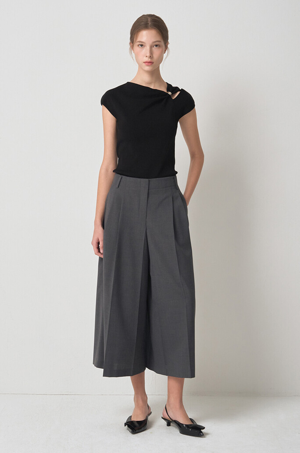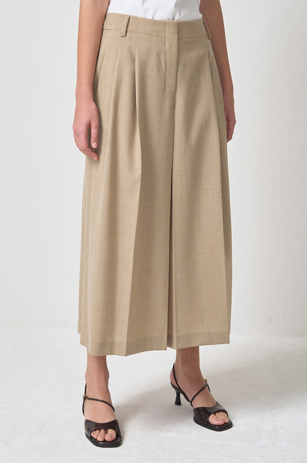 마인 울 블렌드 플리츠 퀼로트 팬츠