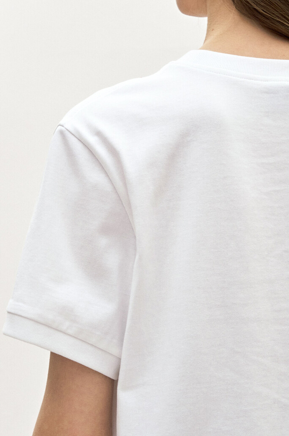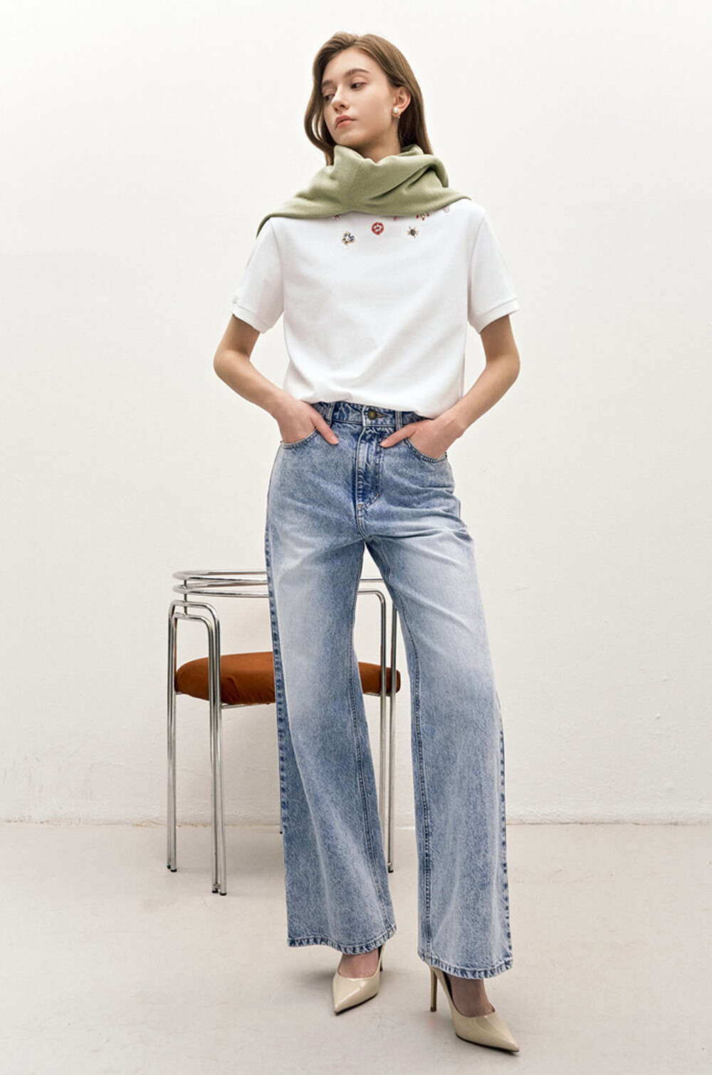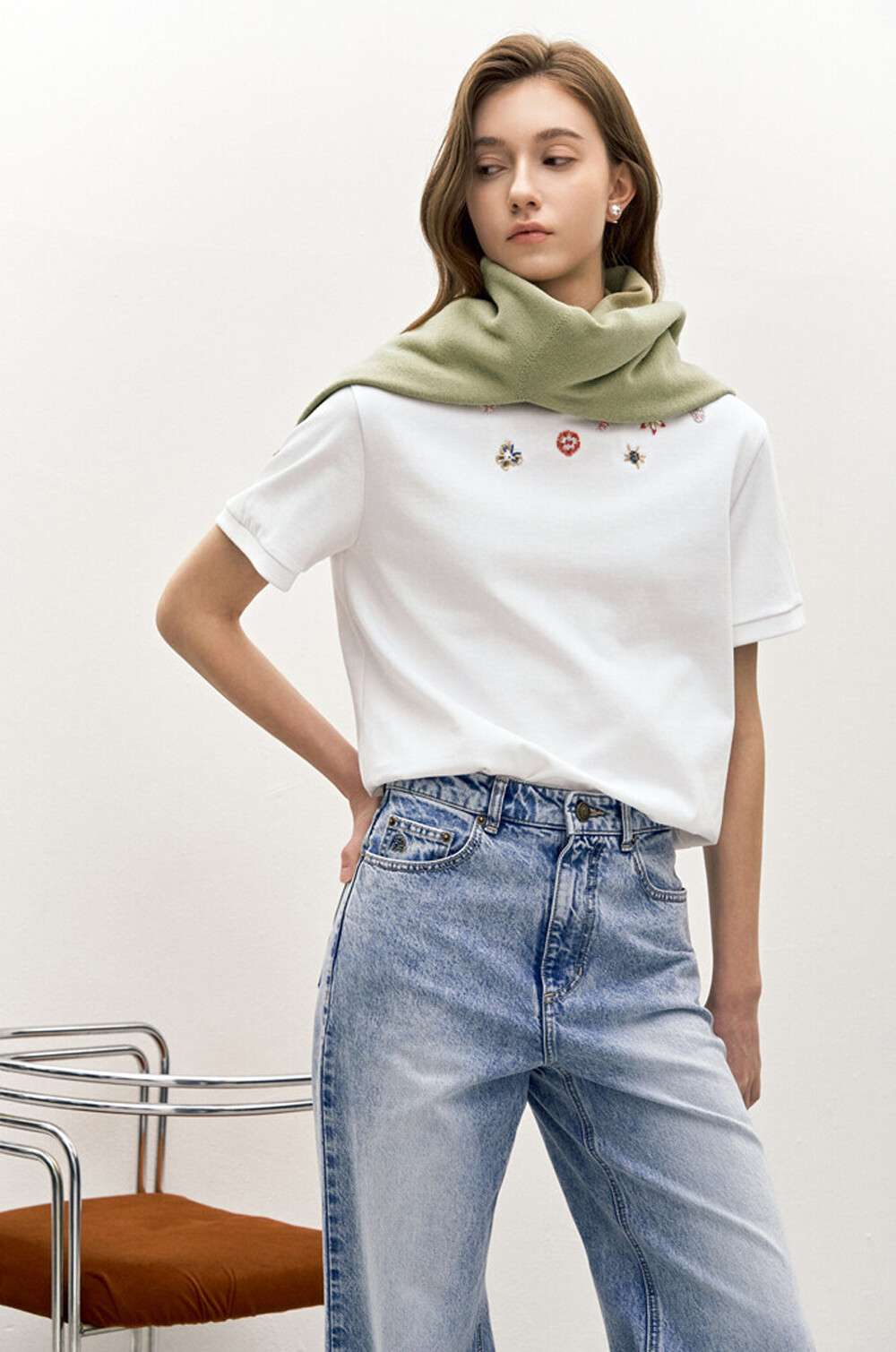- 넥라인 앞면에 꽃 모티브의 비즈 디테일