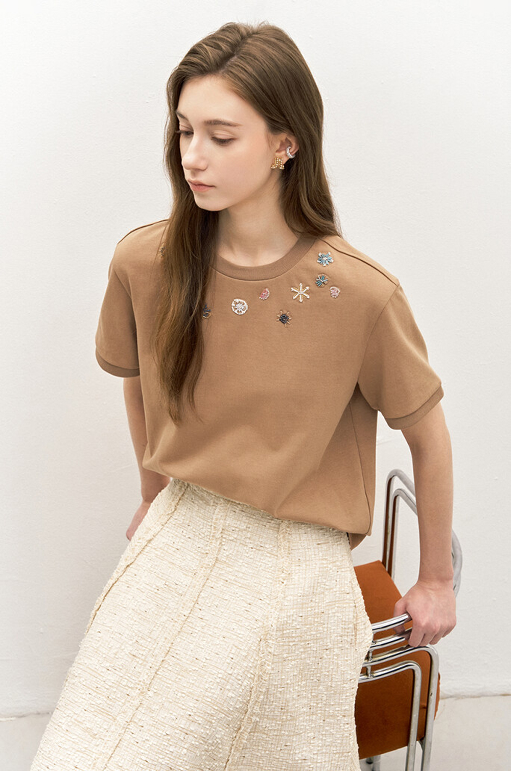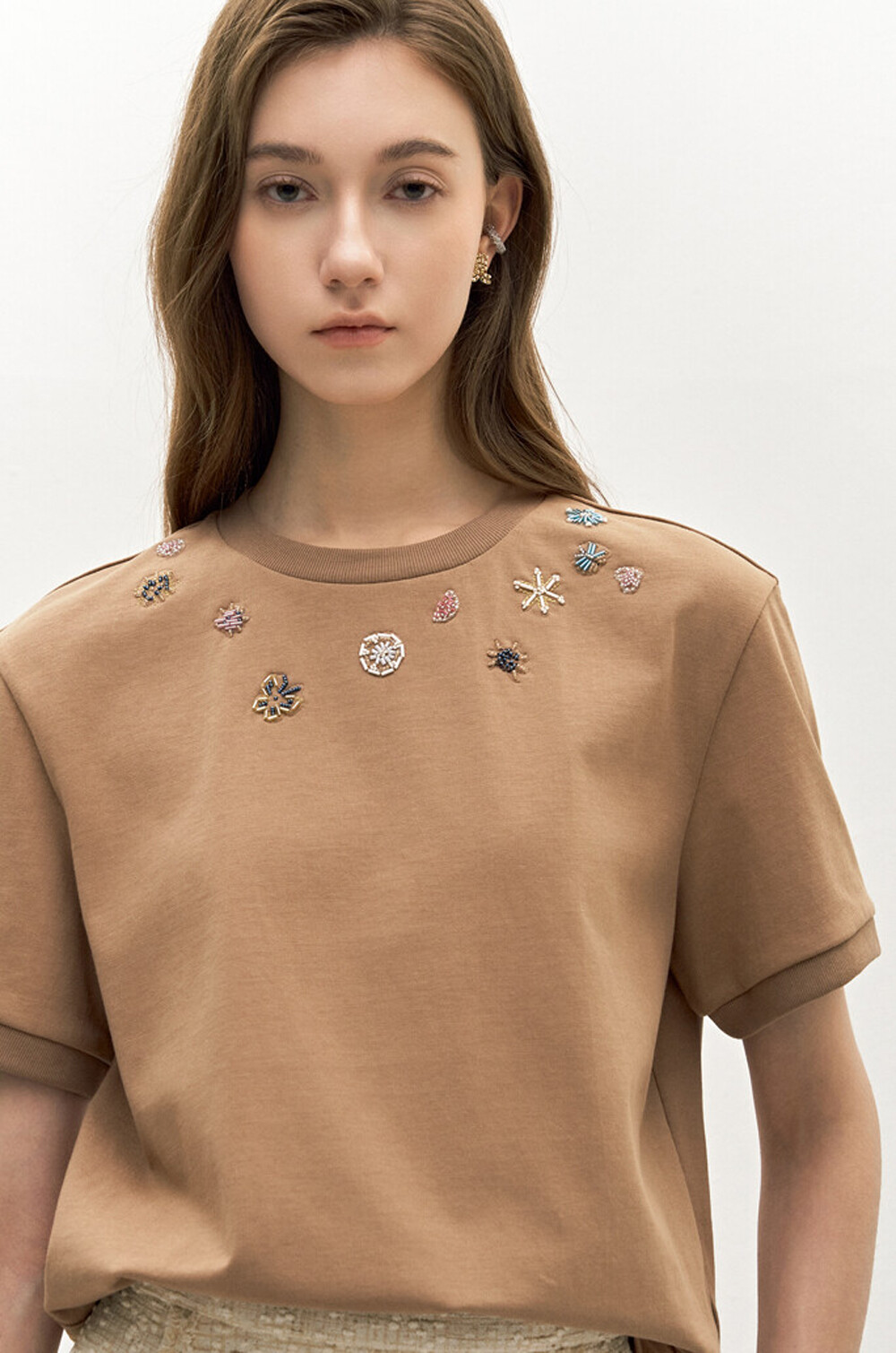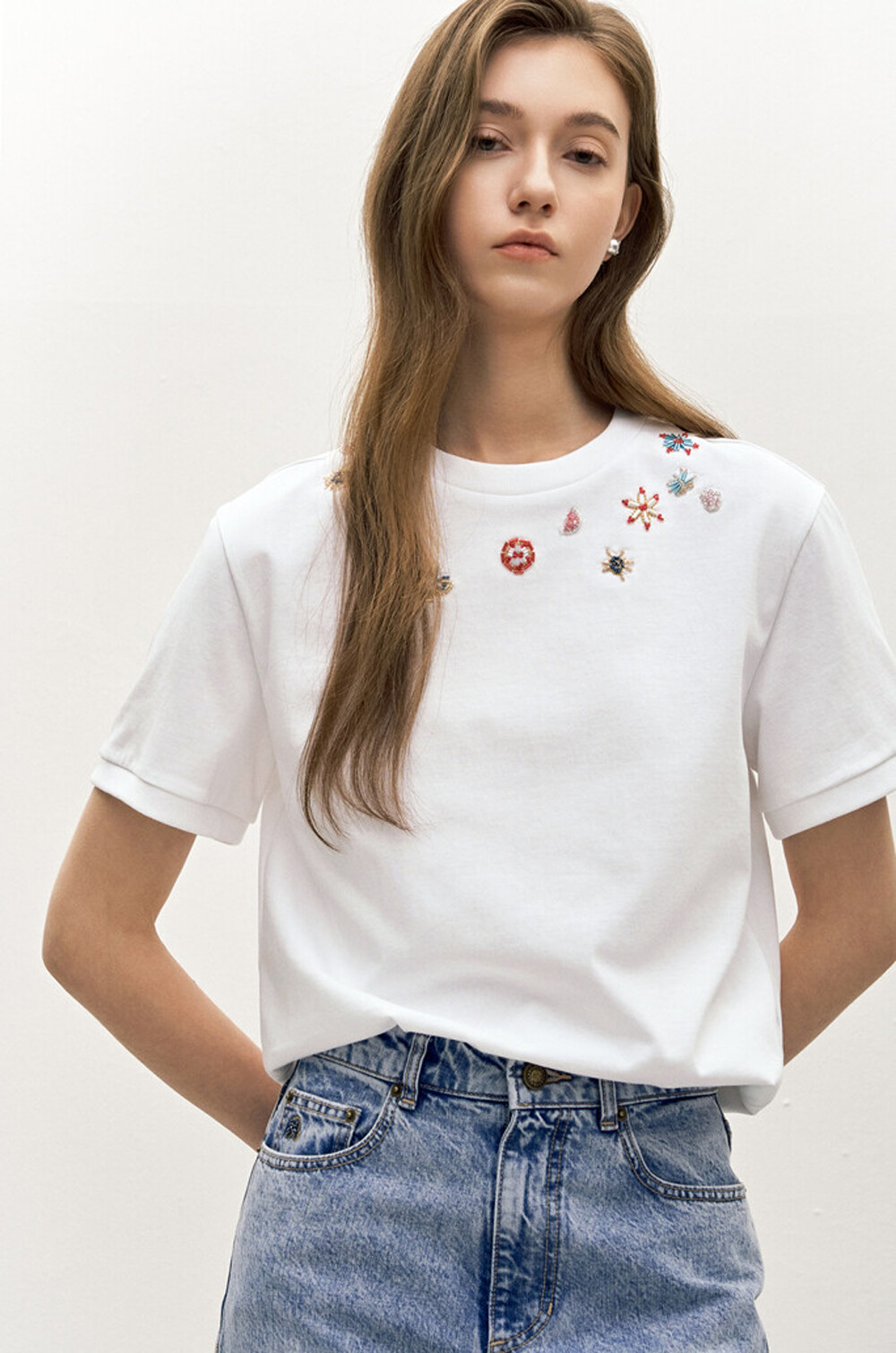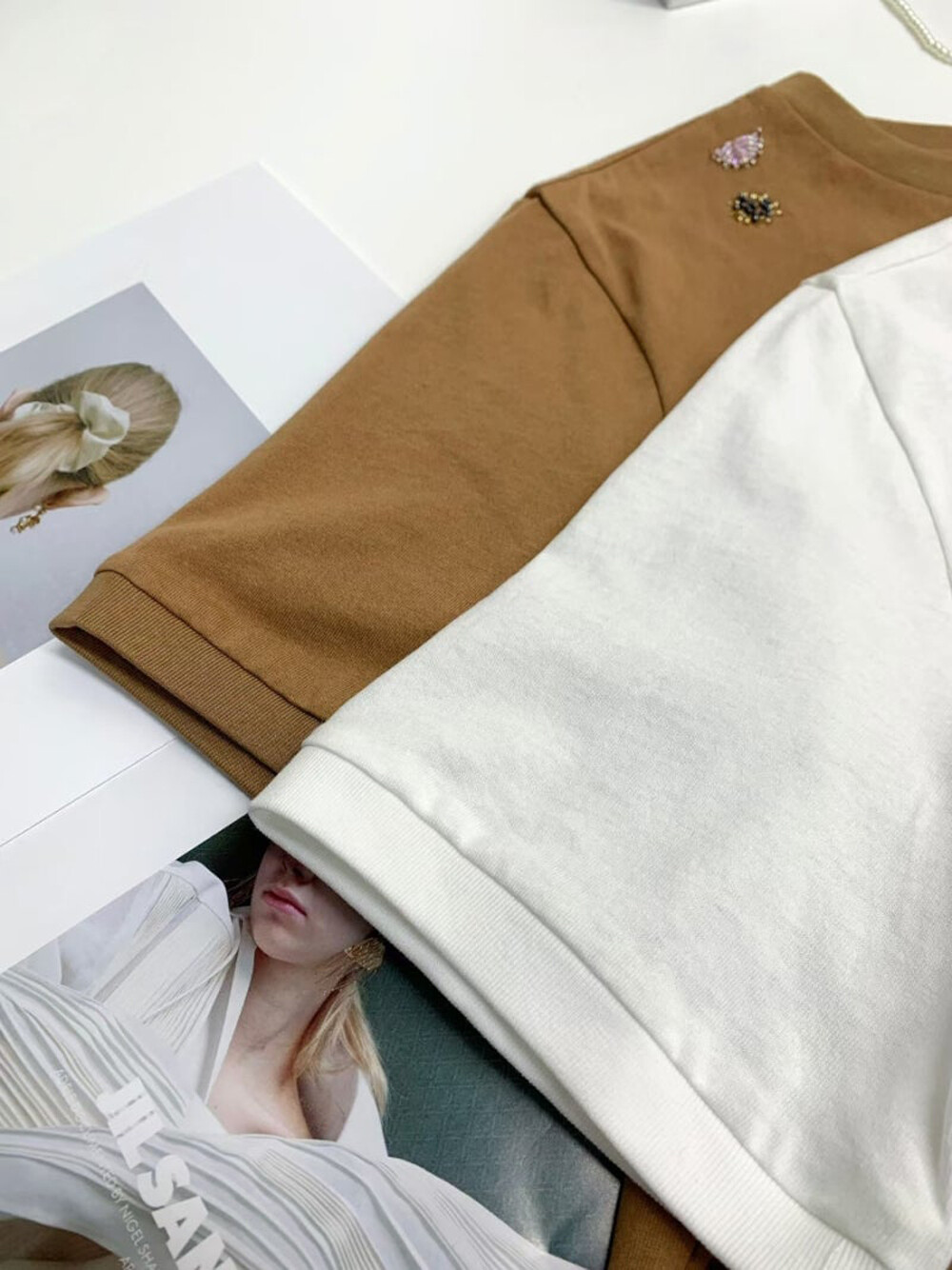 랑방컬렉션 하프 슬리브 비즈 디테일 탑