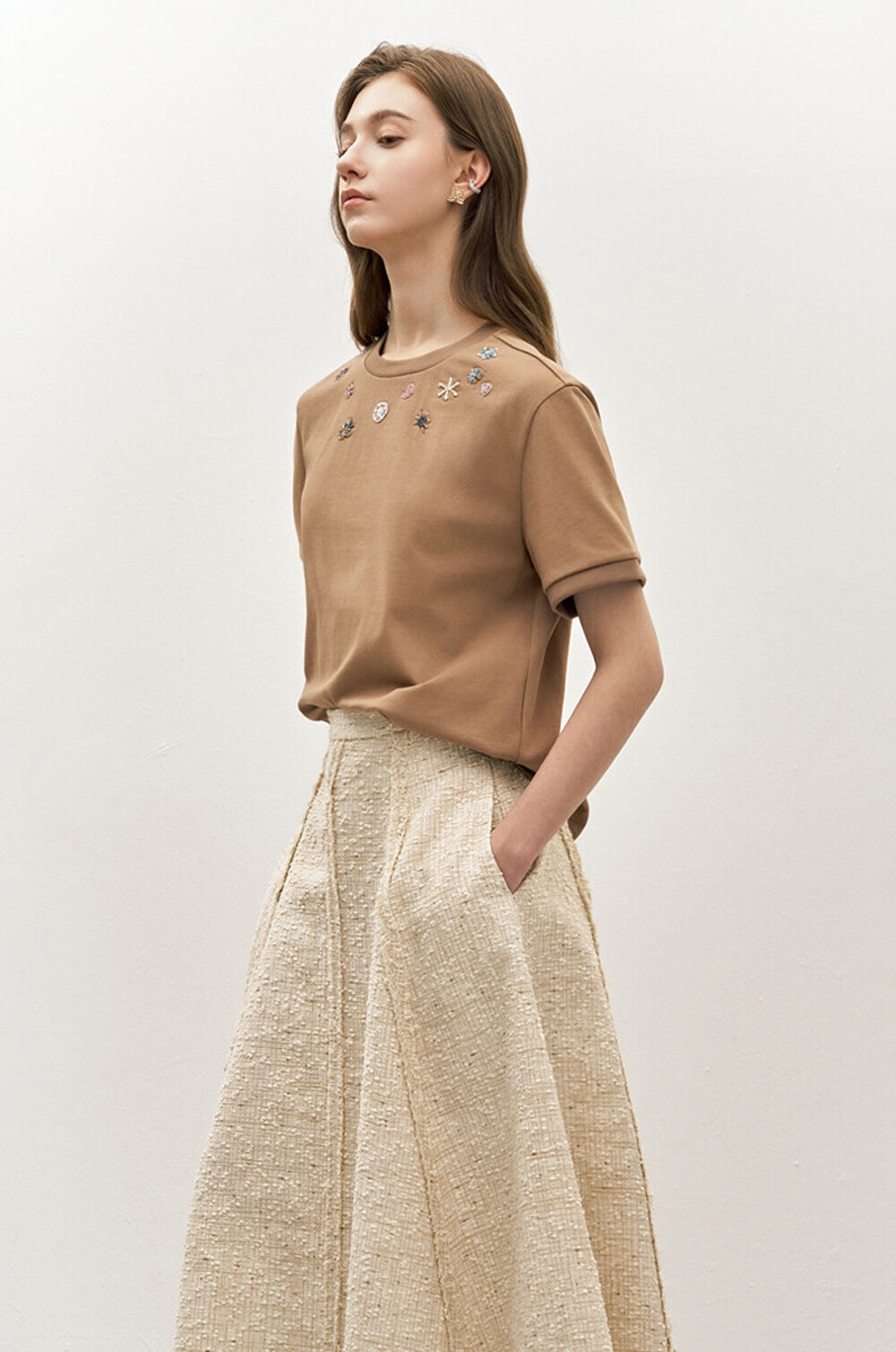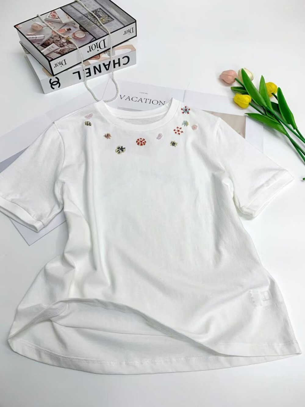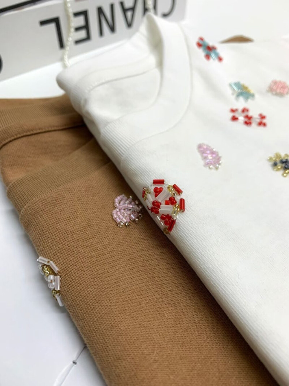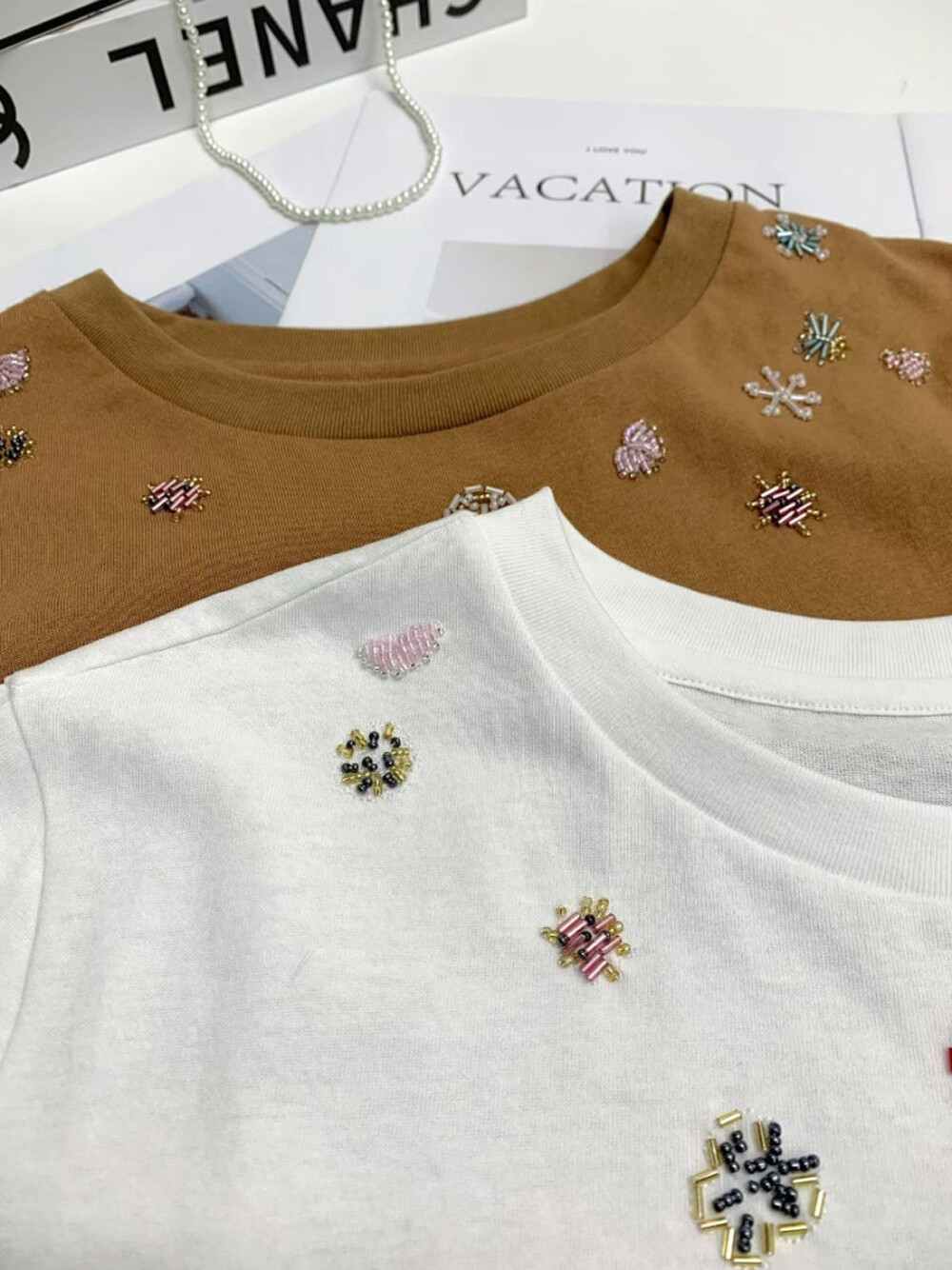 랑방컬렉션 하프 슬리브 비즈 디테일 탑