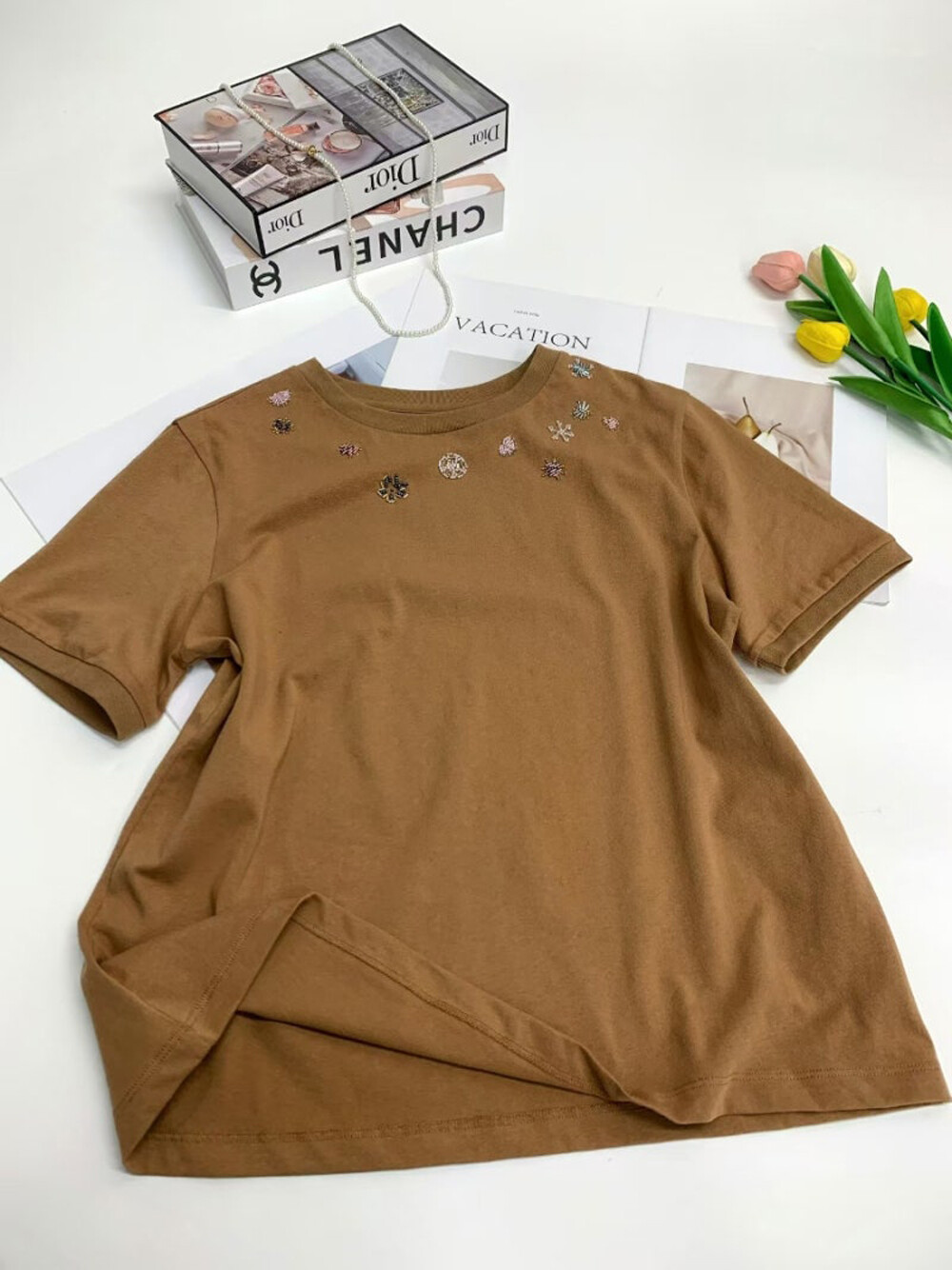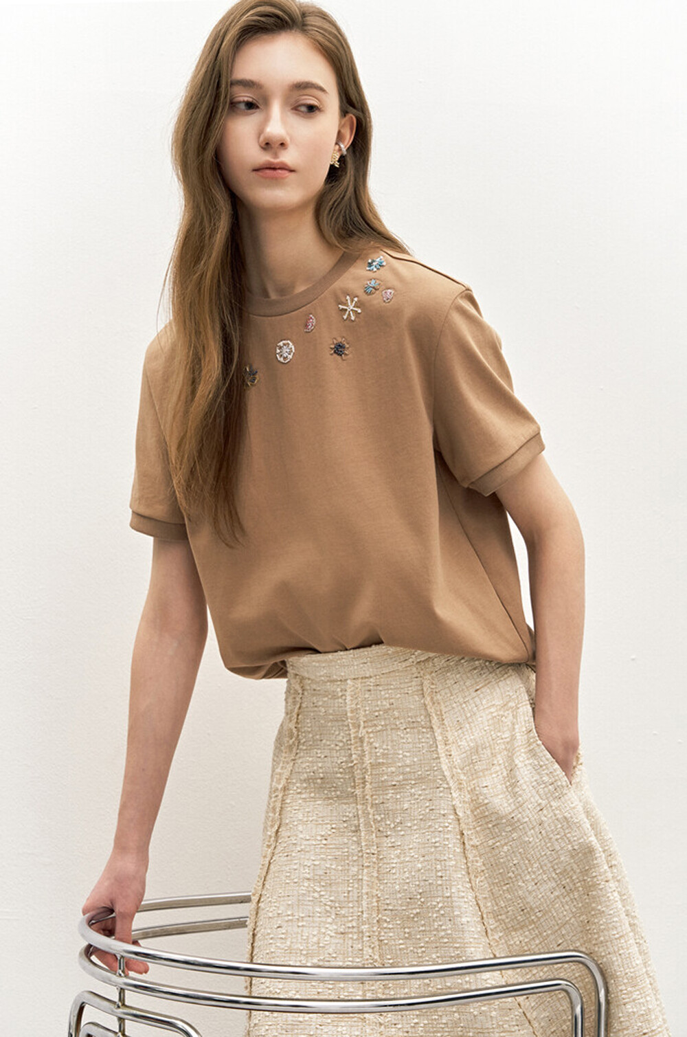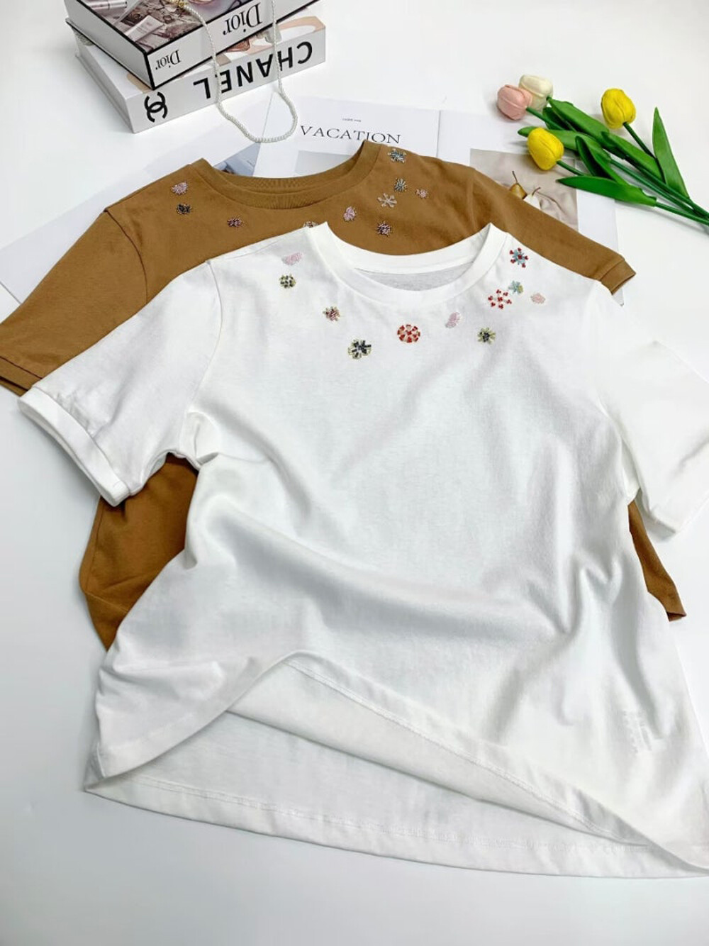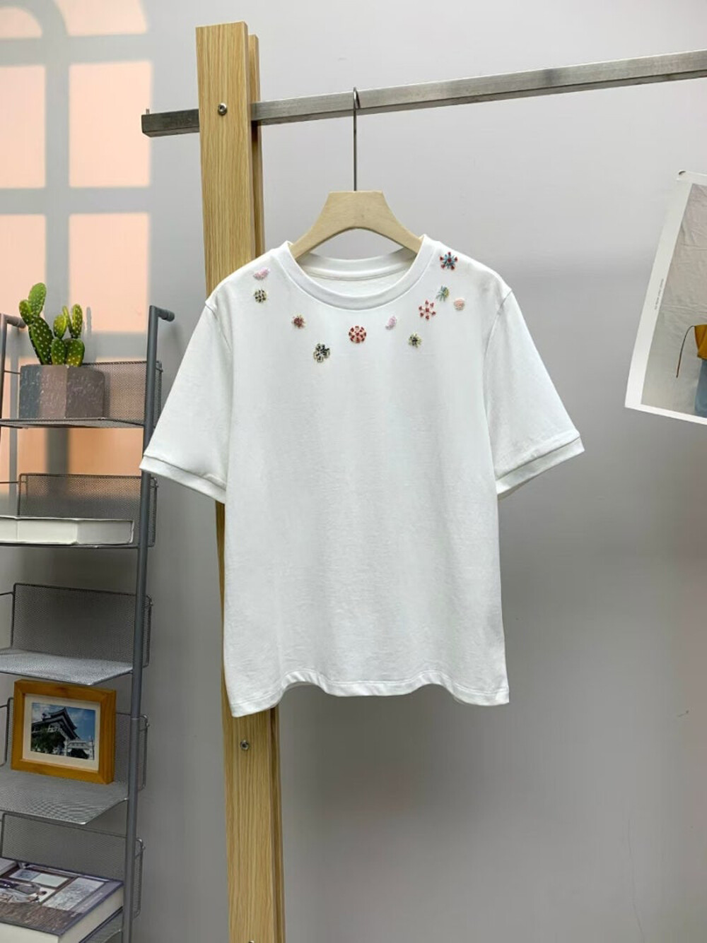 랑방컬렉션 하프 슬리브 비즈 디테일 탑