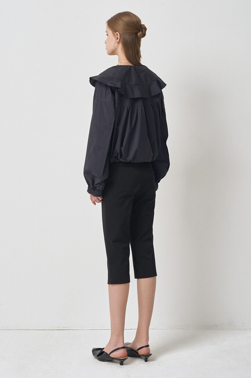 - 밑단 내부 밴딩과 양쪽에 드로우스트링
