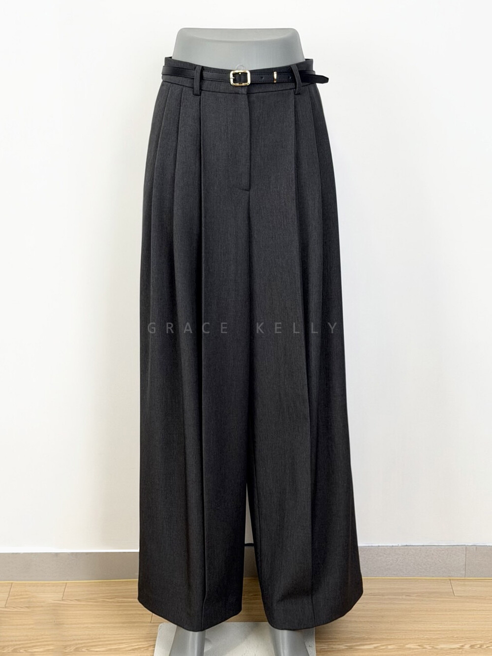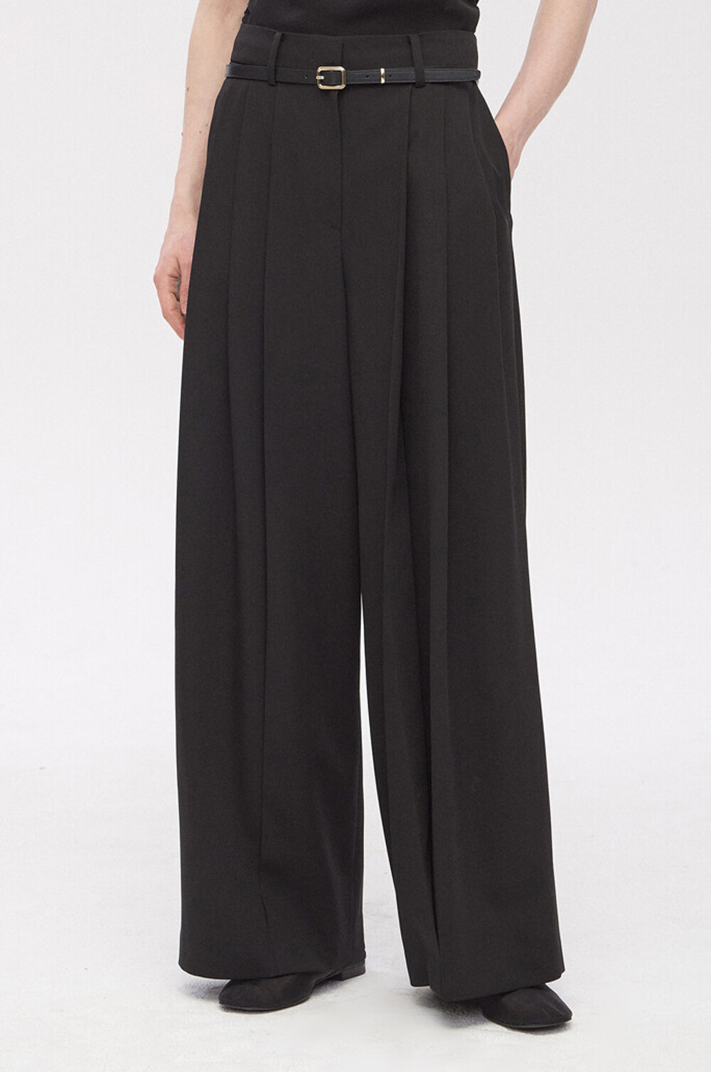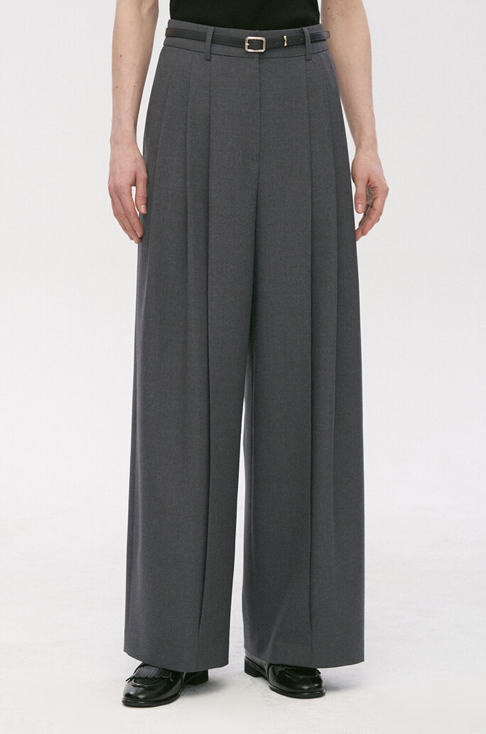 타임 울 벨티드 핀턱 와이드 팬츠