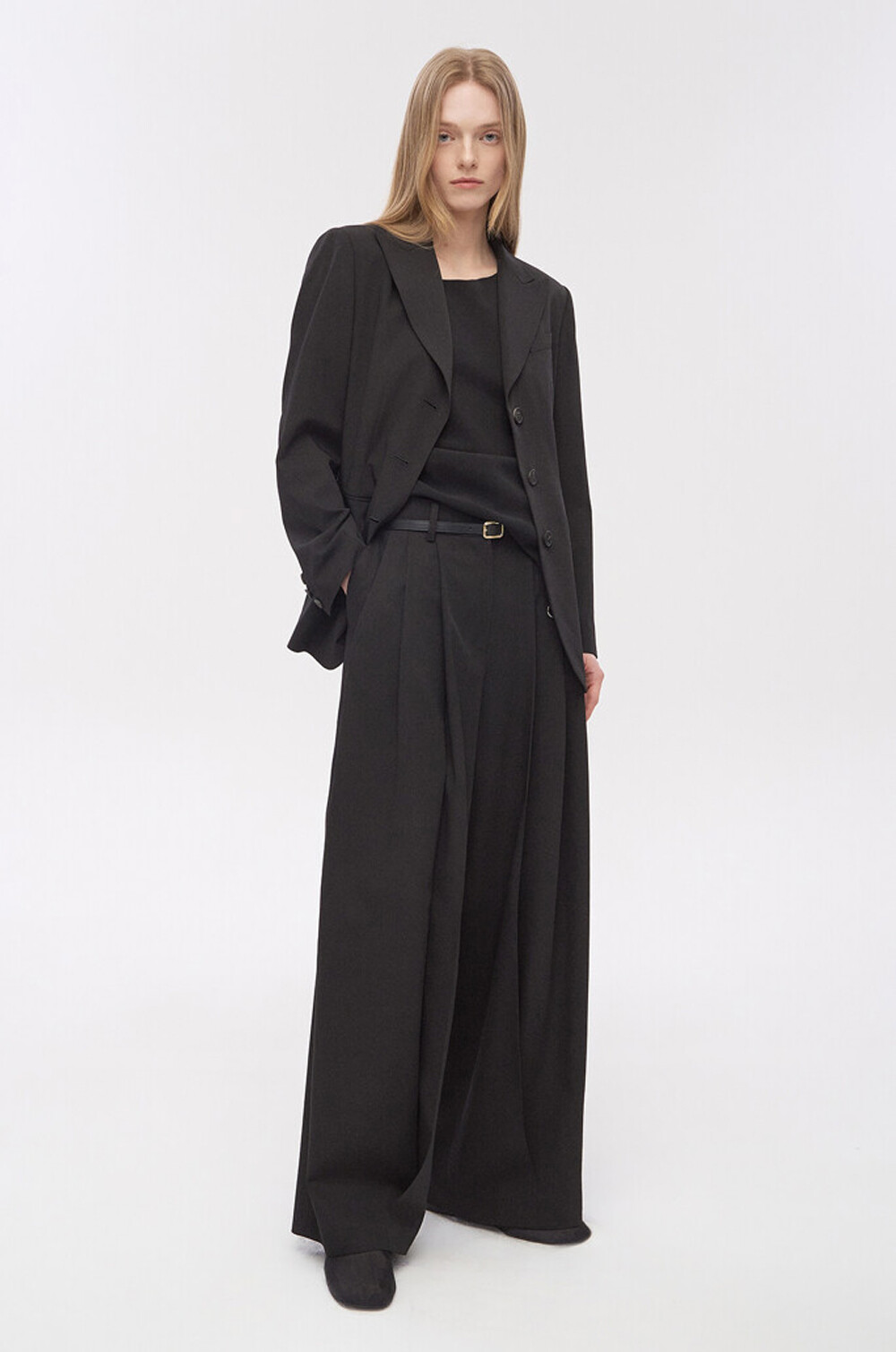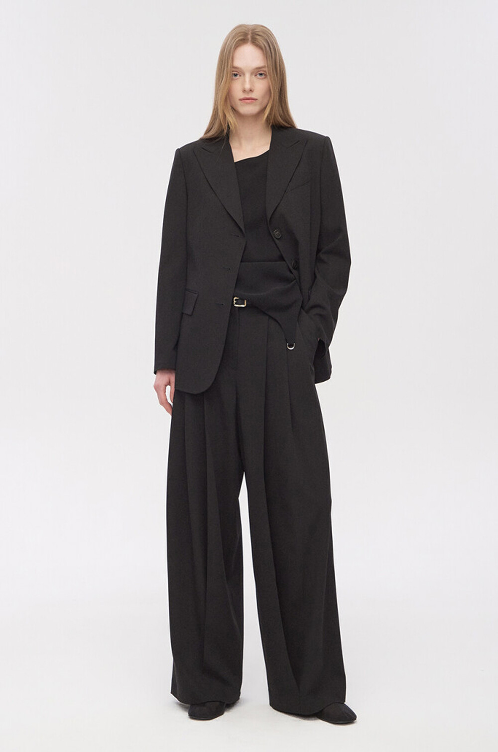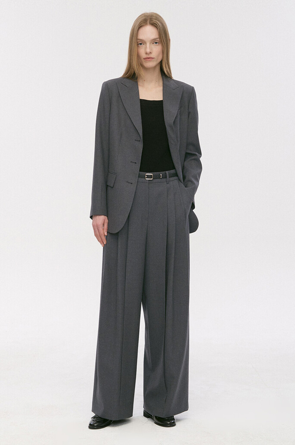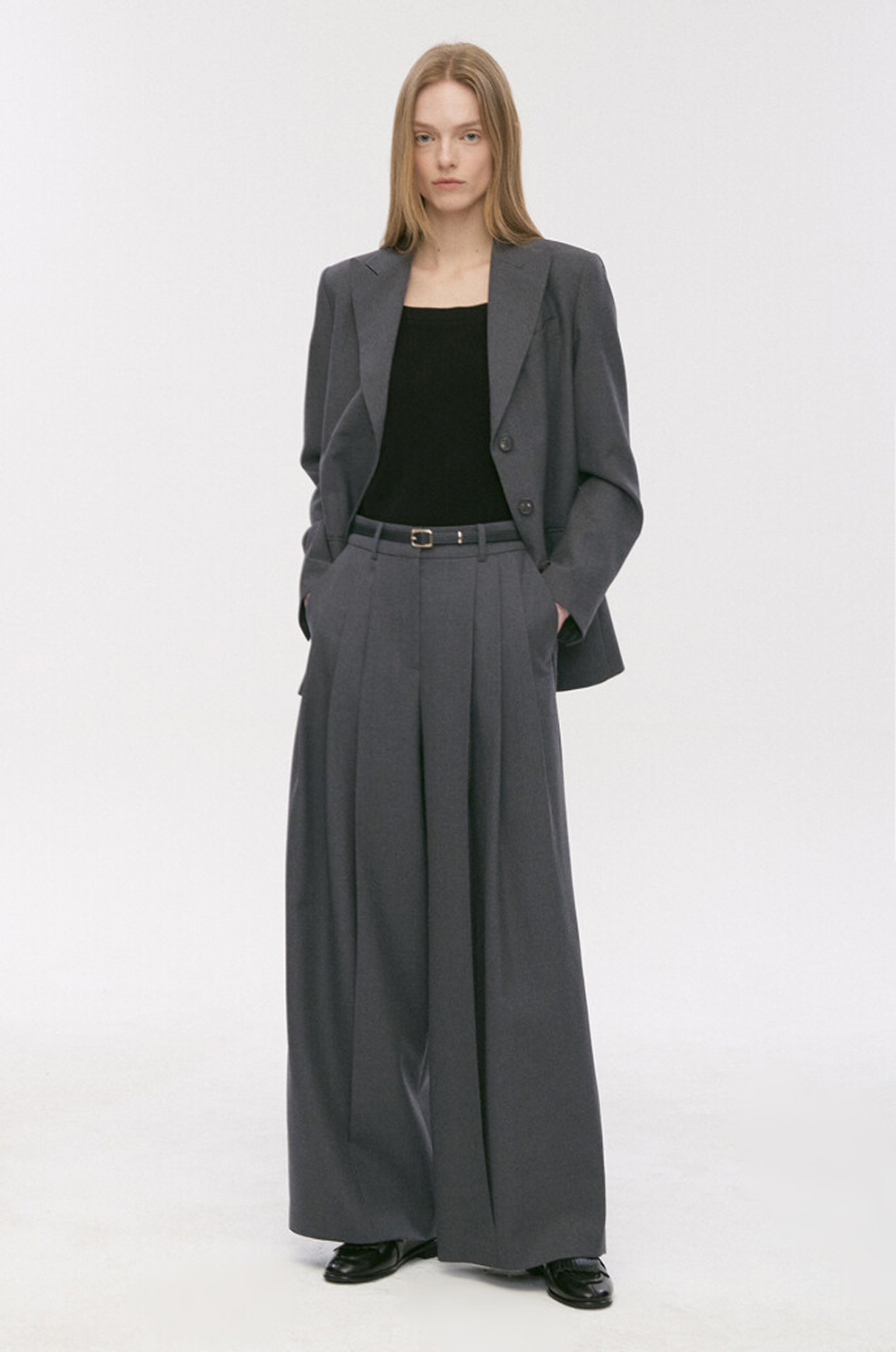 타임 울 벨티드 핀턱 와이드 팬츠