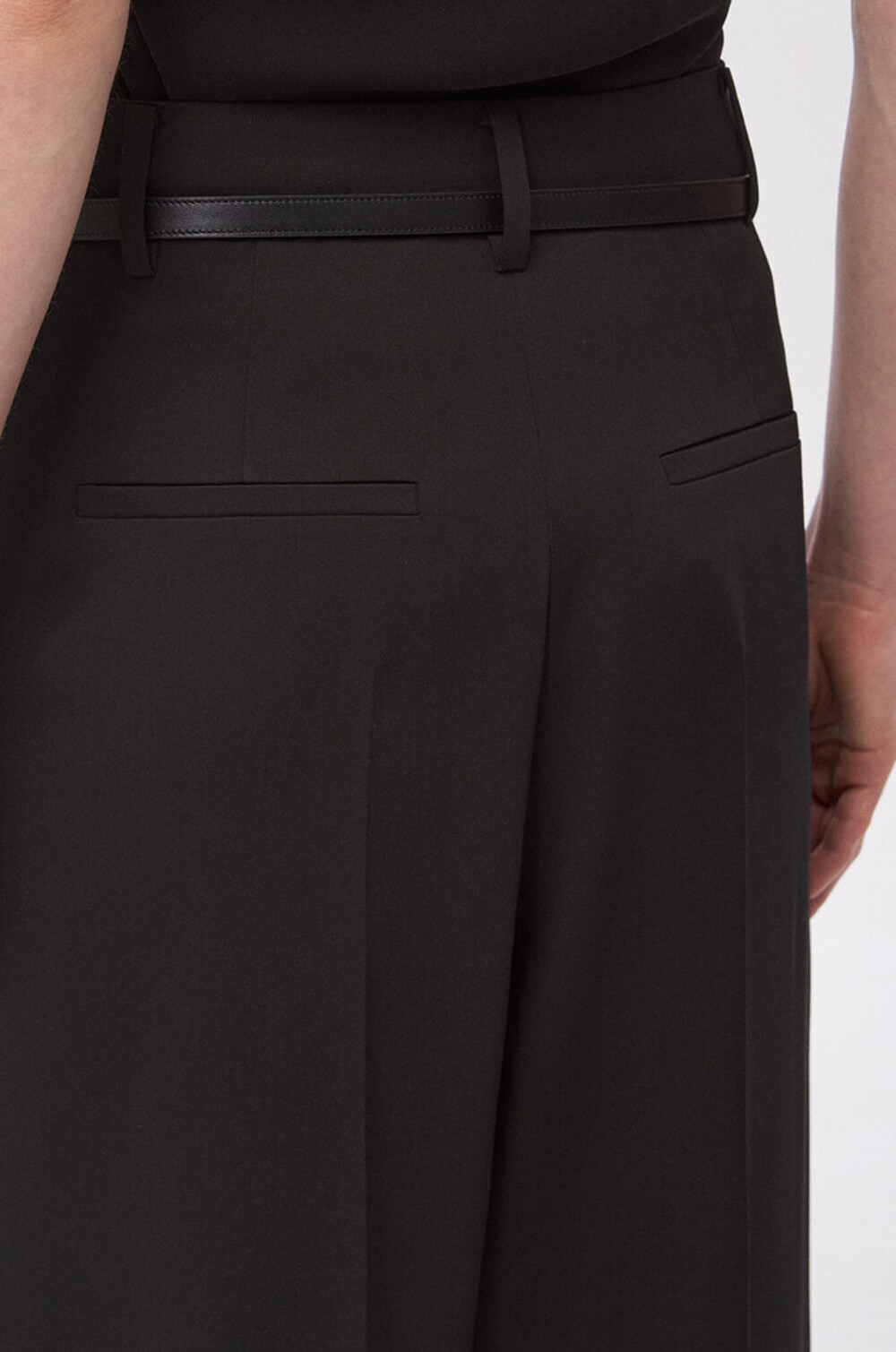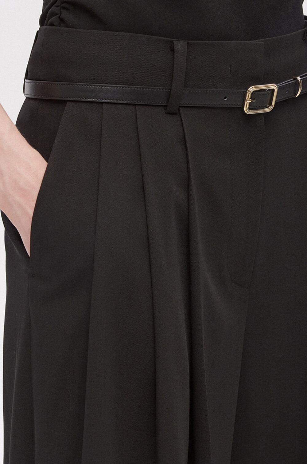 TIME. Wool Belted Pin Tuck Wide Pants