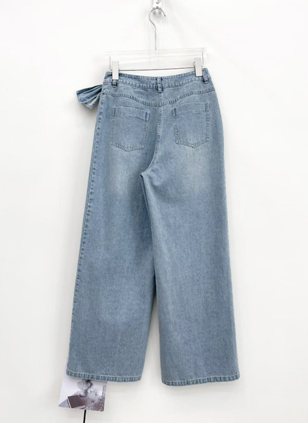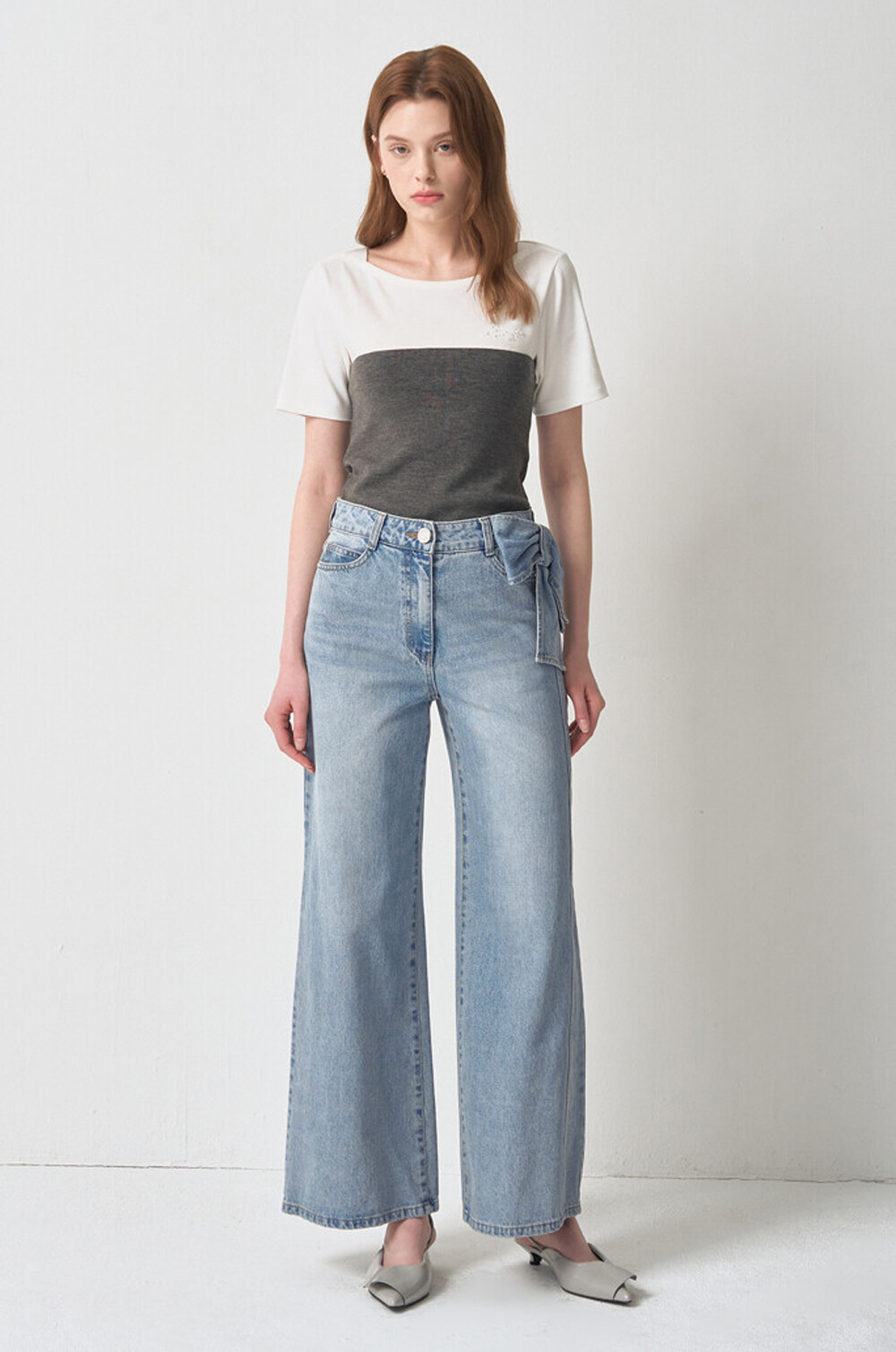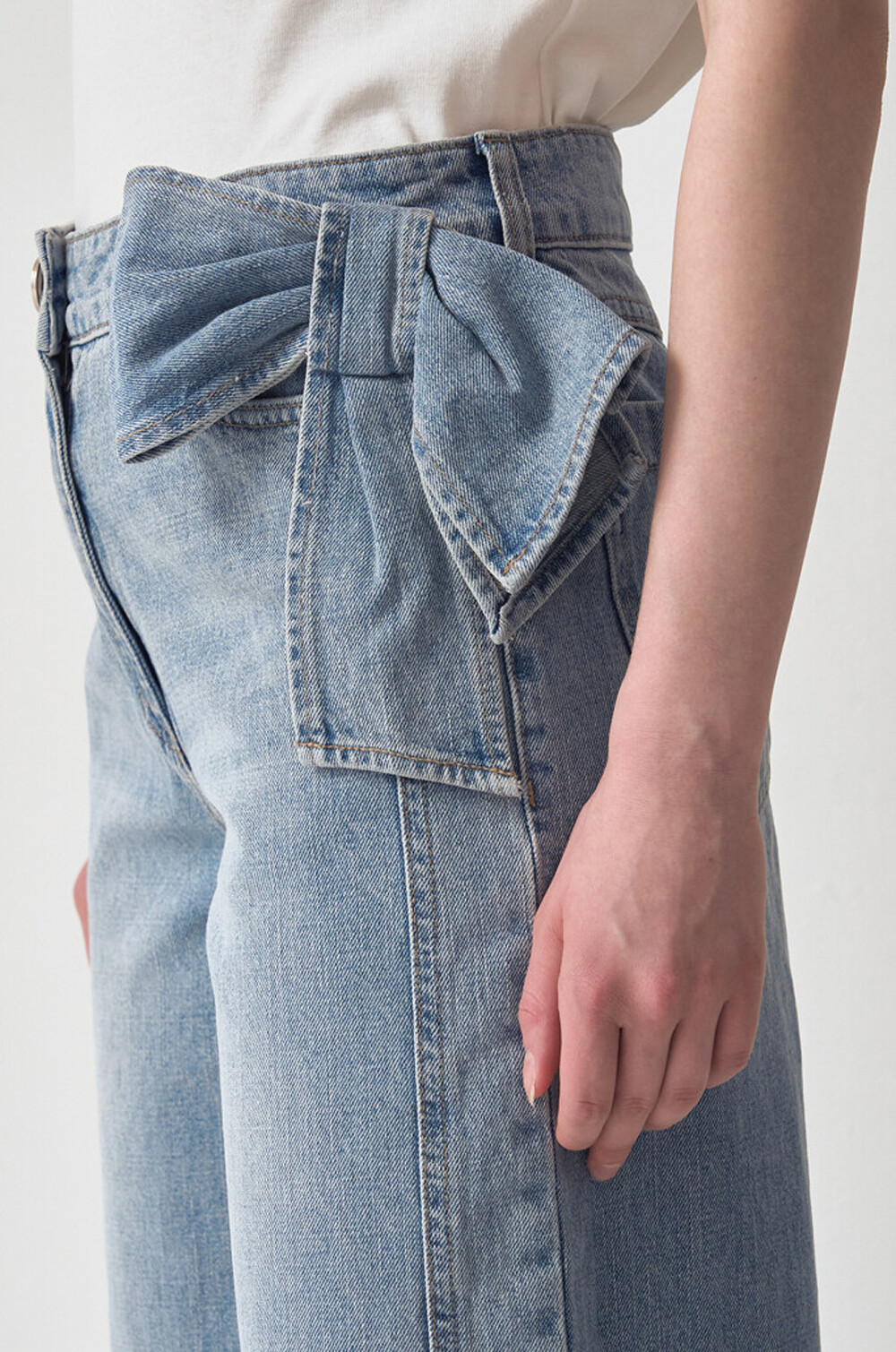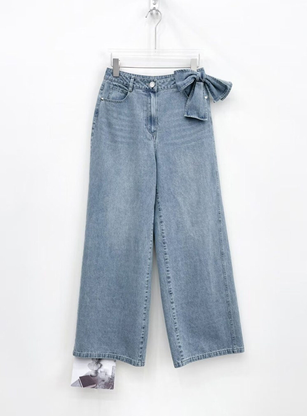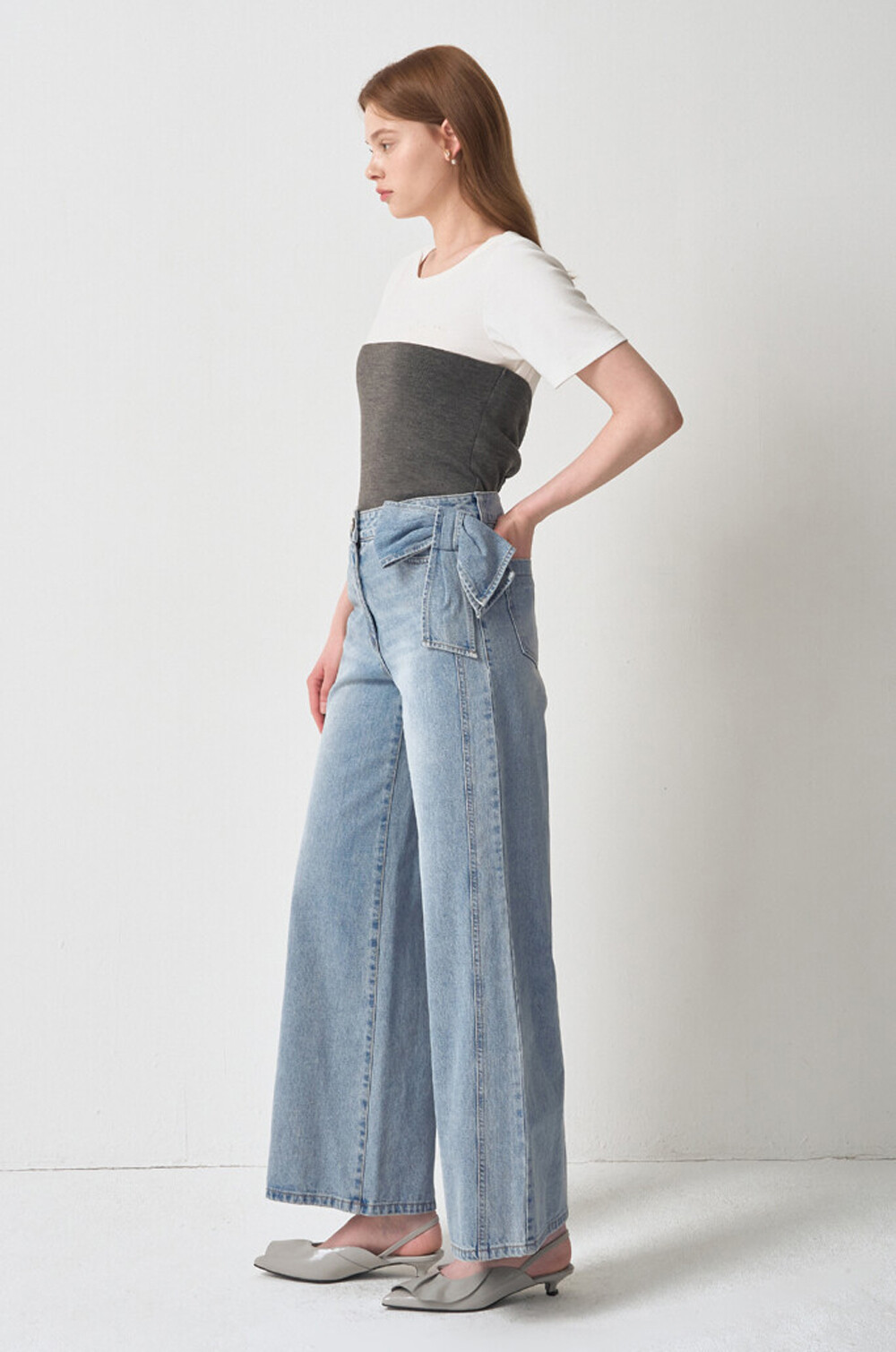 마인 보우 브로치 패널 와이드 데님 팬츠