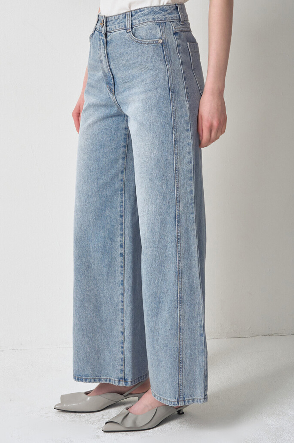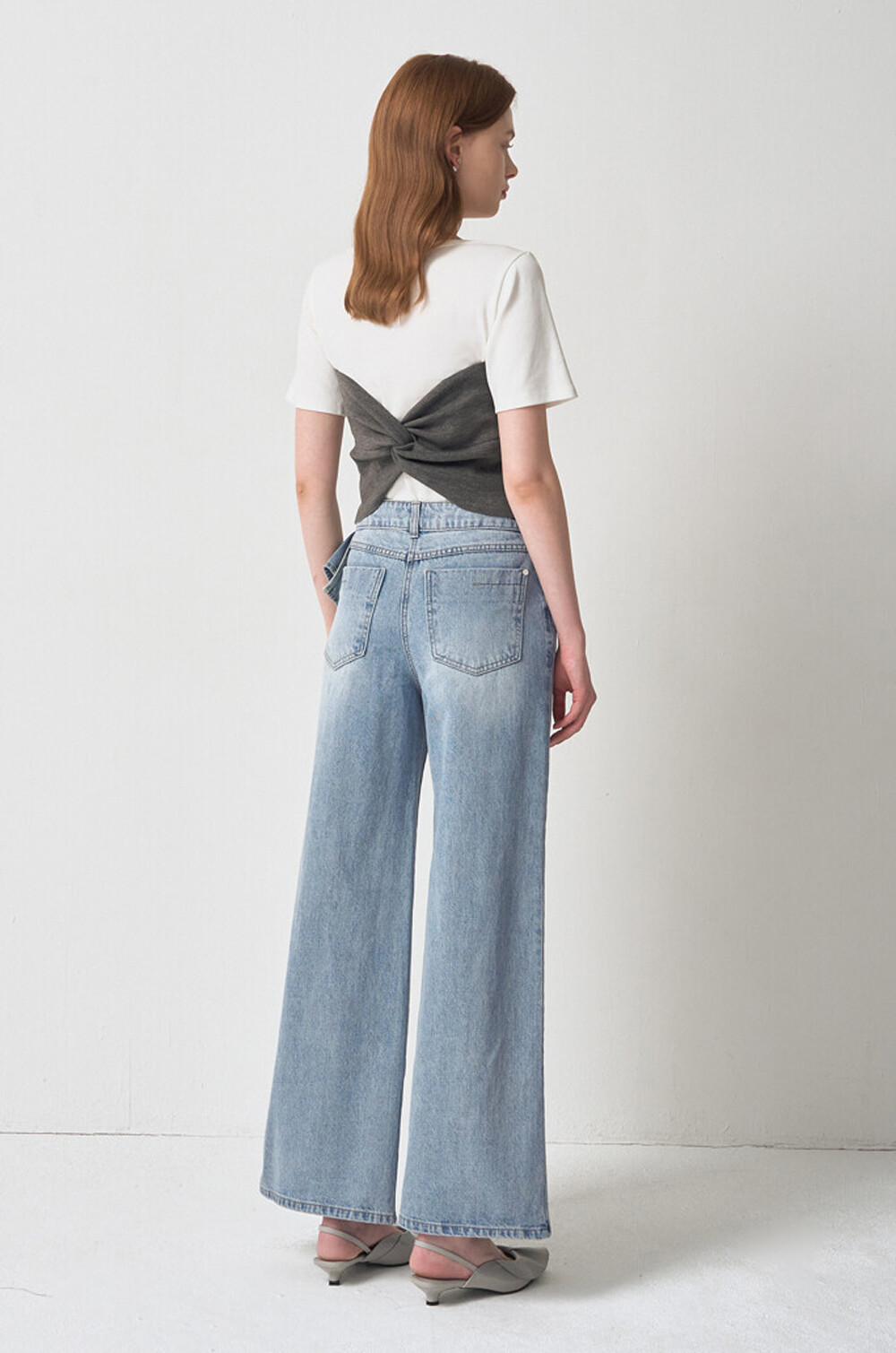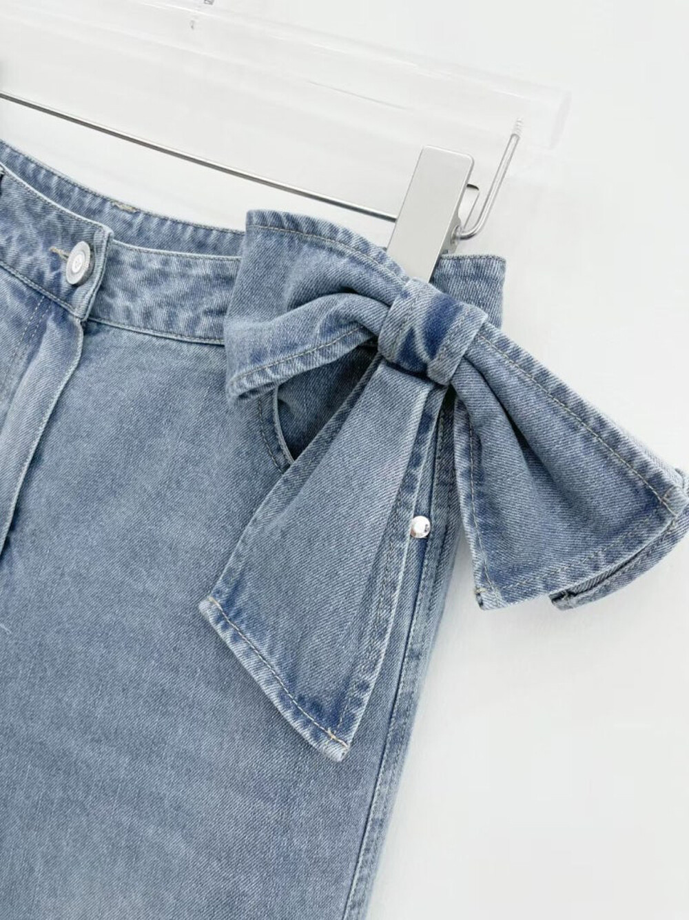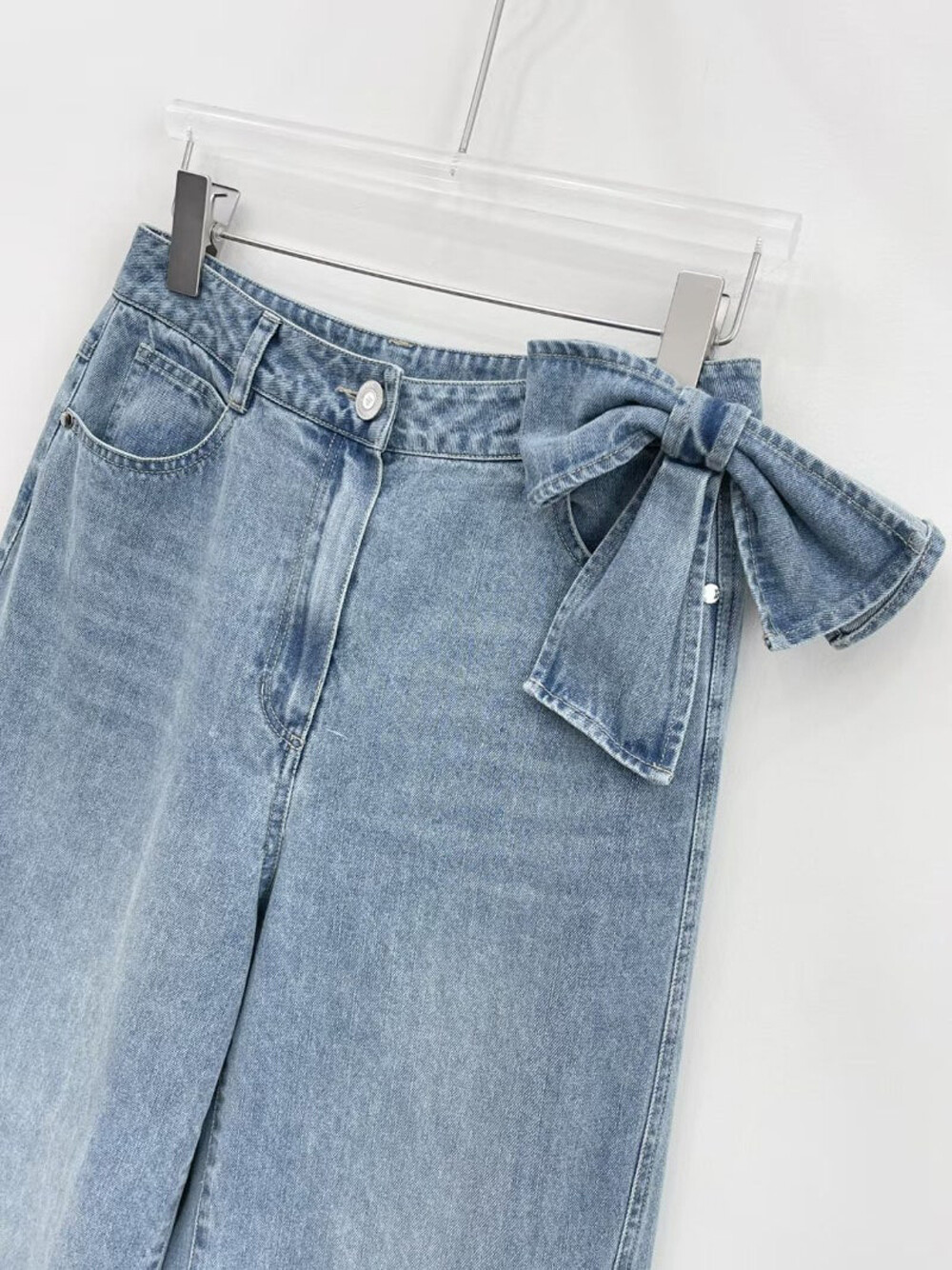 마인 보우 브로치 패널 와이드 데님 팬츠