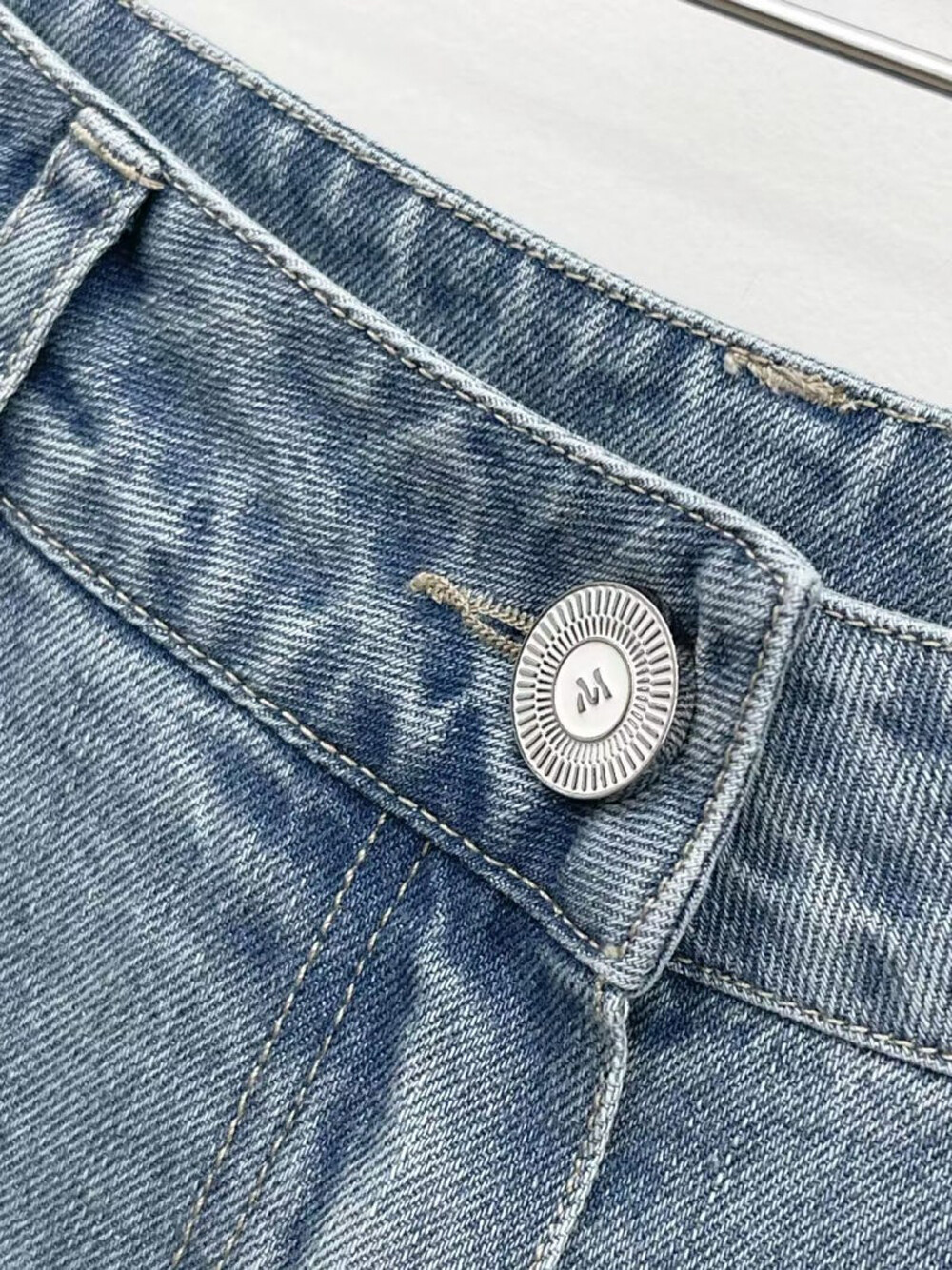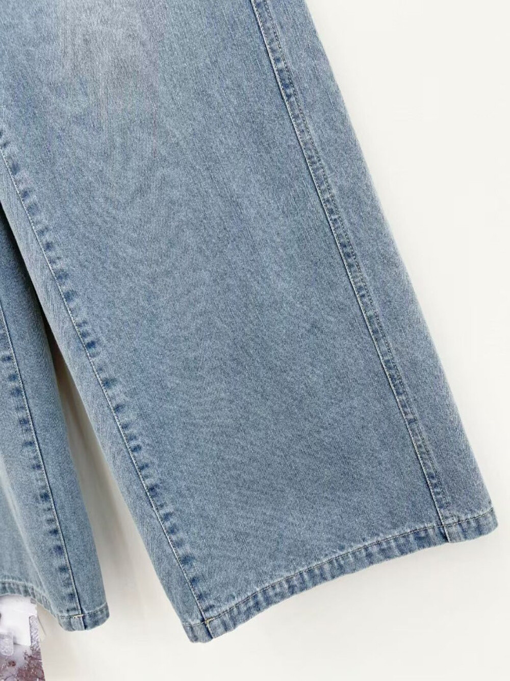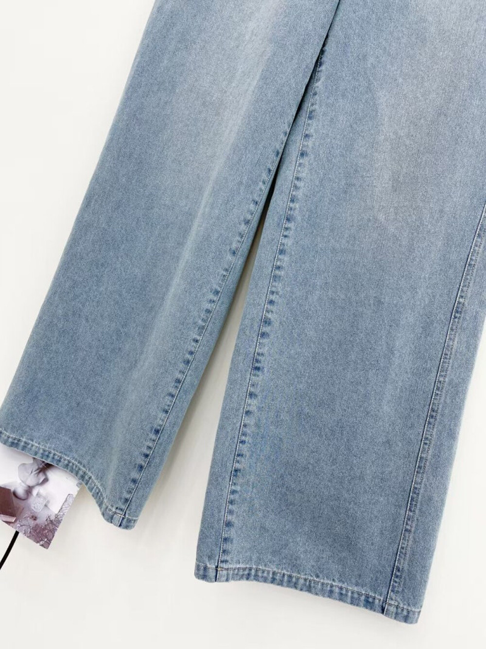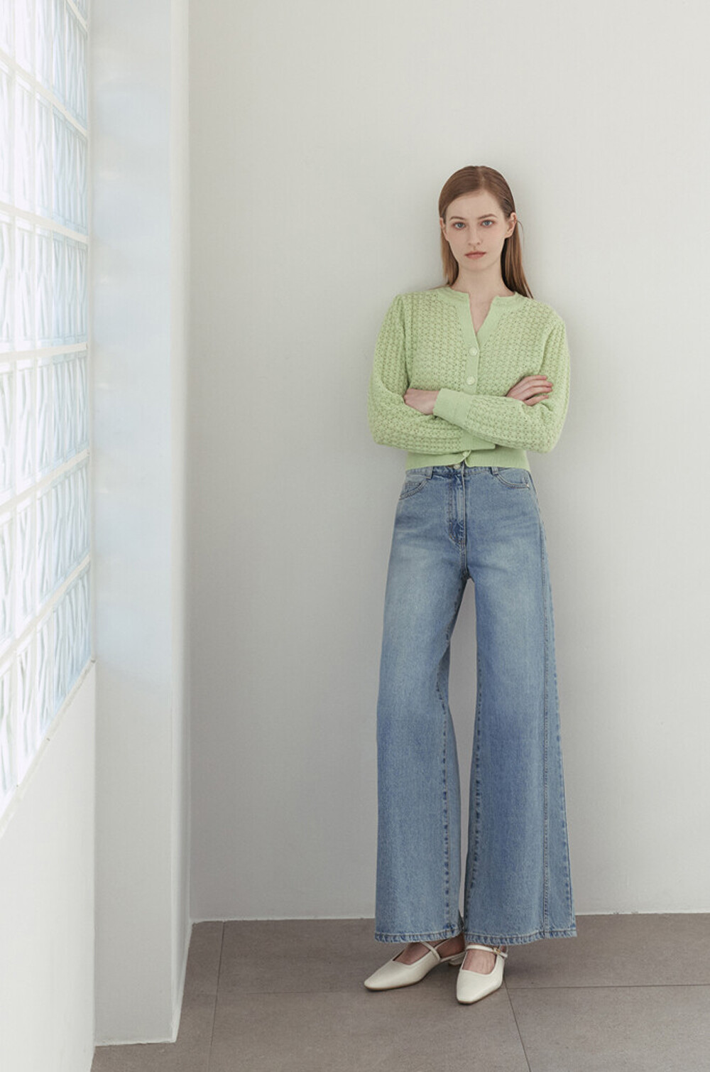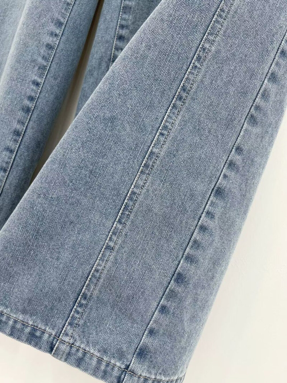 마인 보우 브로치 패널 와이드 데님 팬츠