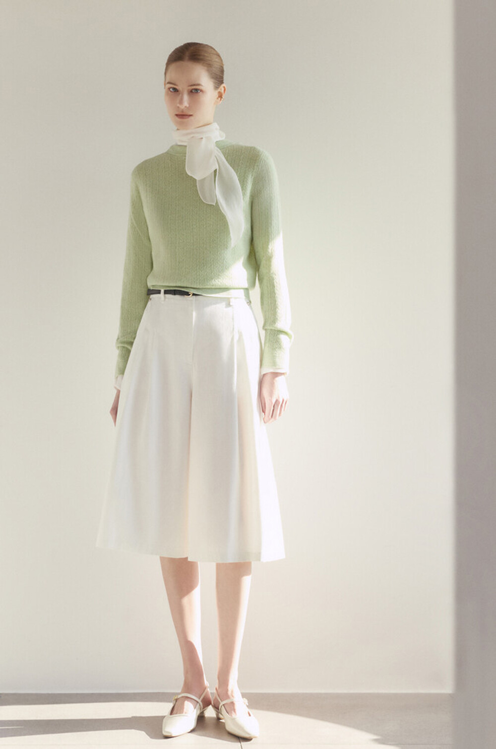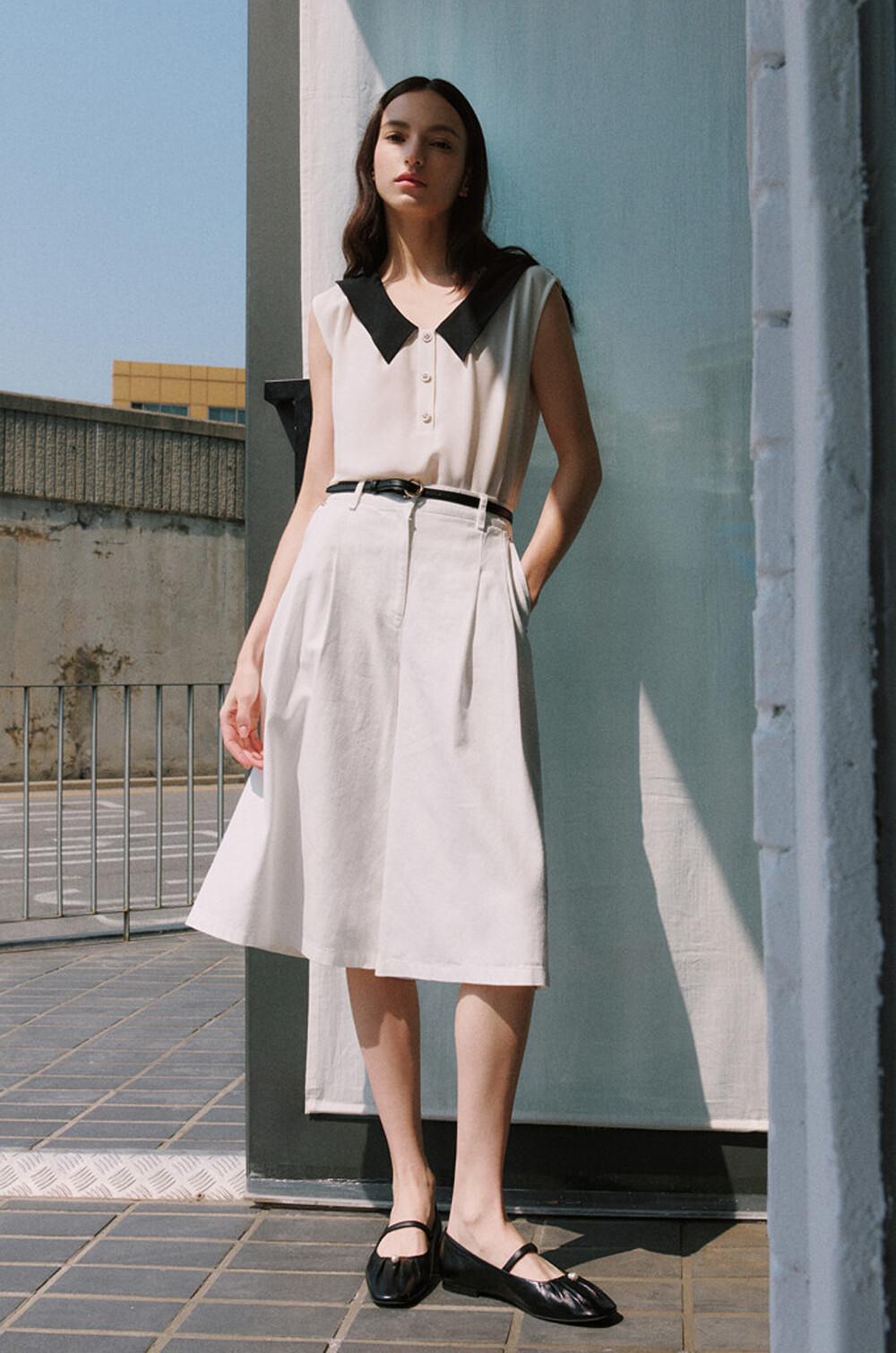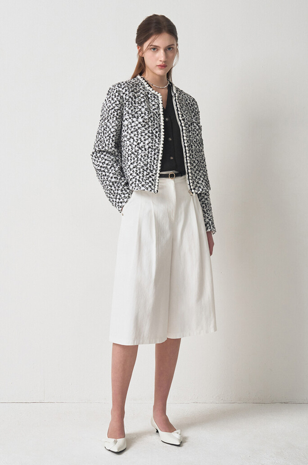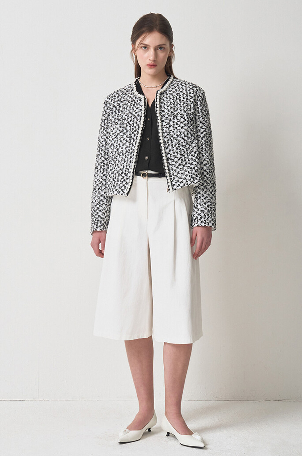 턱 디테일과 와이드 실루엣이 돋보이며,