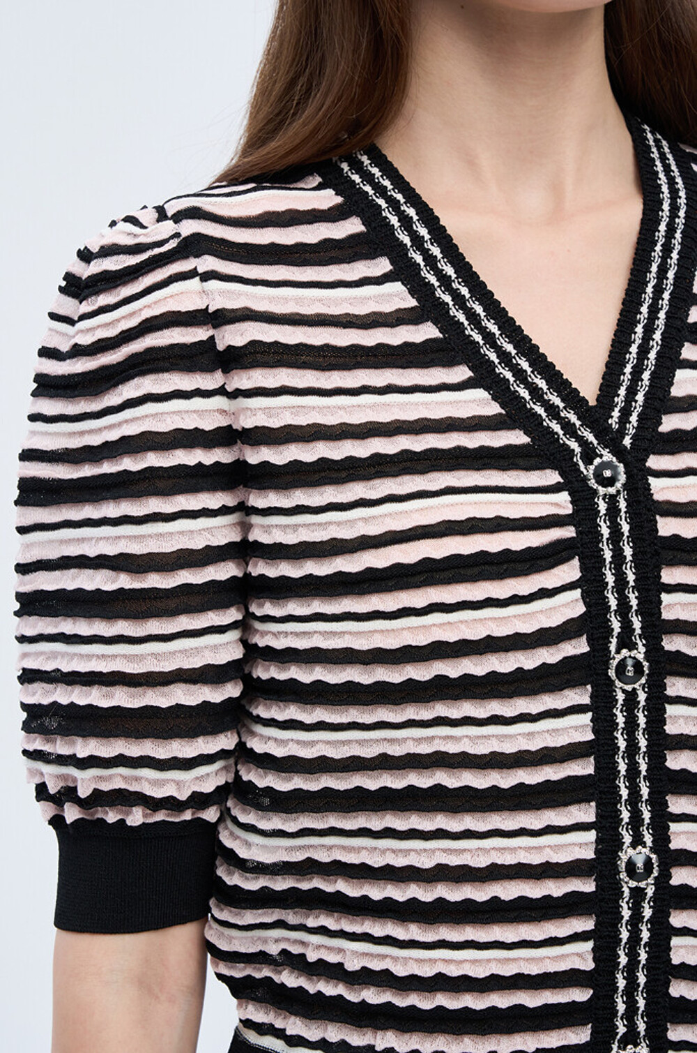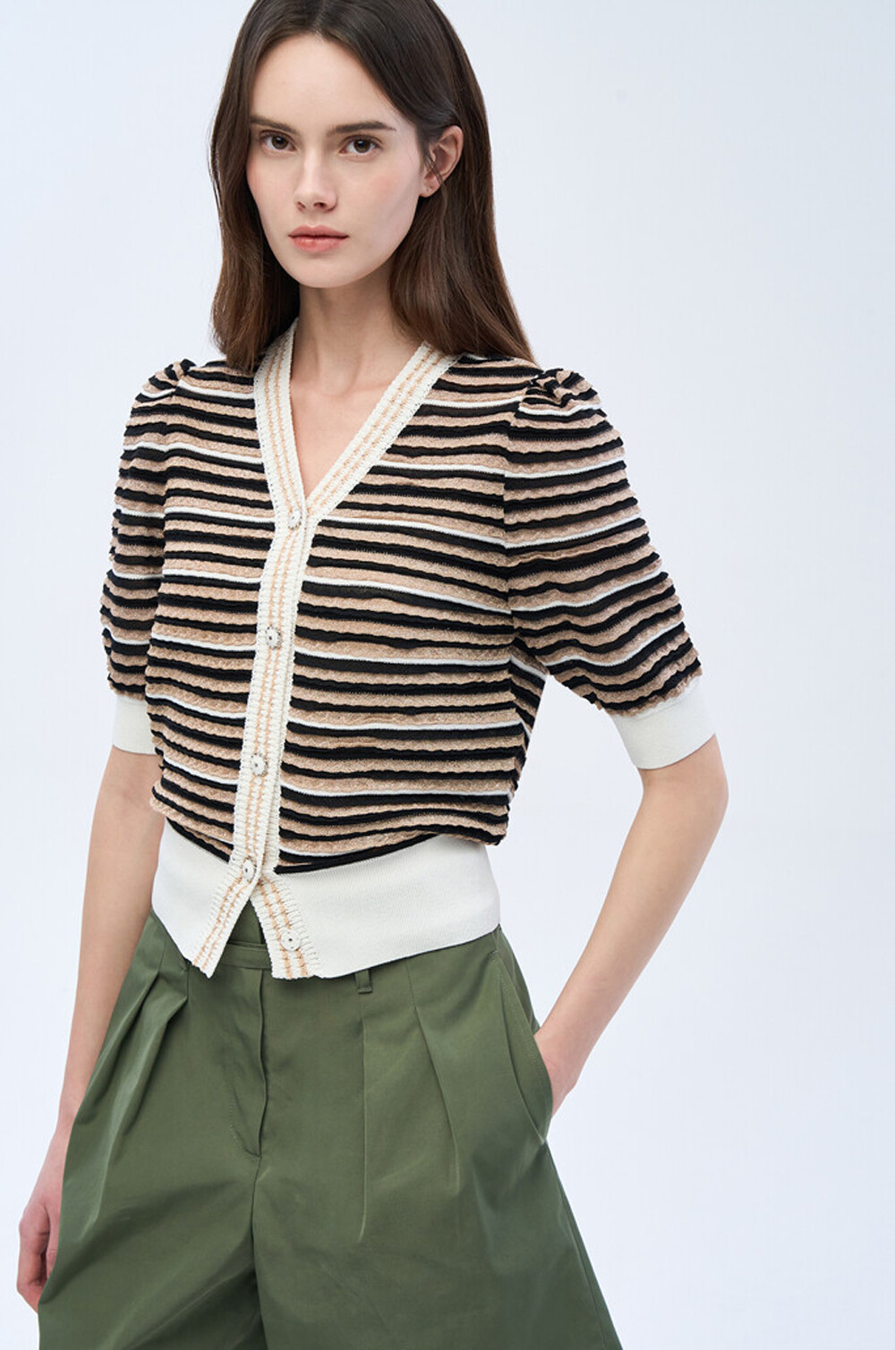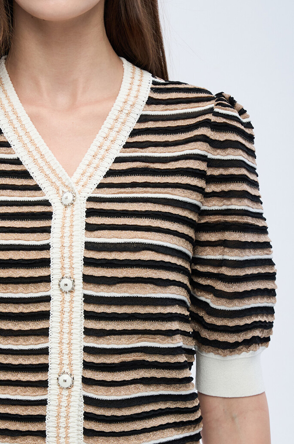 오브제 스트라이프 브이넥 니트 가디건