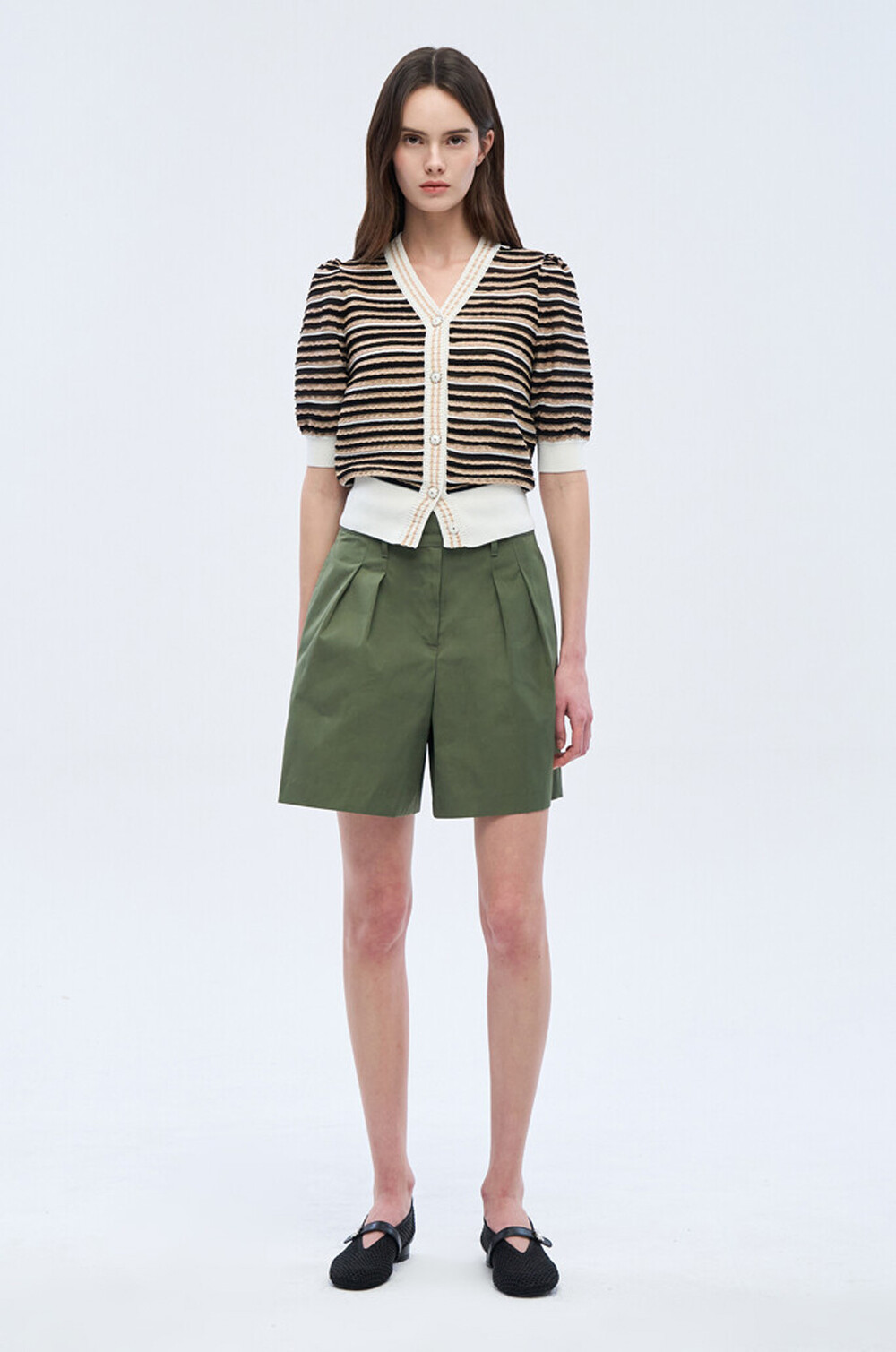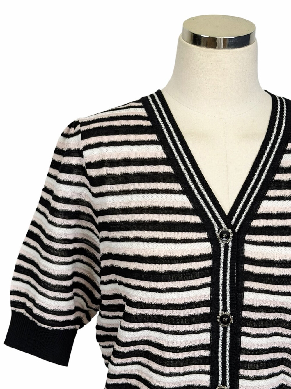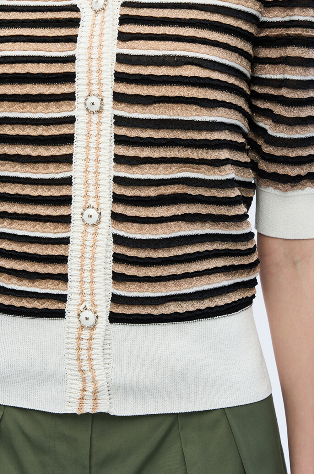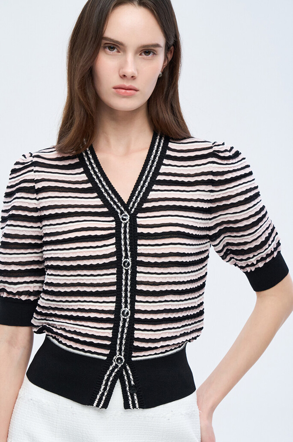 오브제 스트라이프 브이넥 니트 가디건