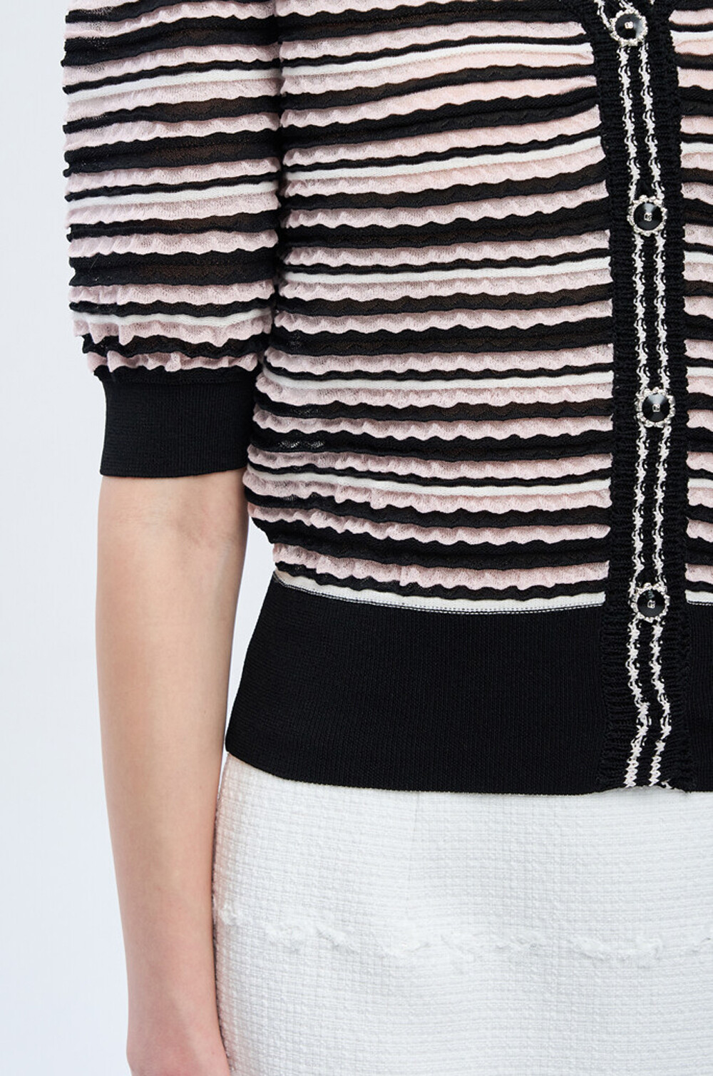 밑단과 소맷단은 리브 조직으로 마감해