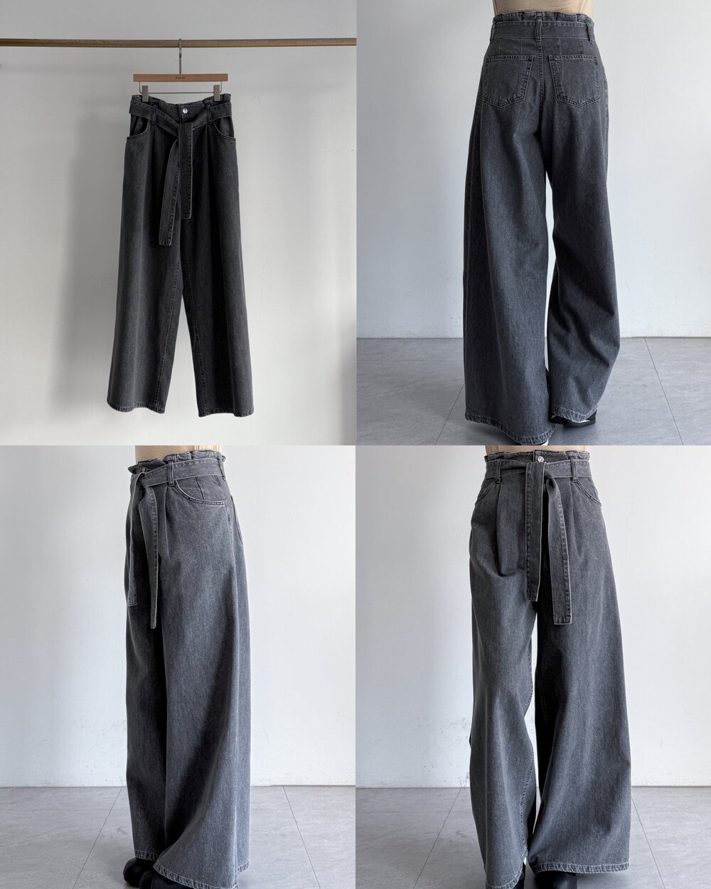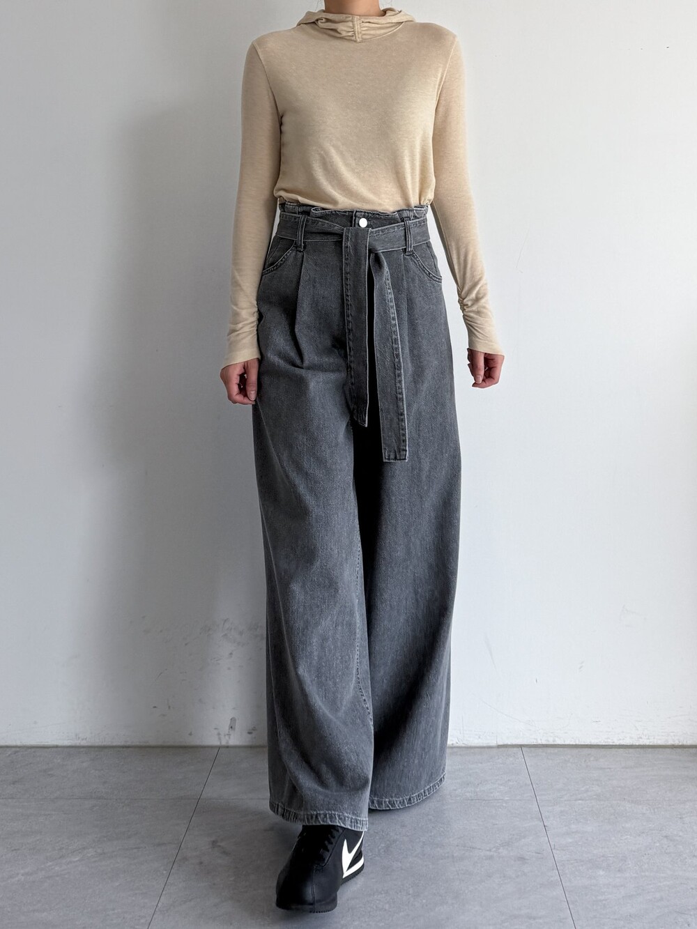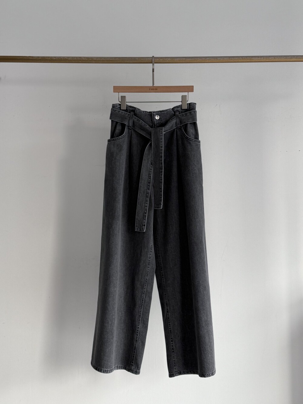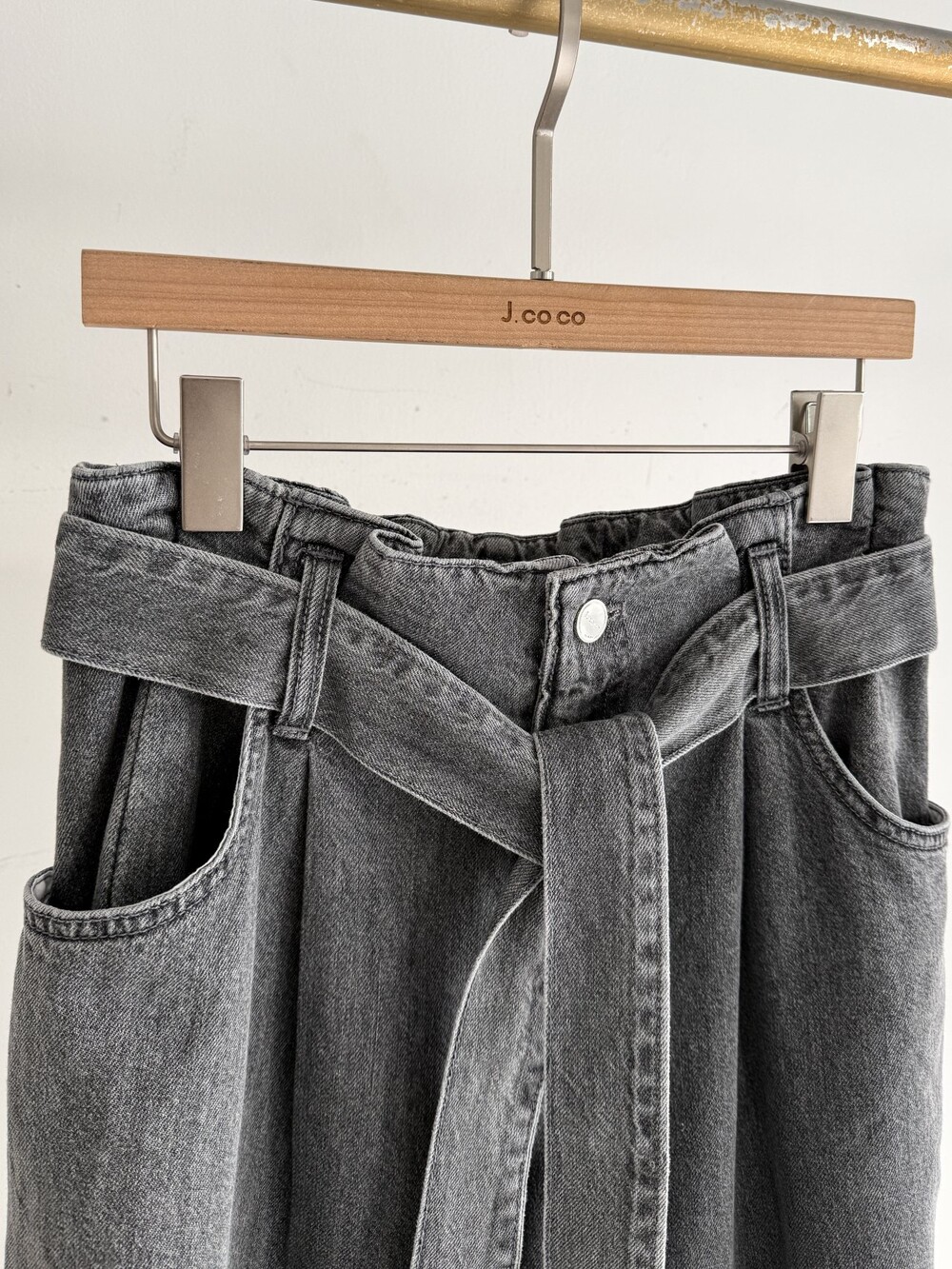 제이코코. 벨티드 원턱 와이드 데님 팬츠