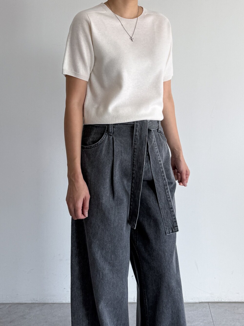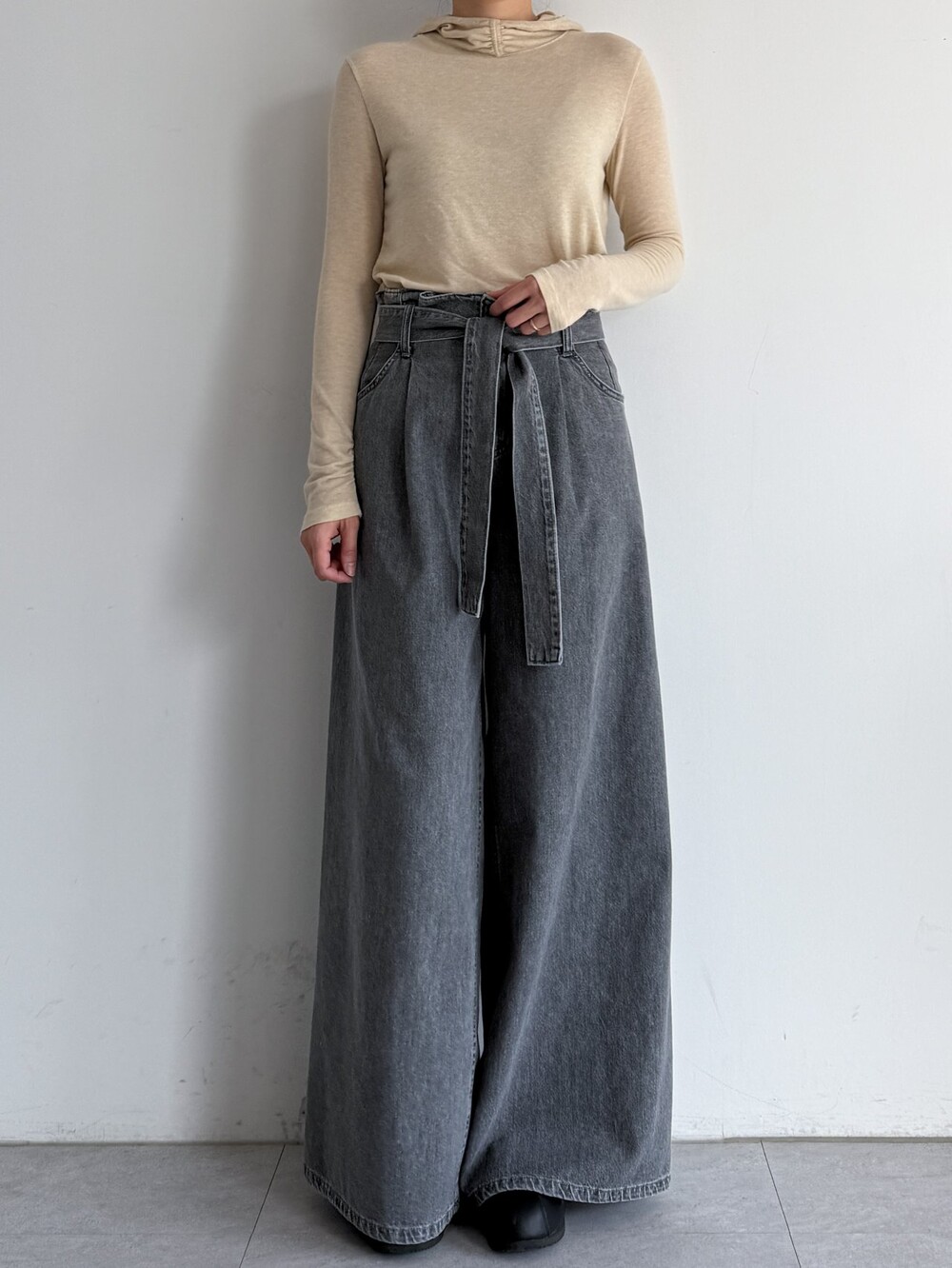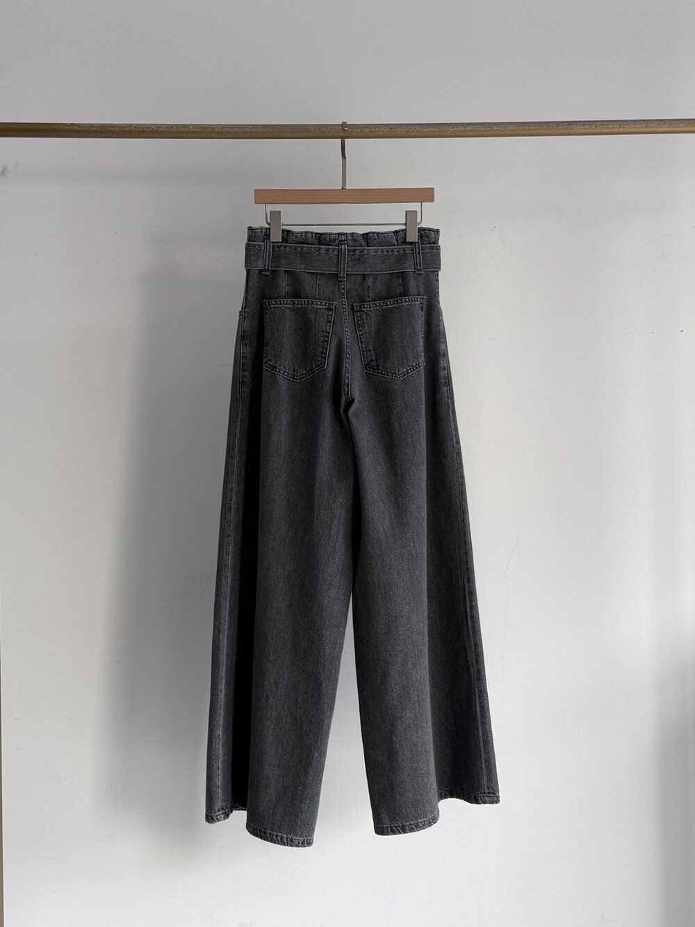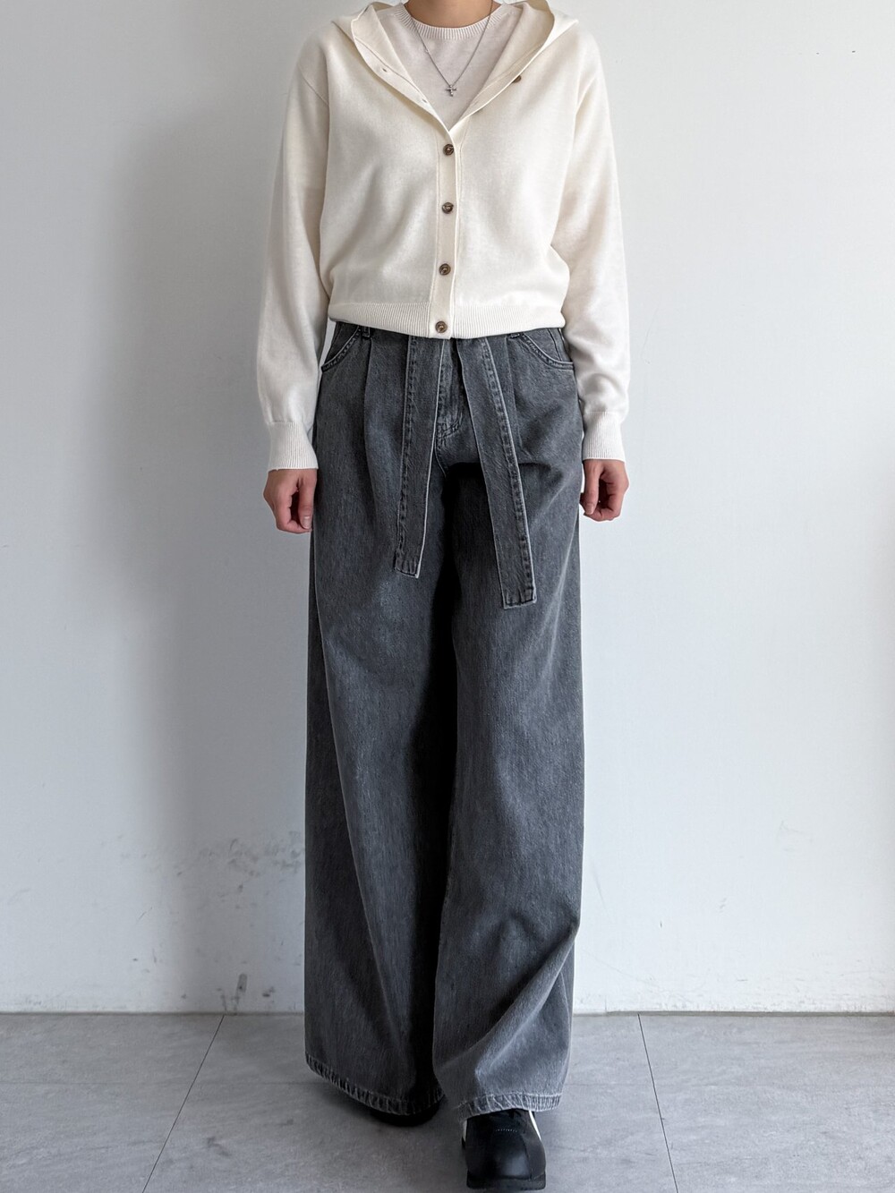 제이코코. 벨티드 원턱 와이드 데님 팬츠