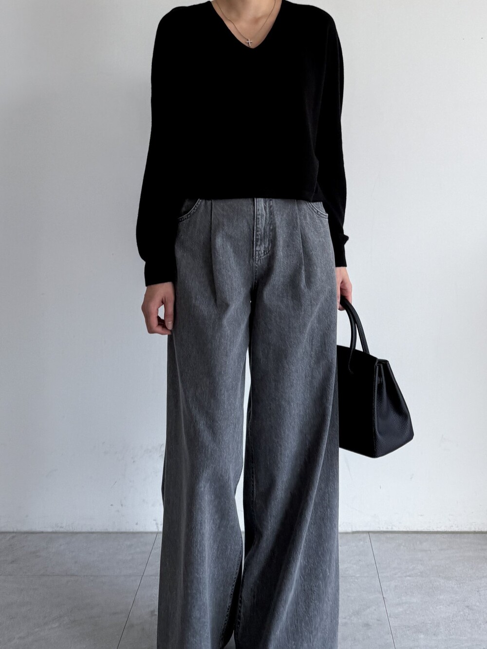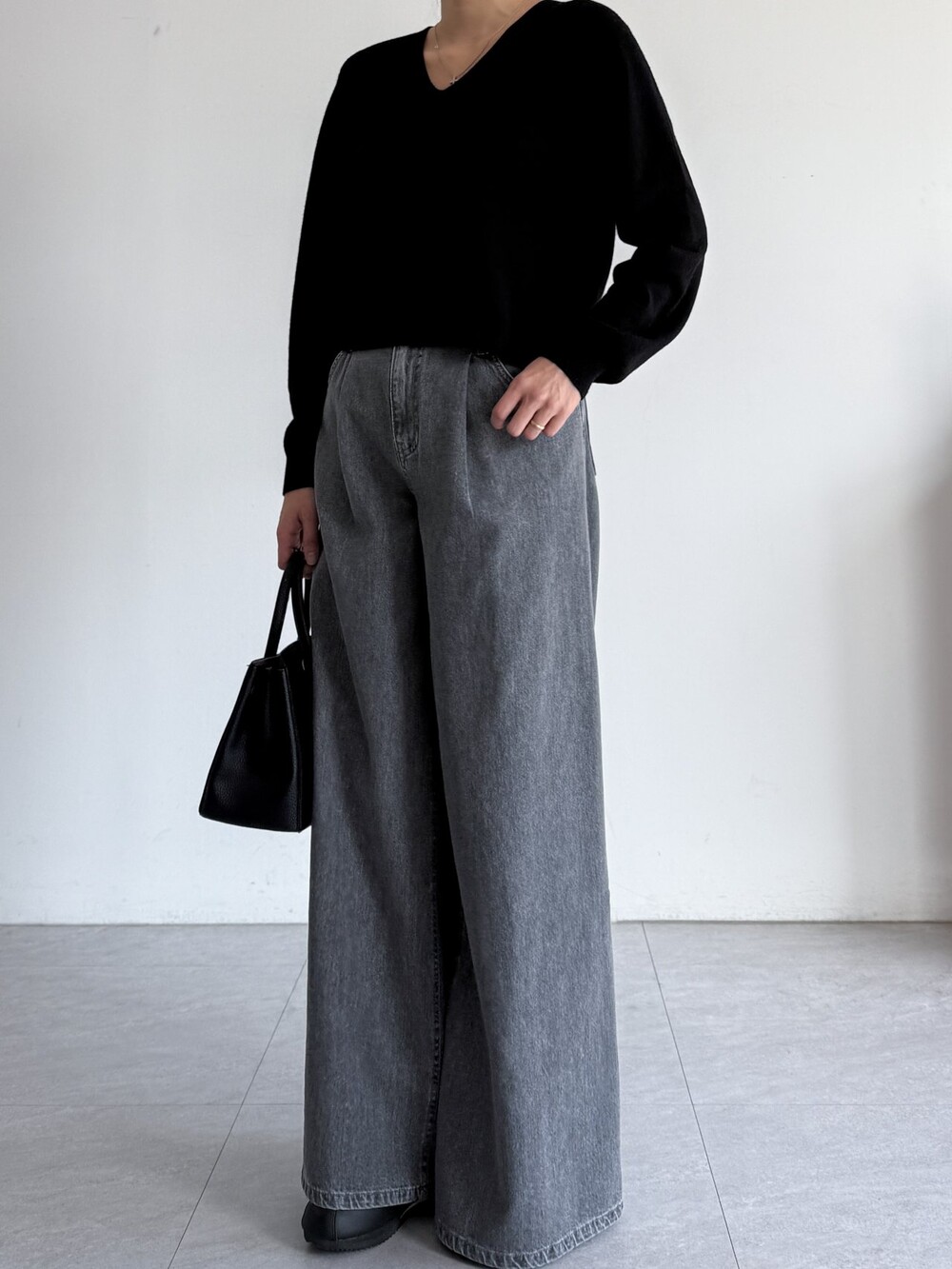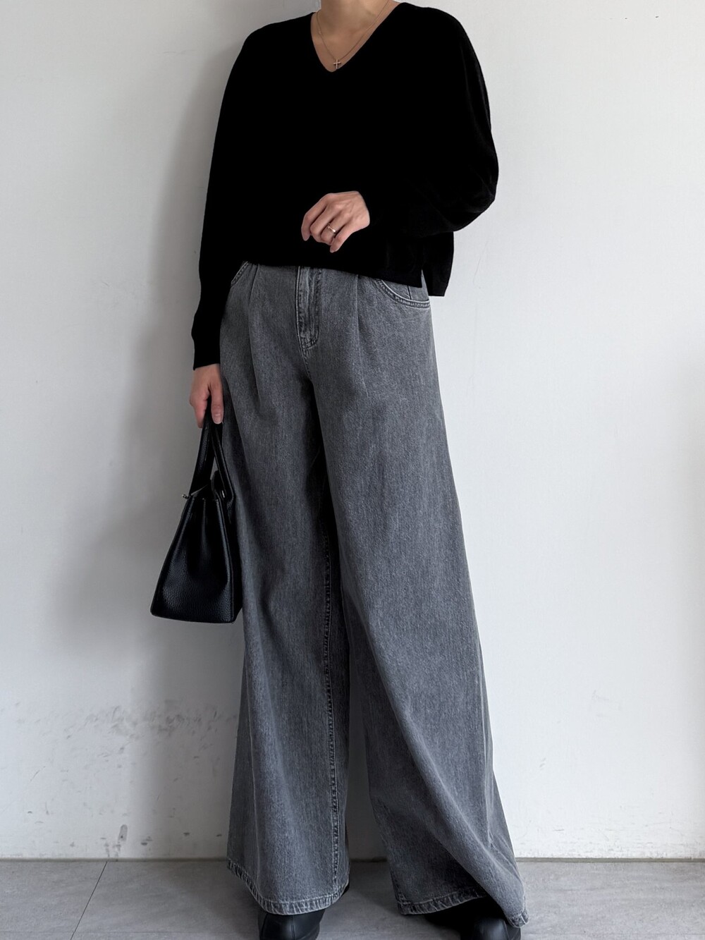 탄탄한 100% 코튼 데님 와이드 팬츠로,