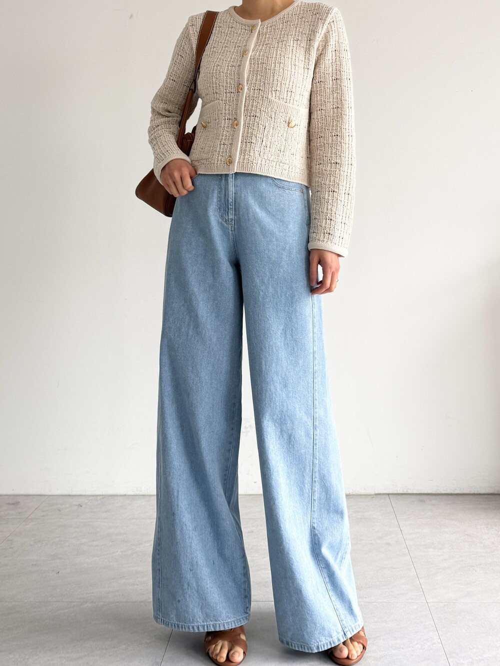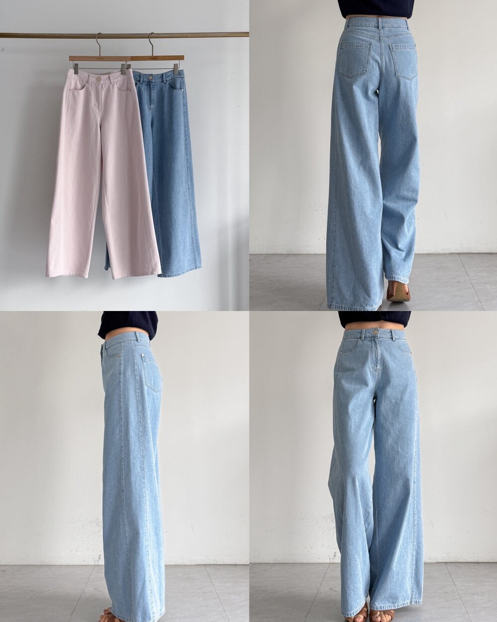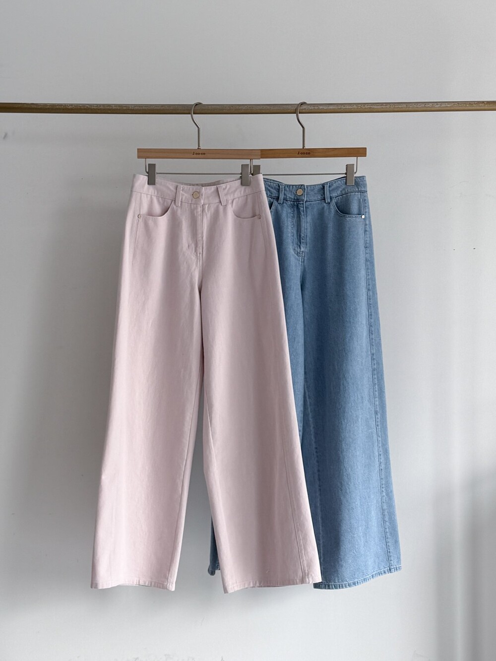 제이코코. 라이트 데님 패널 와이드 팬츠
