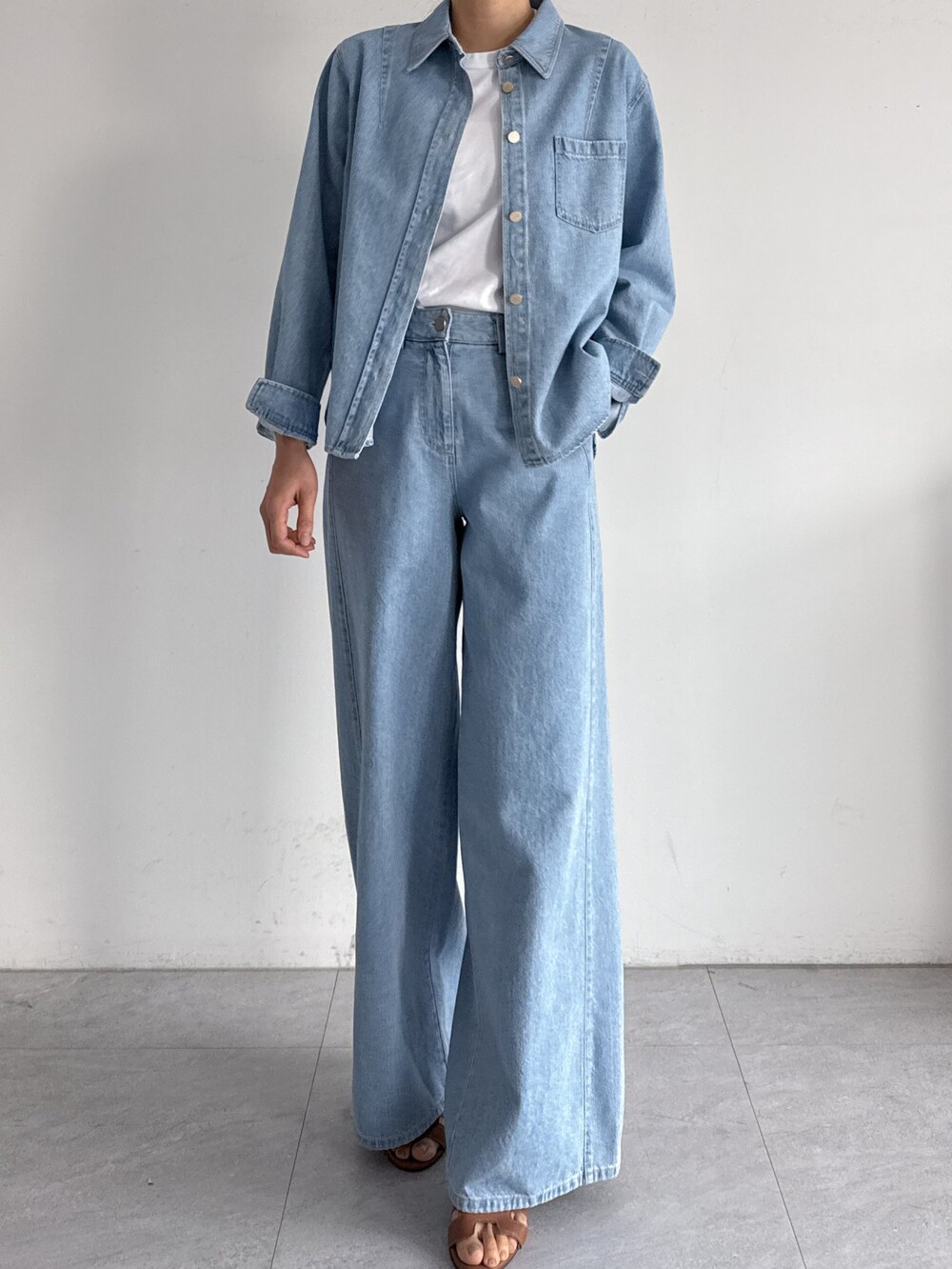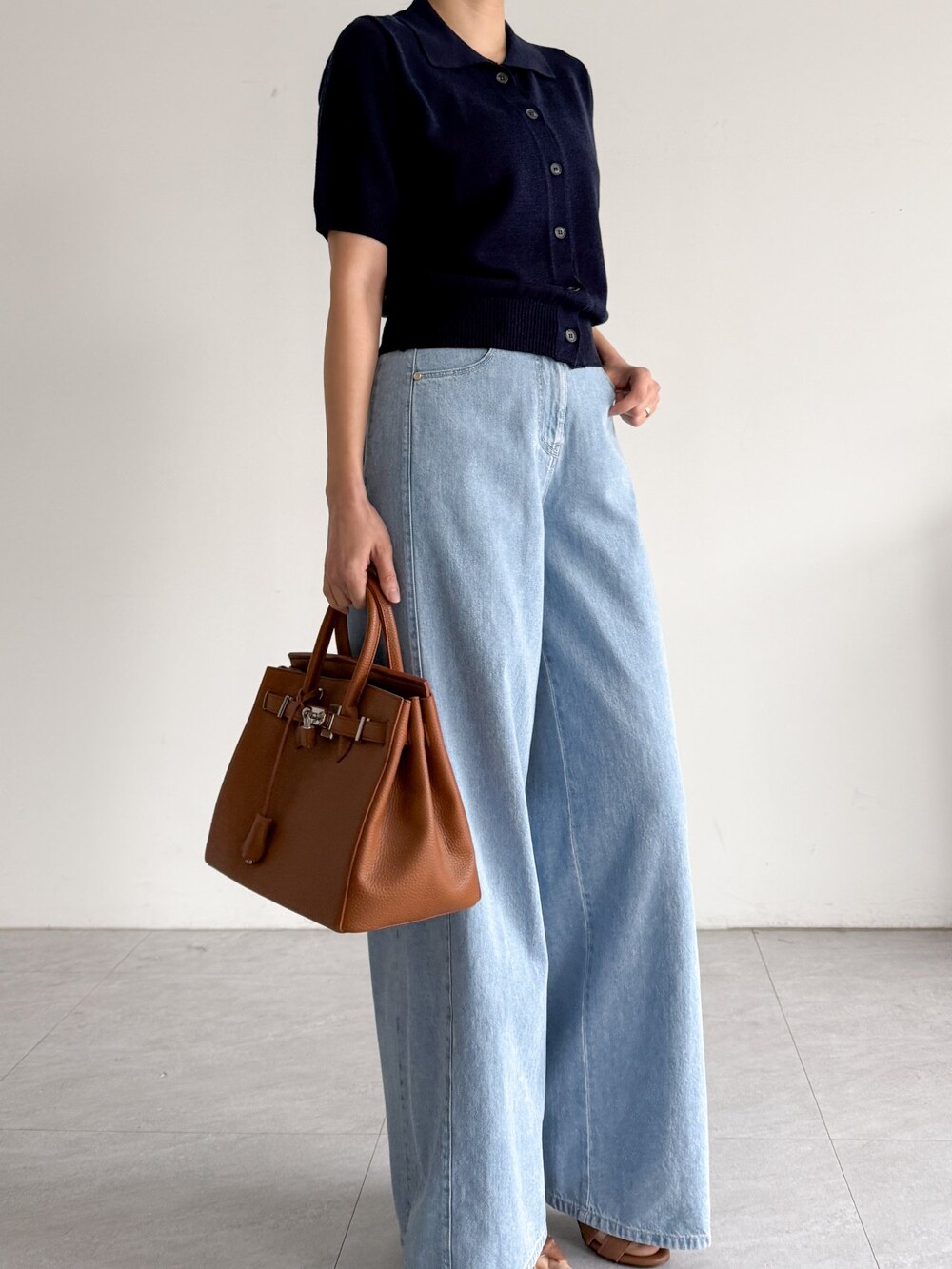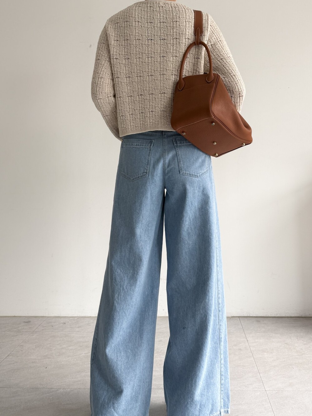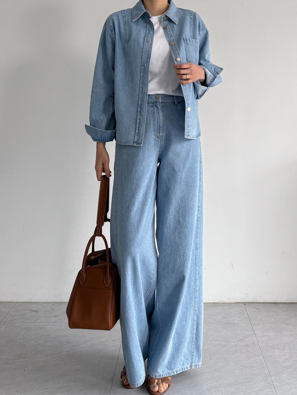 제이코코. 라이트 데님 패널 와이드 팬츠