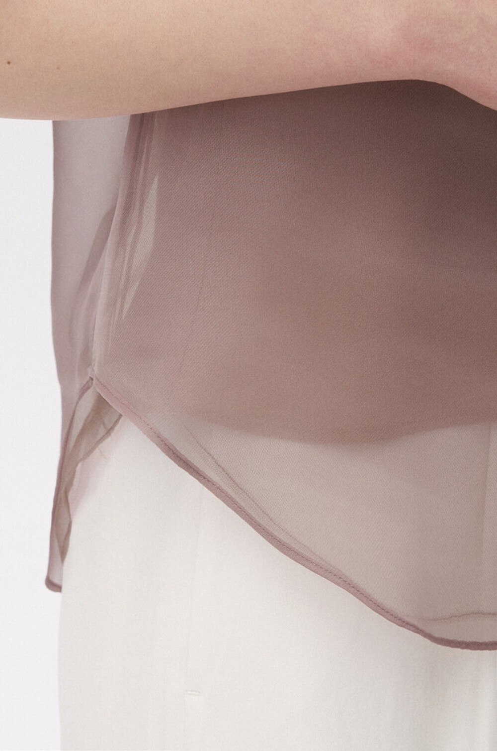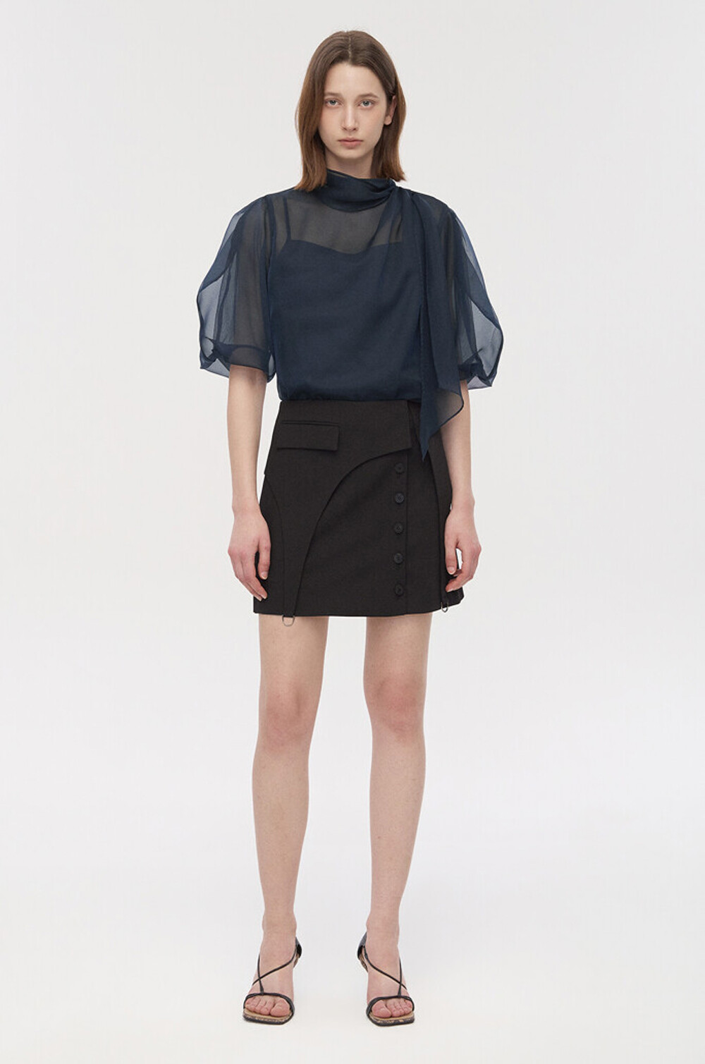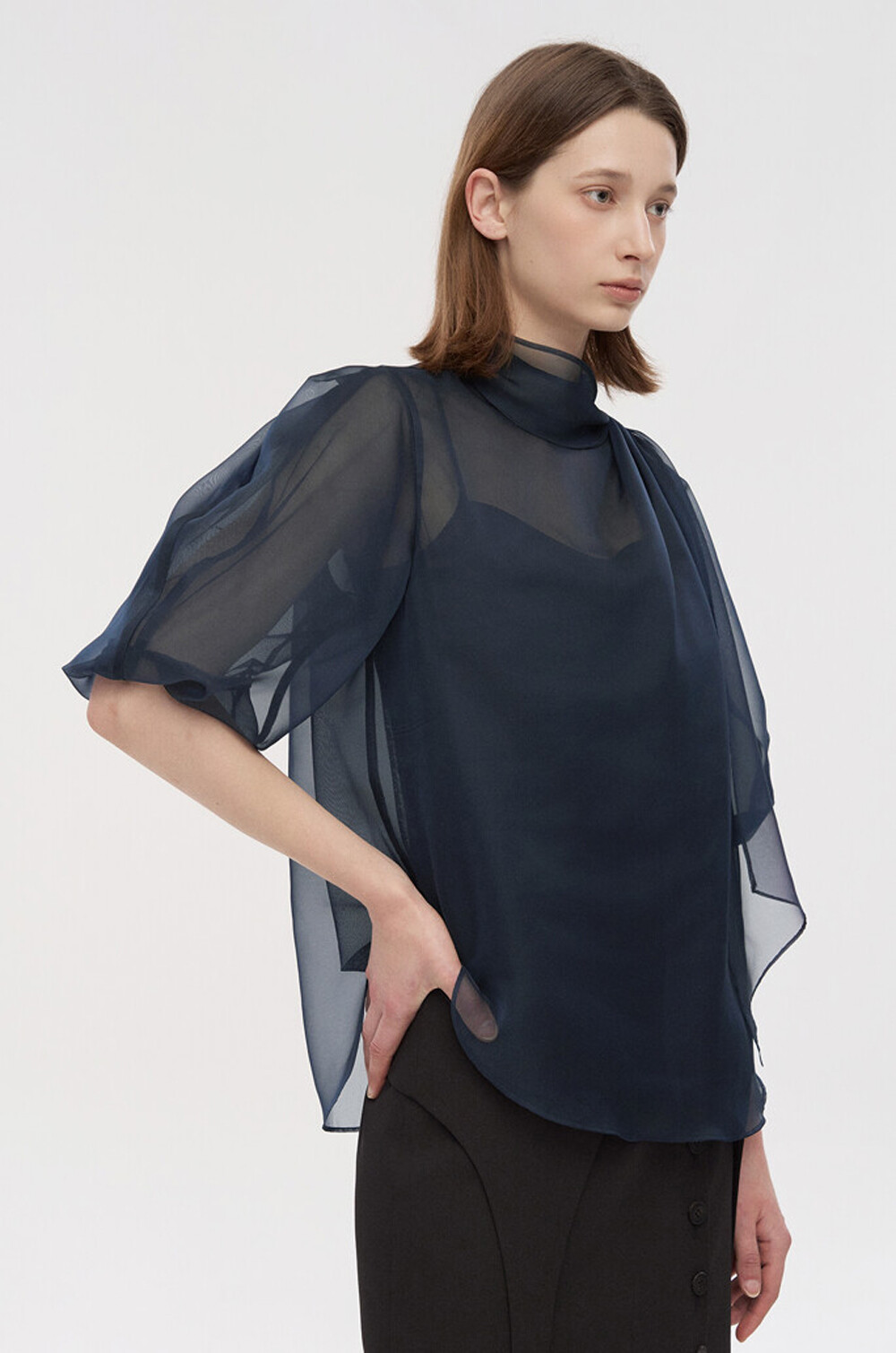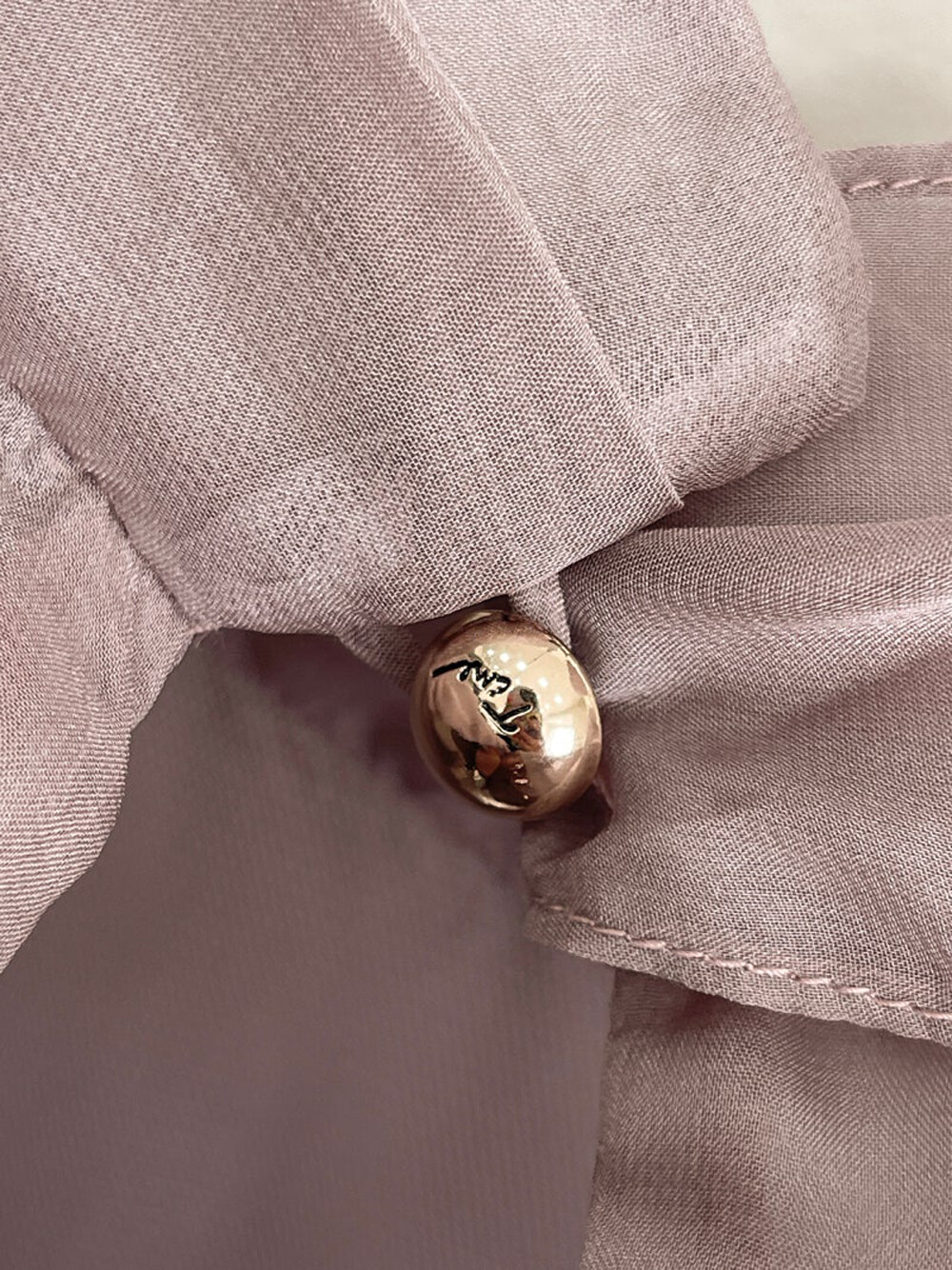 타임 오간자 튤 드레이프 스카프 넥 블라우스