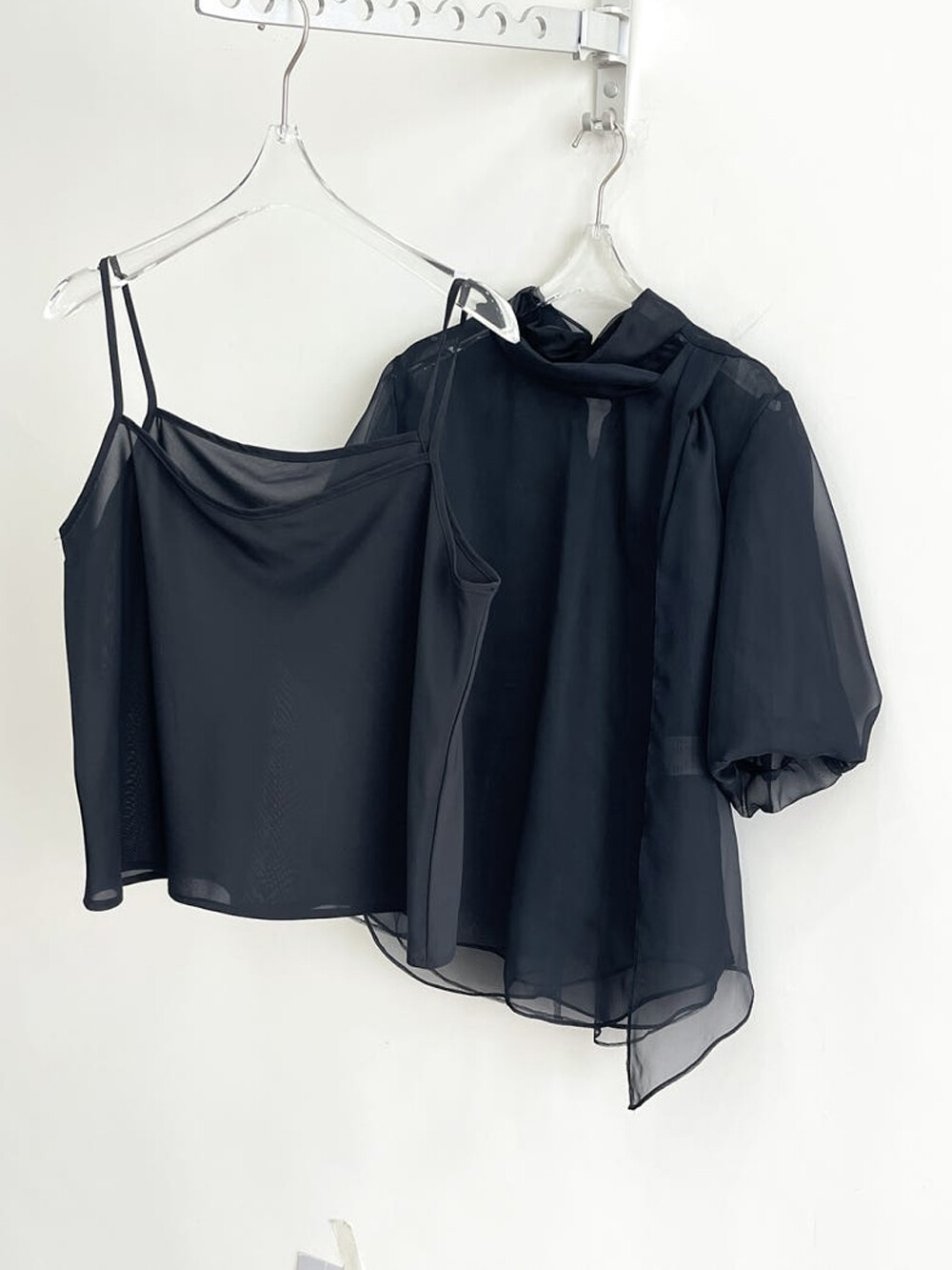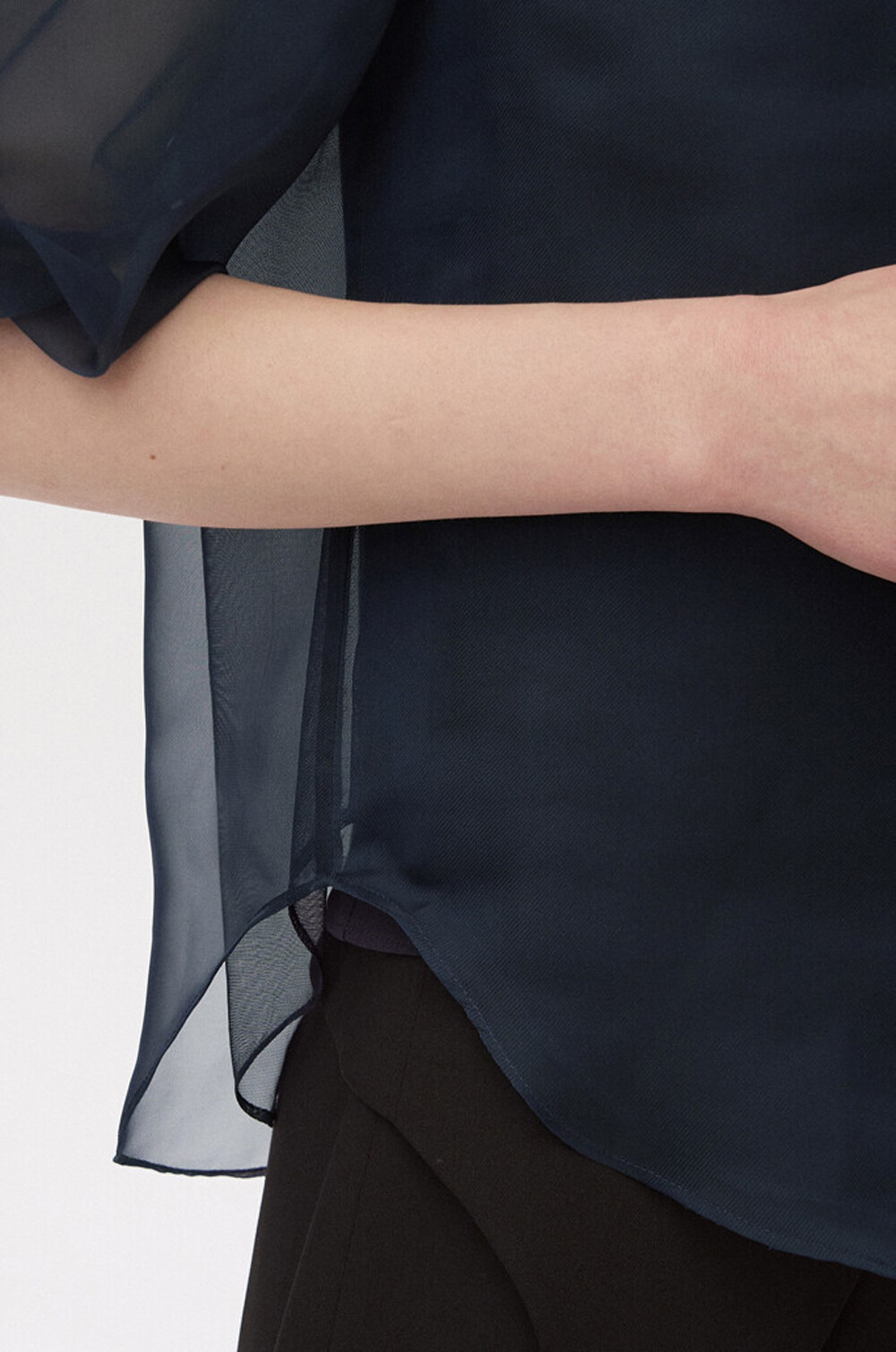 - 어깨 라인과 소맷단에 핀턱