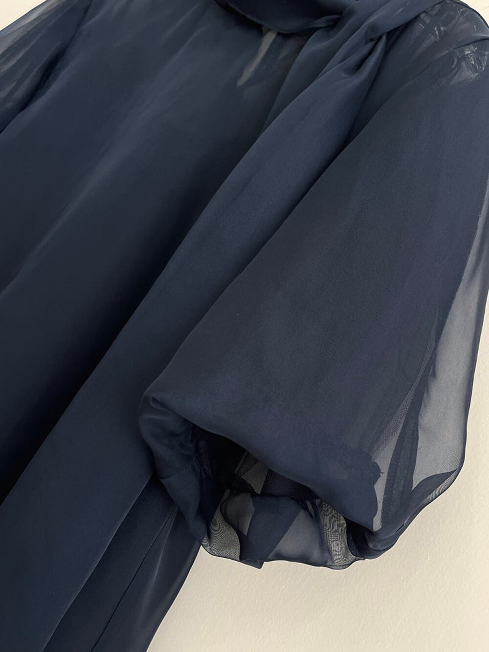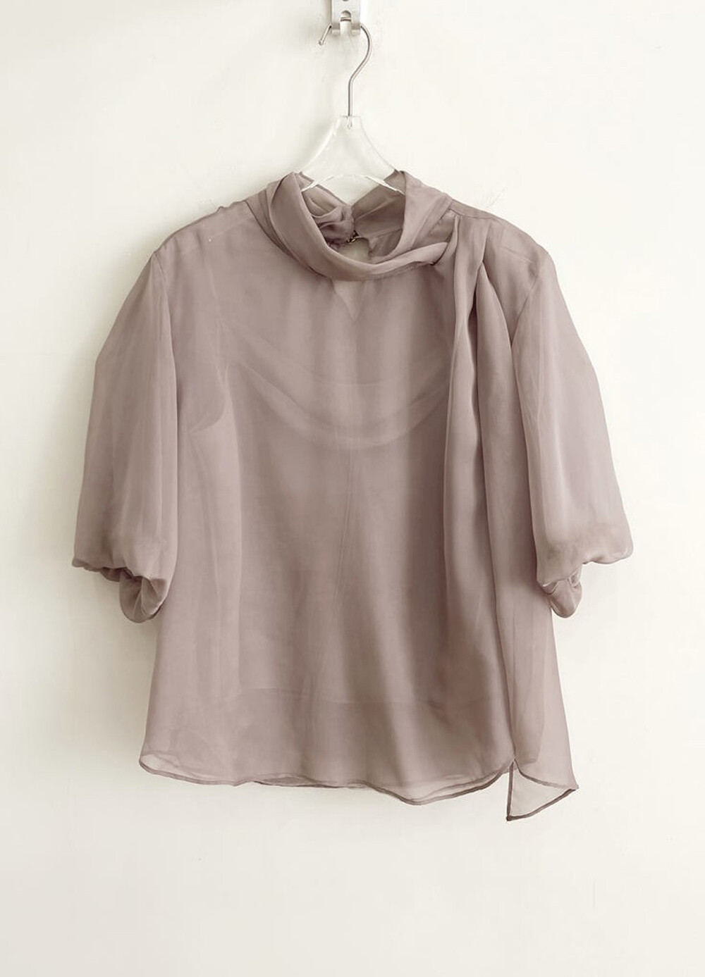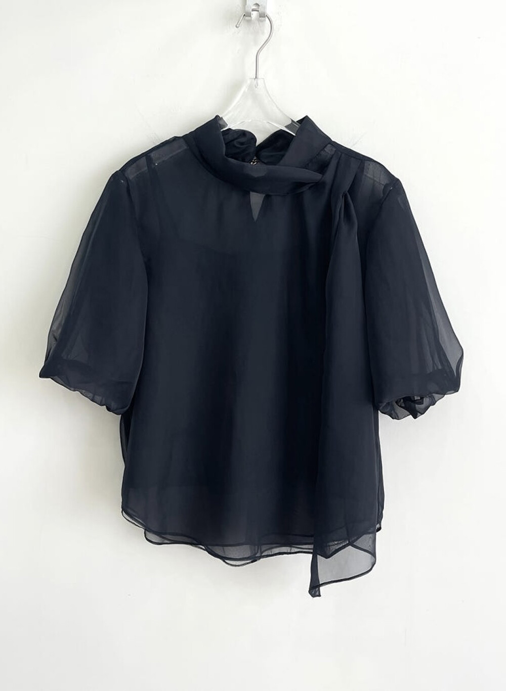 TIME. Organza Tulle Drape Scarf Neck Blouse