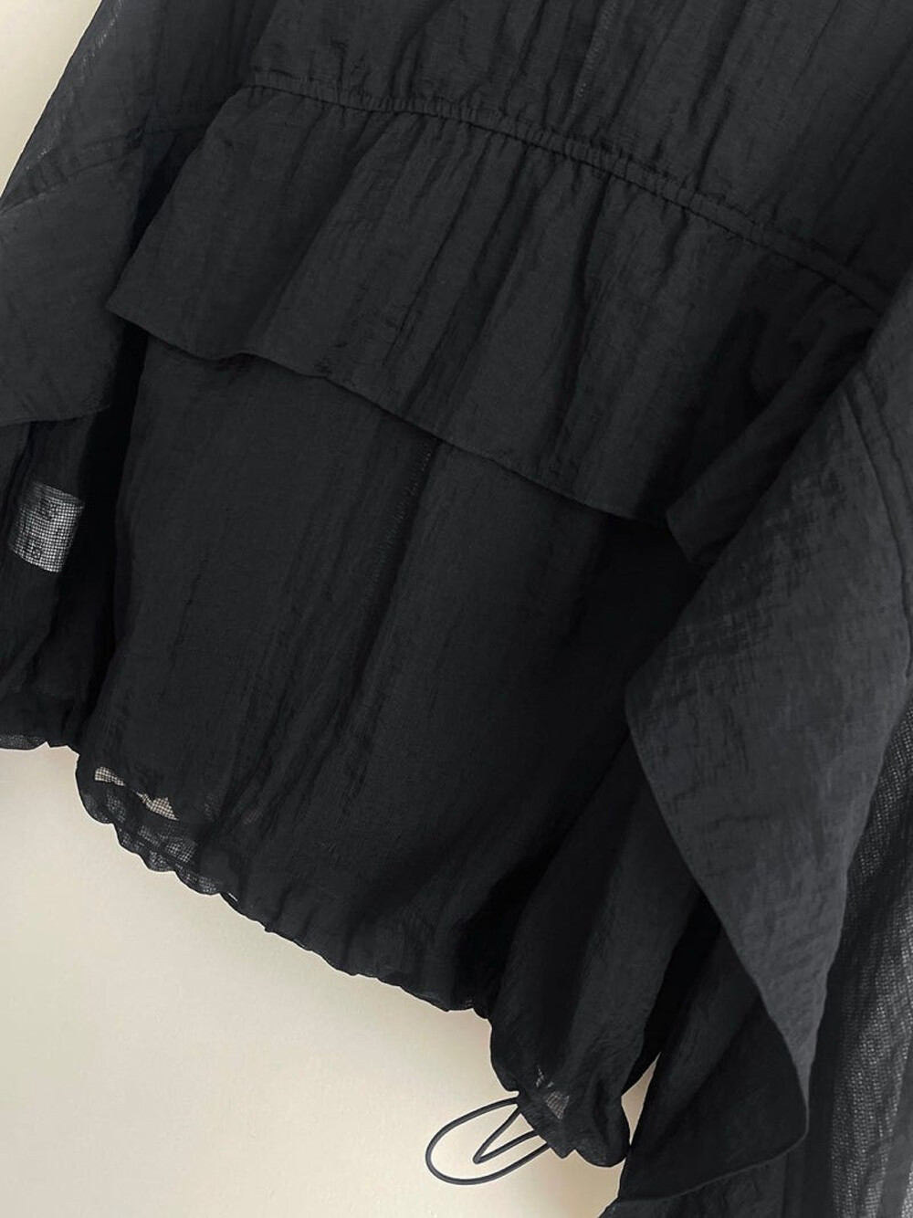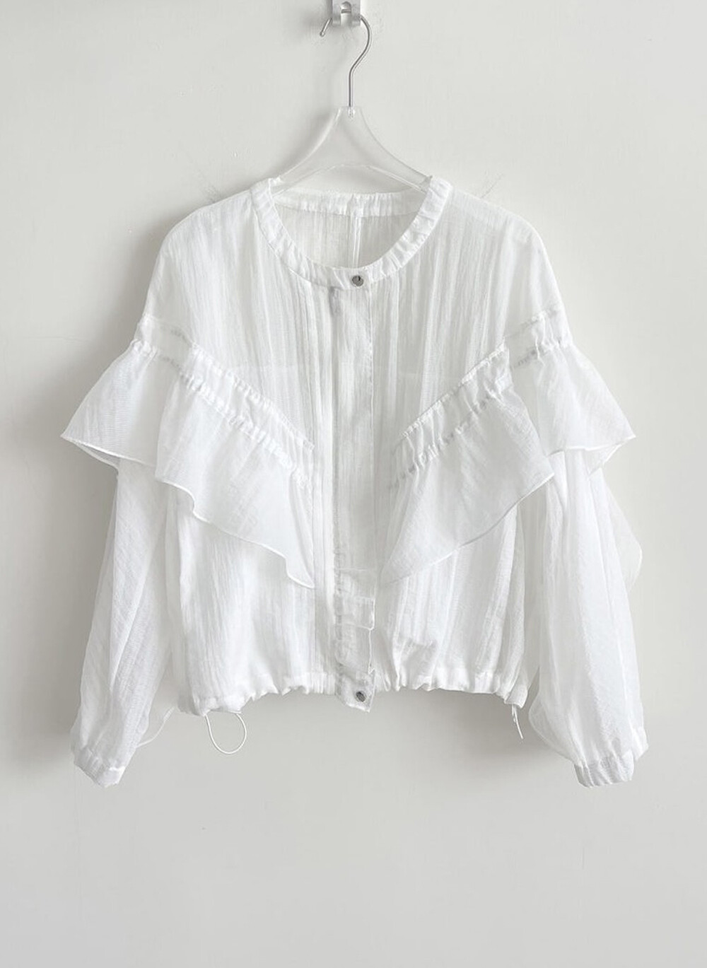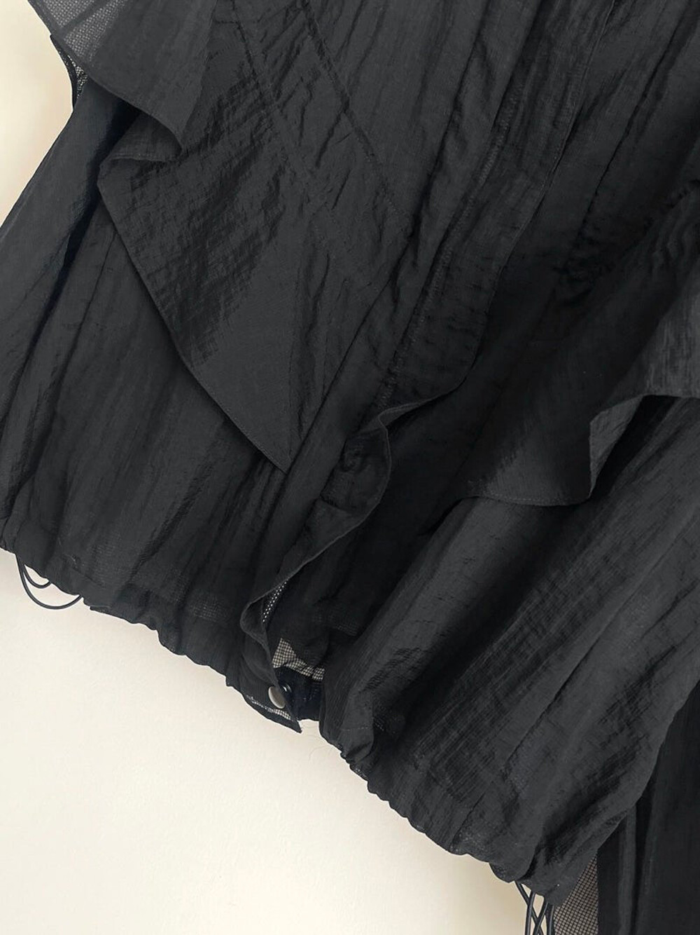 오즈세컨 드로우스트링 그리드 프릴 패널 점퍼