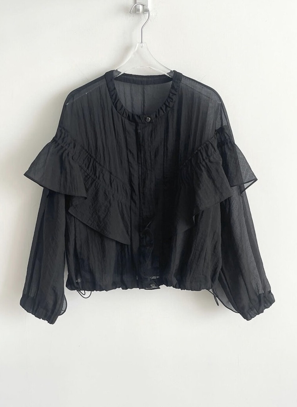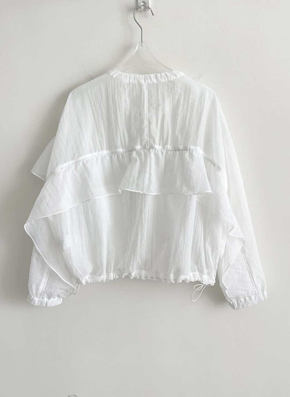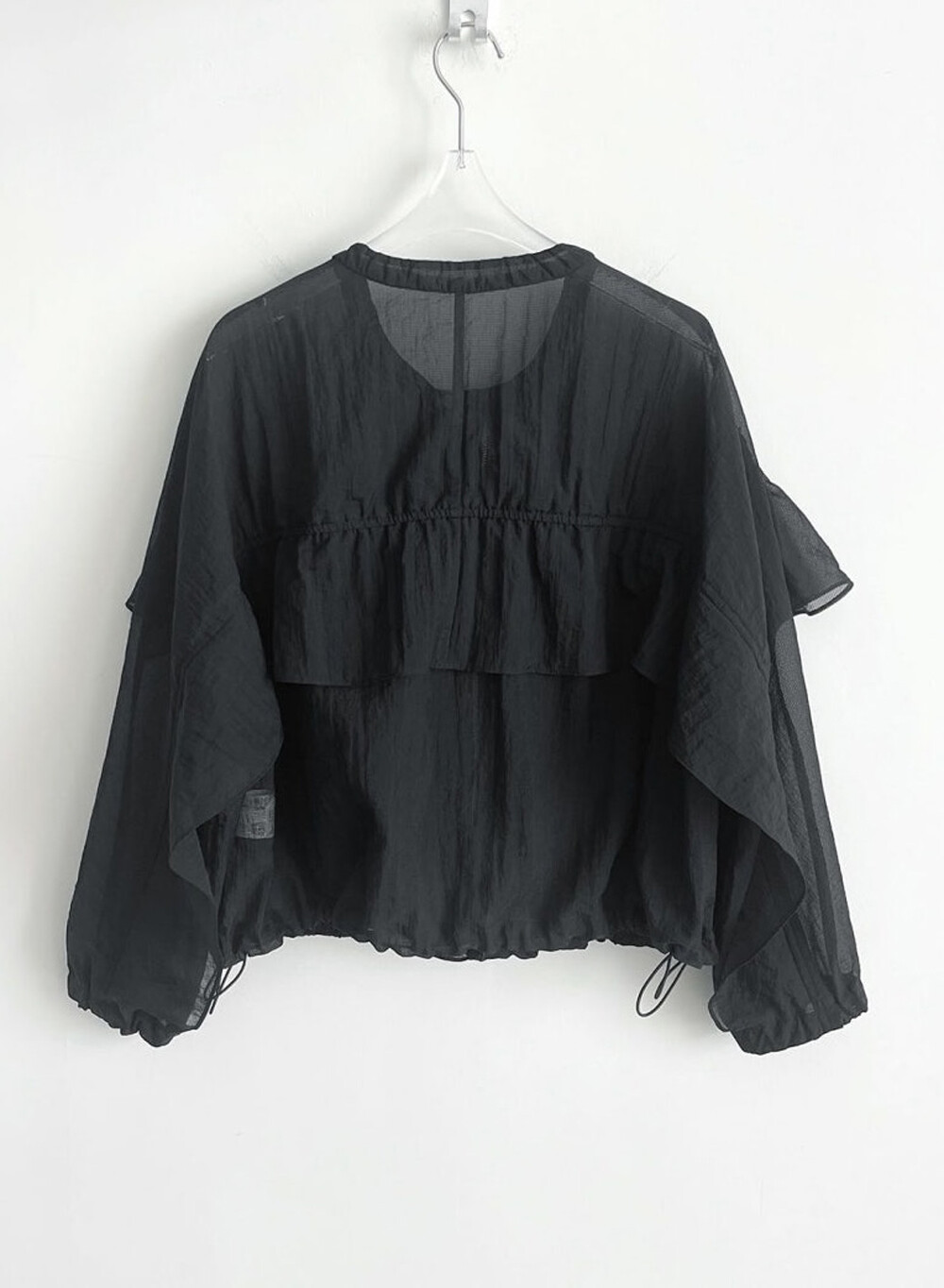 오즈세컨 드로우스트링 그리드 프릴 패널 점퍼