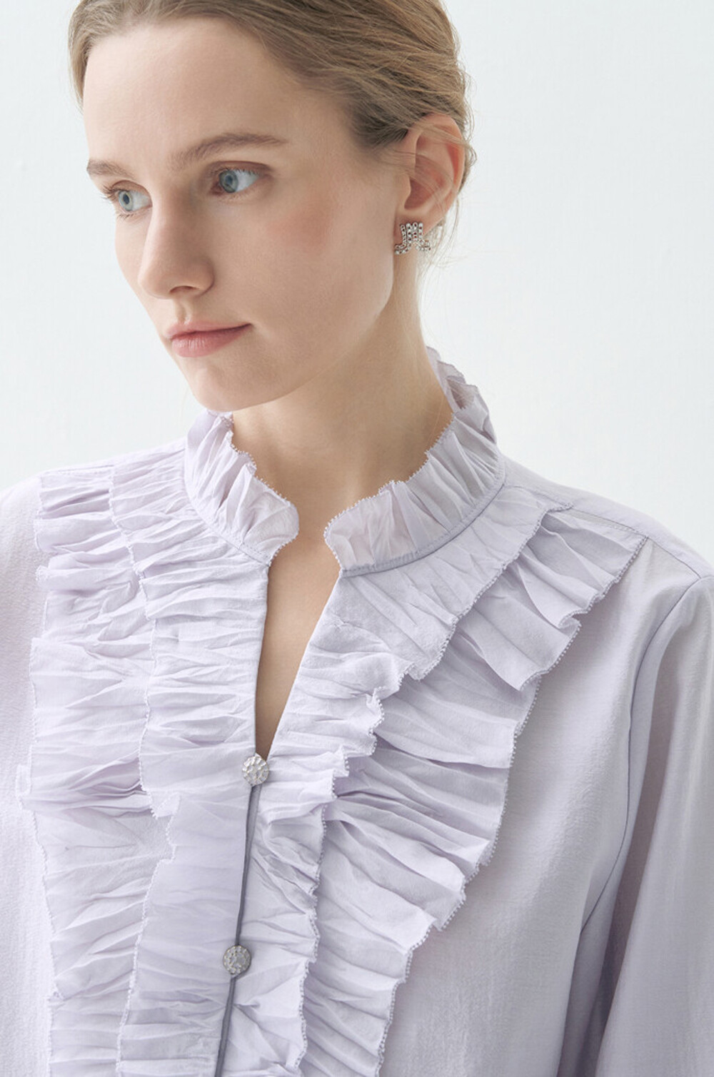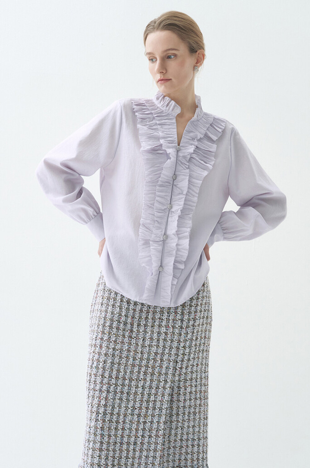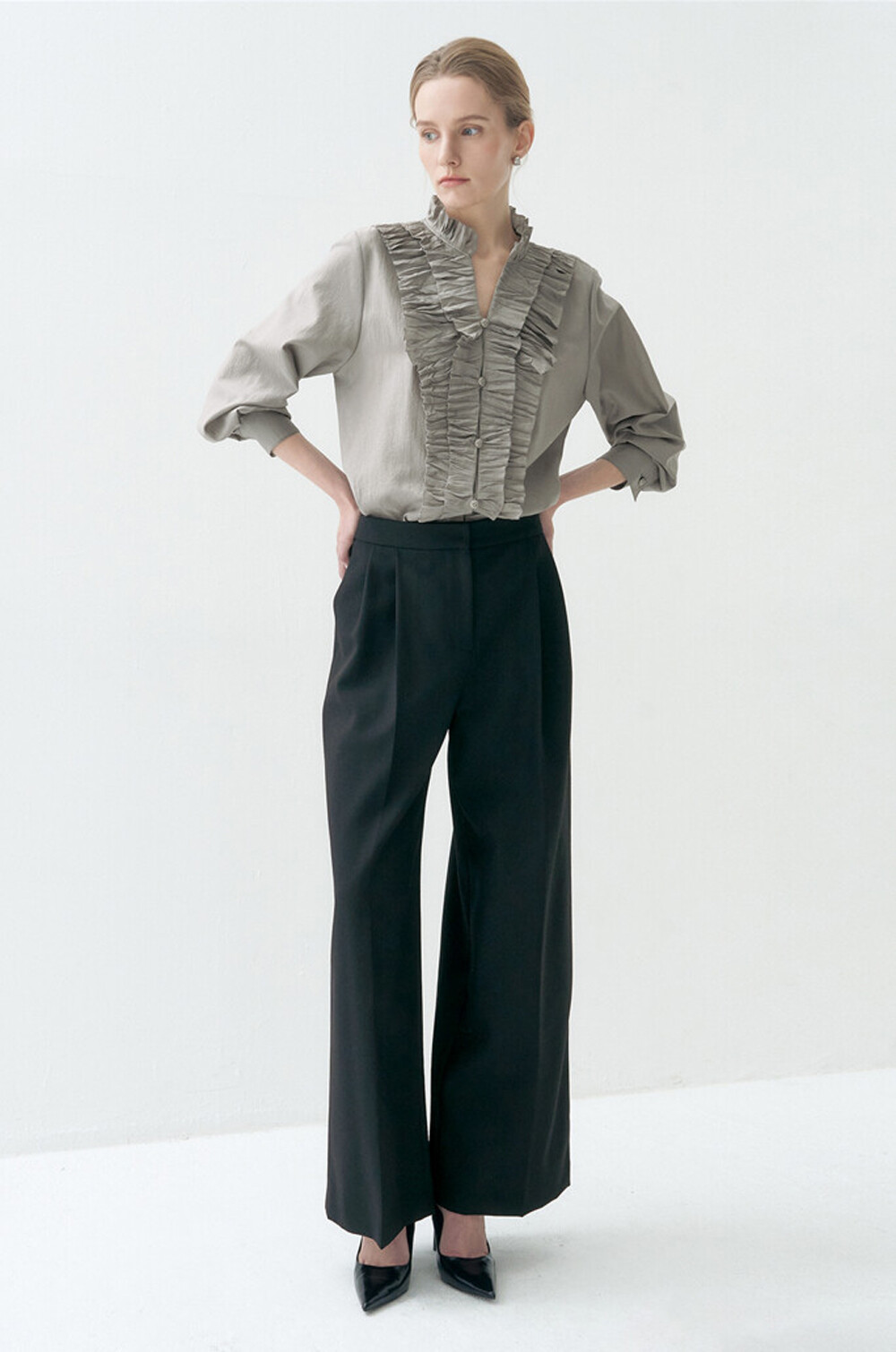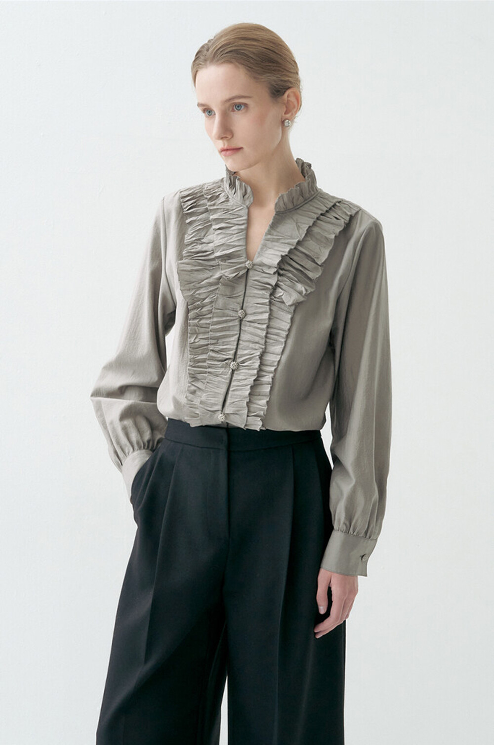 랑방컬렉션 러플 패널 모크넥 블라우스