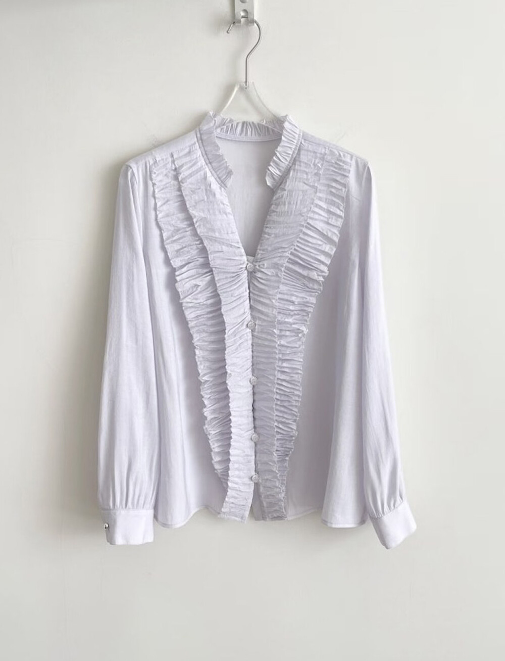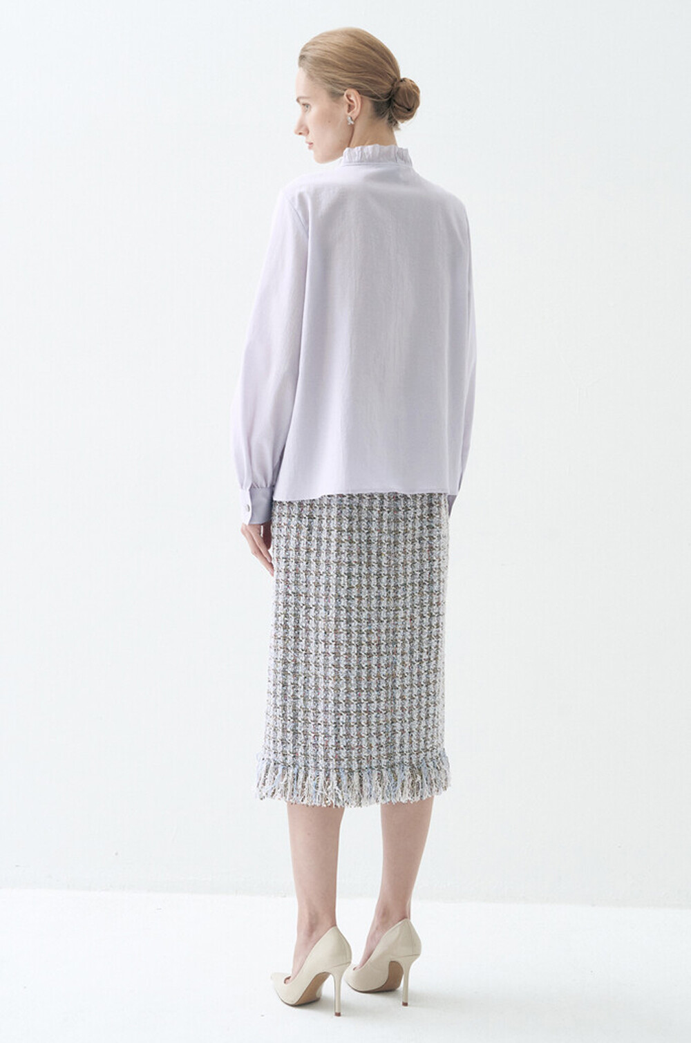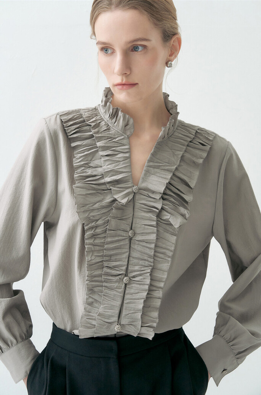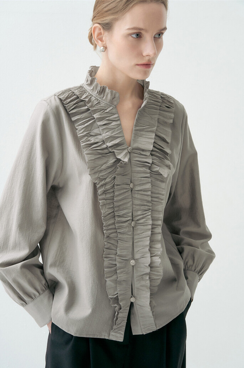 랑방컬렉션 러플 패널 모크넥 블라우스